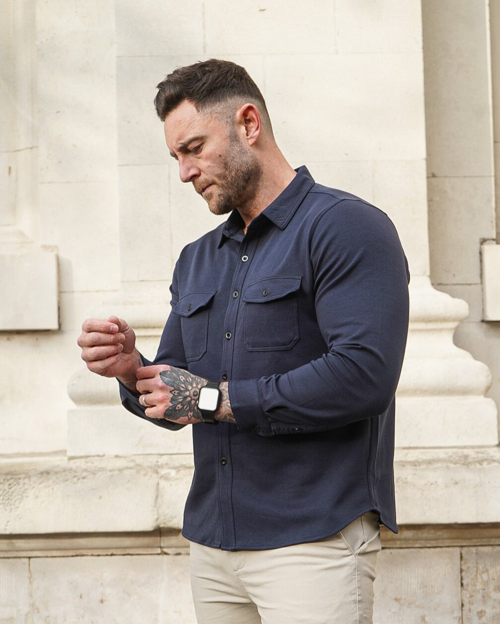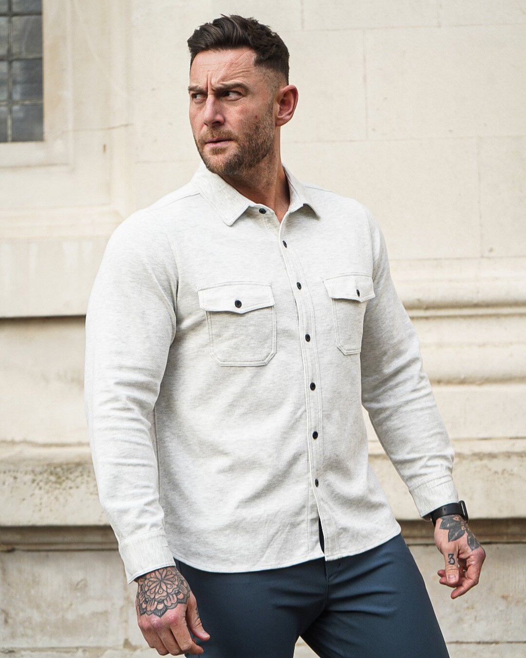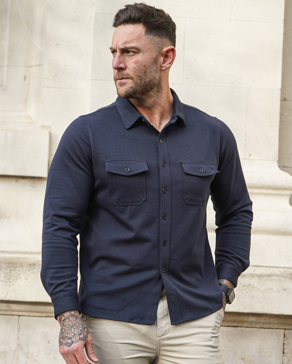 - Zwei praktische Brusttaschen mit Knopfklappen