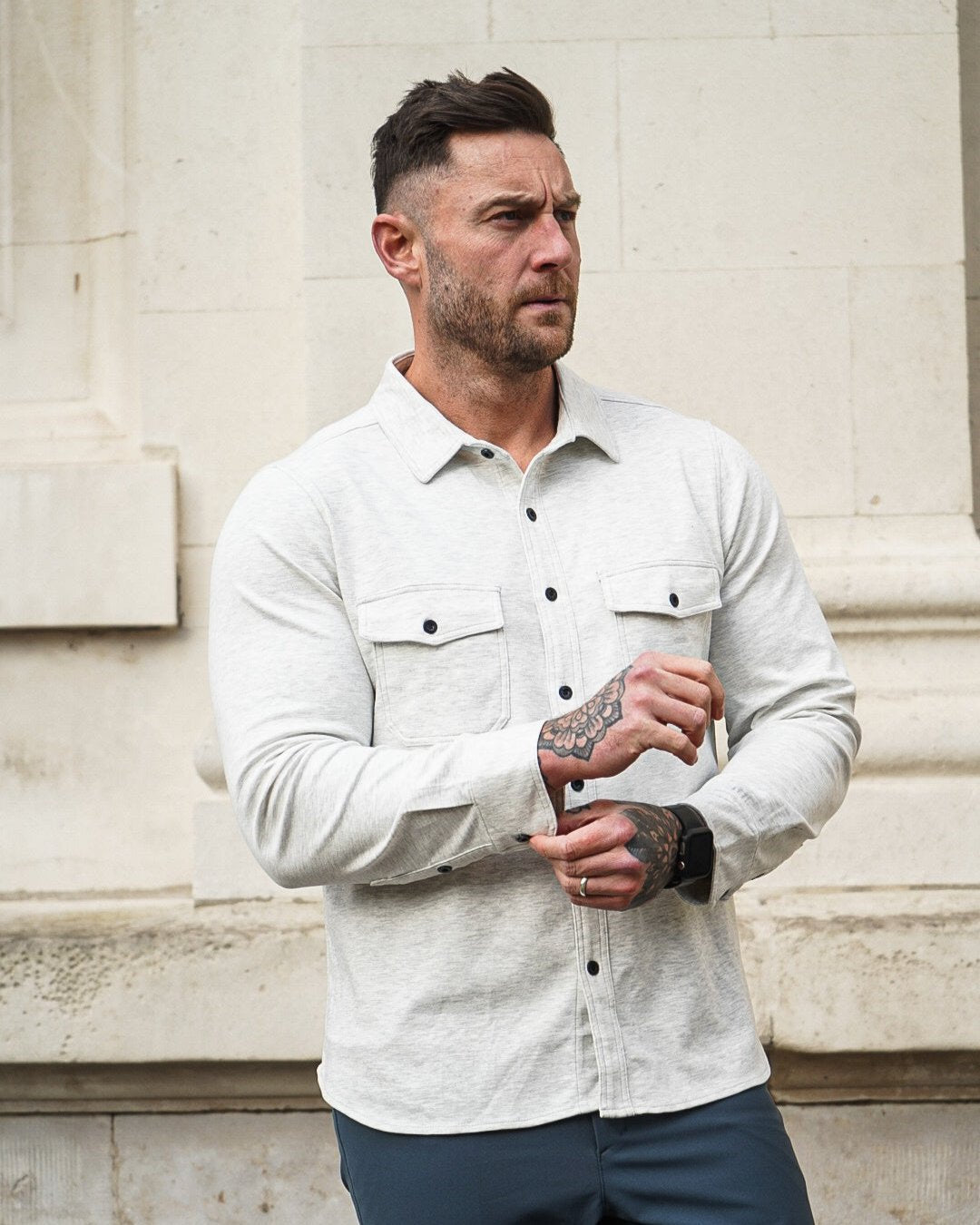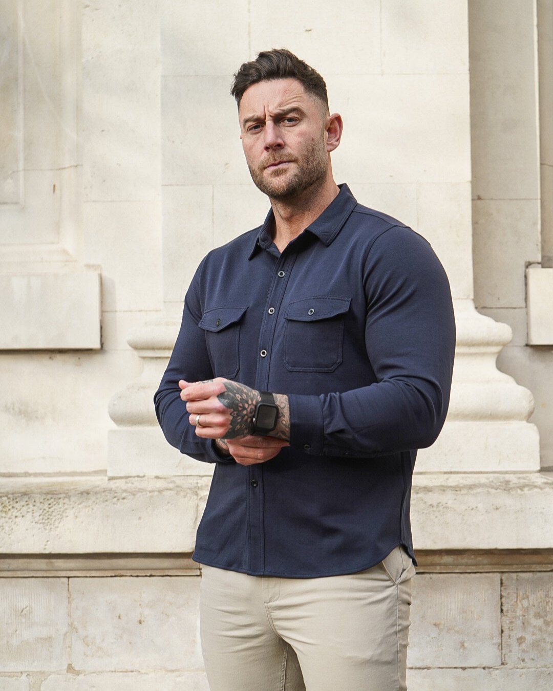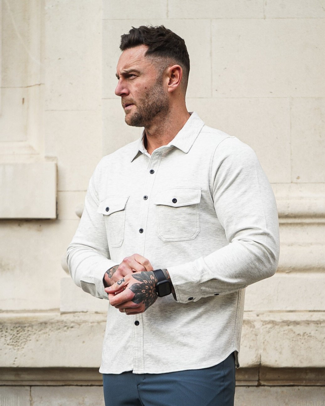 - Zwei praktische Brusttaschen mit Knopfklappen