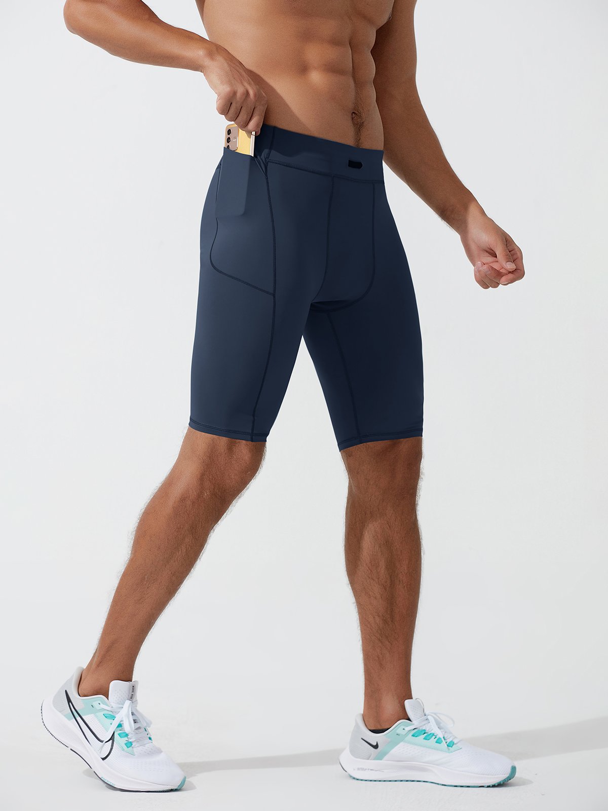 Unsere Kompressionsshorts wurden speziell für aktive Aktivitäten entwickelt und vereinen Komfort, Halt und Bequemlichkeit. Das leichte, schnelltrocknende Gewebe hält Sie kühl und konzentriert, während der Taillenbund und die ergonomischen Nähte volle Bewegungsfreiheit ermöglichen. Mit strategischen Taschen zur sicheren Aufbewahrung von Wertsachen ermöglichen diese Shorts Höchstleistungen bei jedem Training oder Sport.