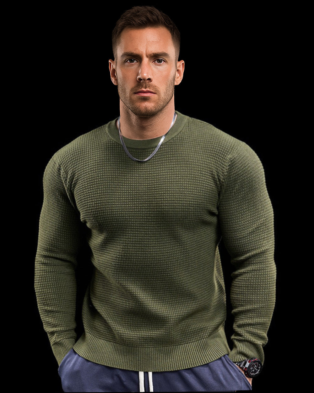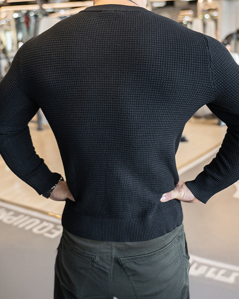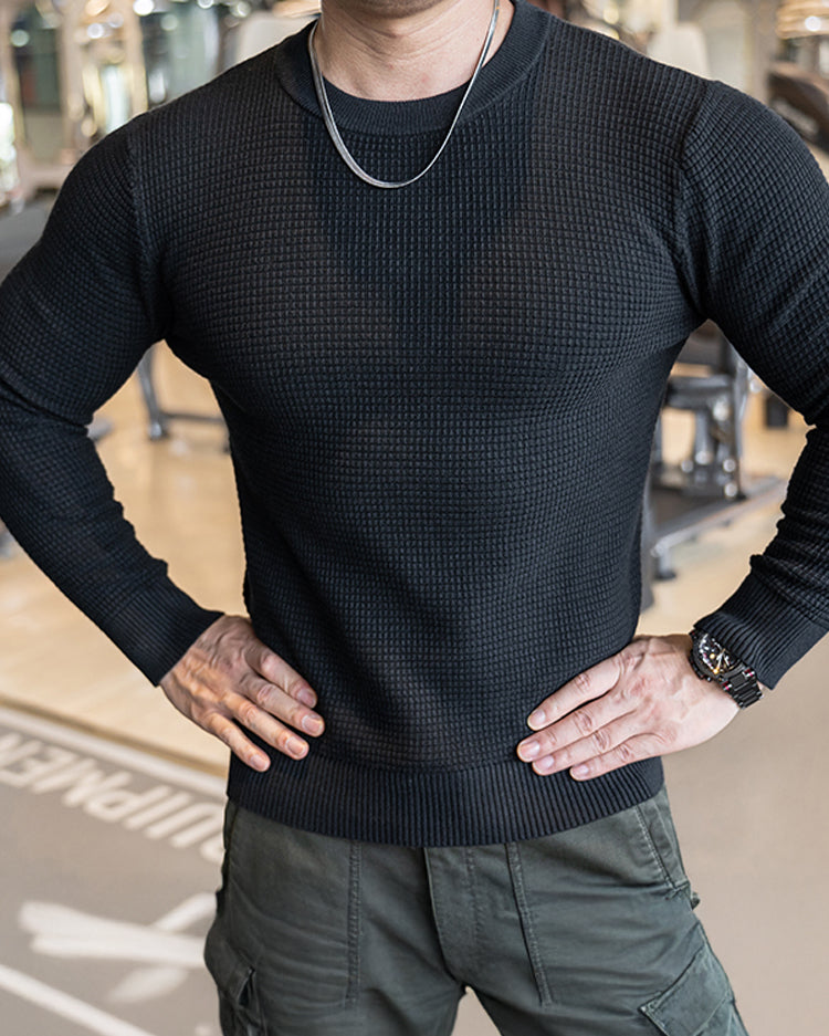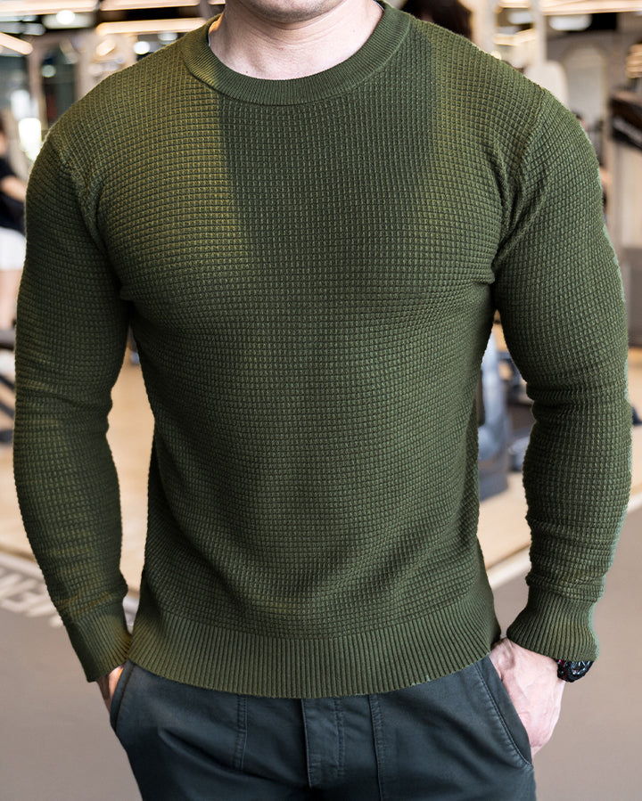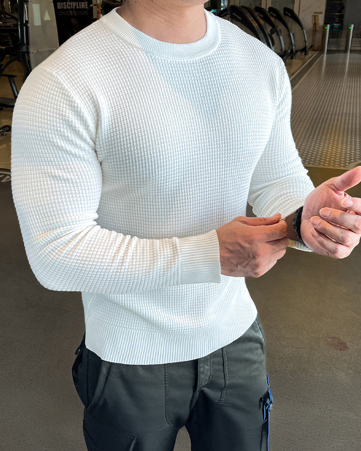 Raffinesse, Stil und Komfort in einem. Durch die Anwendung eines einzigartigen Strickmusters heben Sie sich mit subtilem und hochwertigem Modegeschmack von der Masse ab. Das minimalistische Design lässt jedoch Raum für Styling und Schichten mit anderen Artikeln. Eine komplizierte und einzigartige Mischung aus 3 Stoffen sorgt für Atmungsaktivität, Elastizität und ganztägigen Komfort. Der Pullover verfügt über das klassische Rundhalsdesign mit geripptem Kragen, Bündchen und Saum für eine raffiniertere Silhouette.