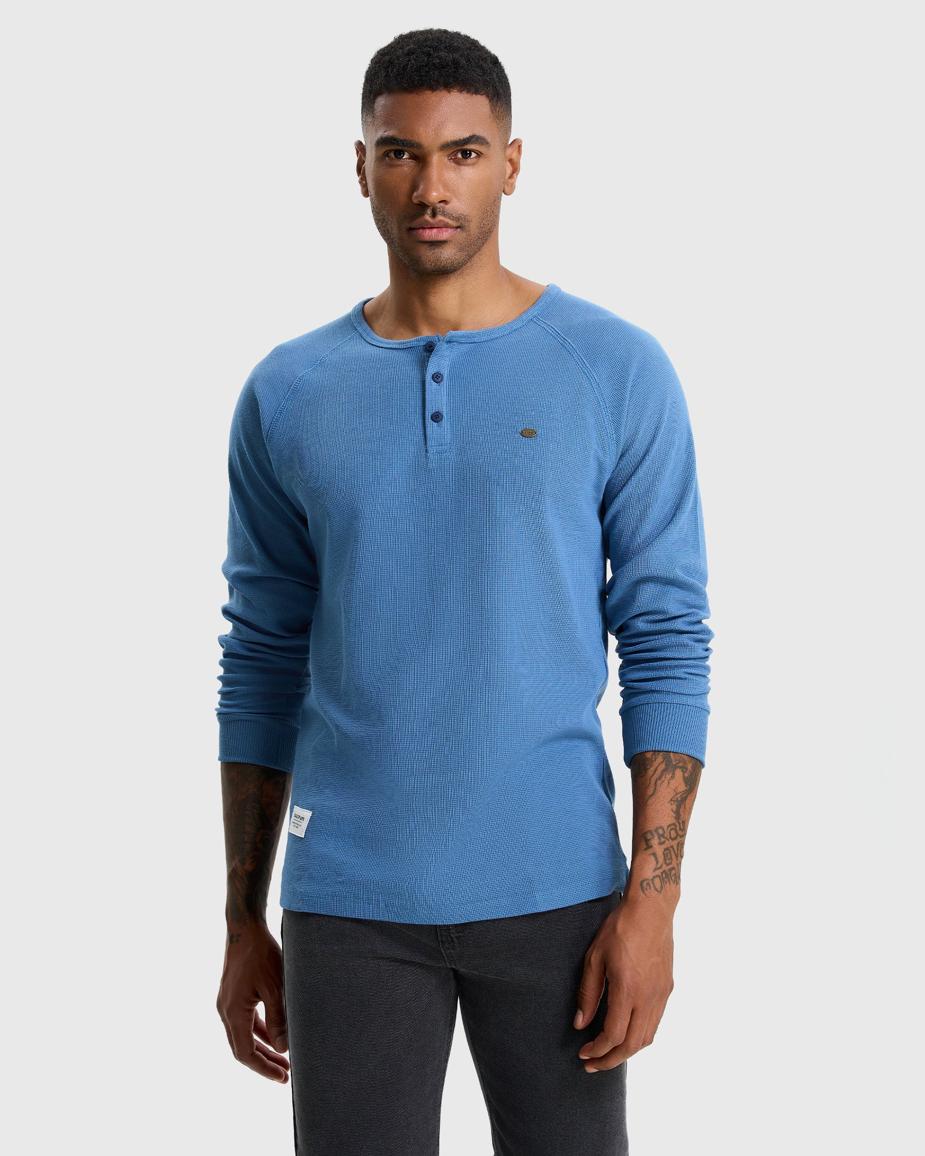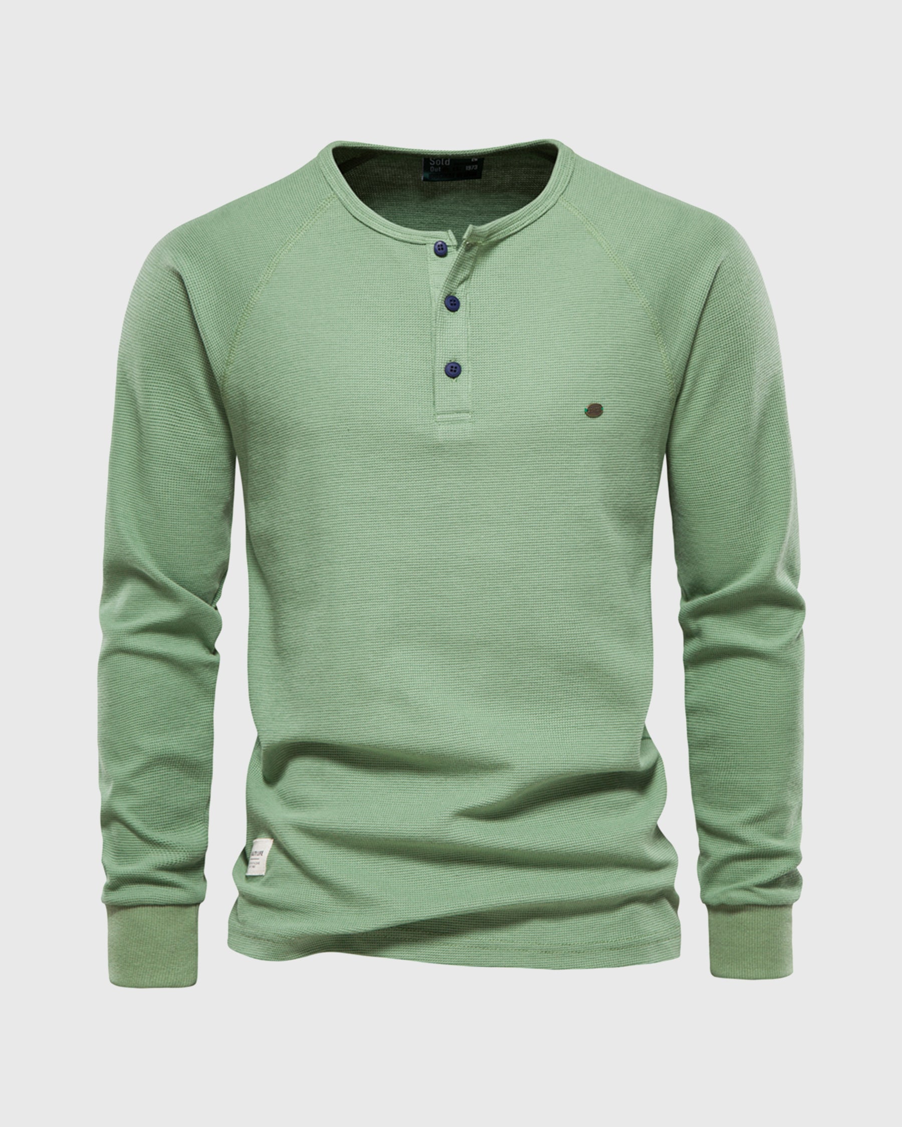 Langärmliges Henley-T-Shirt mit Waffelmuster