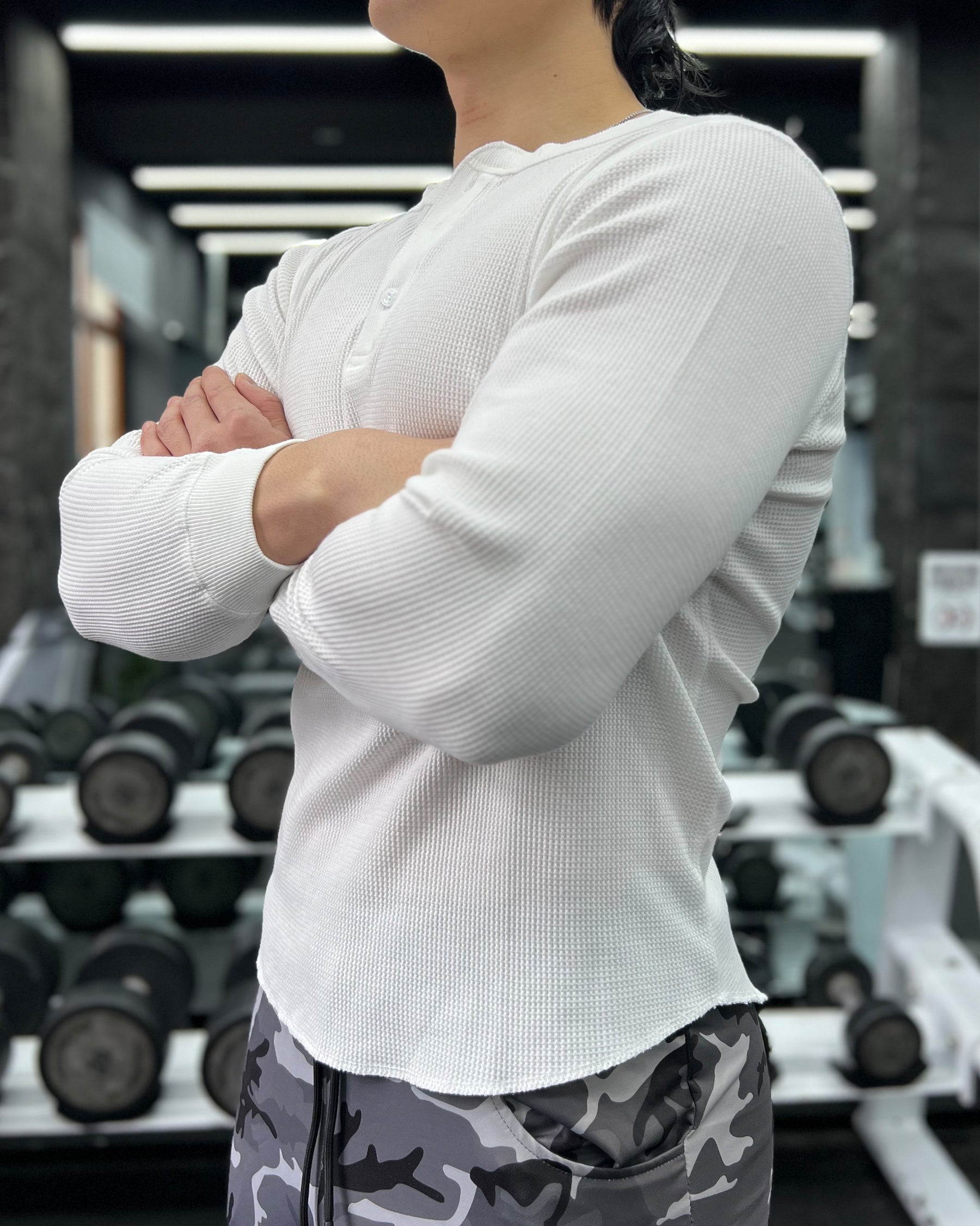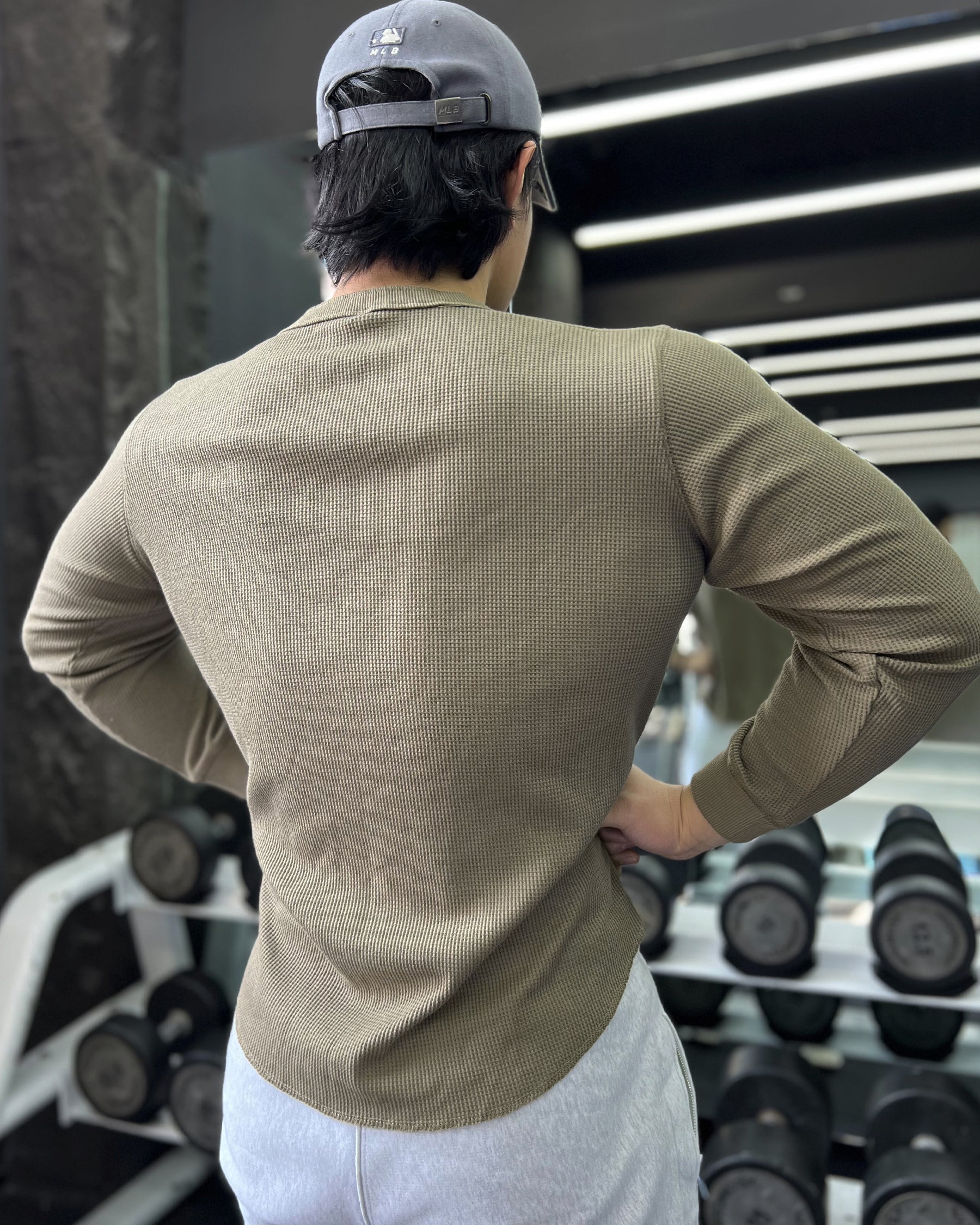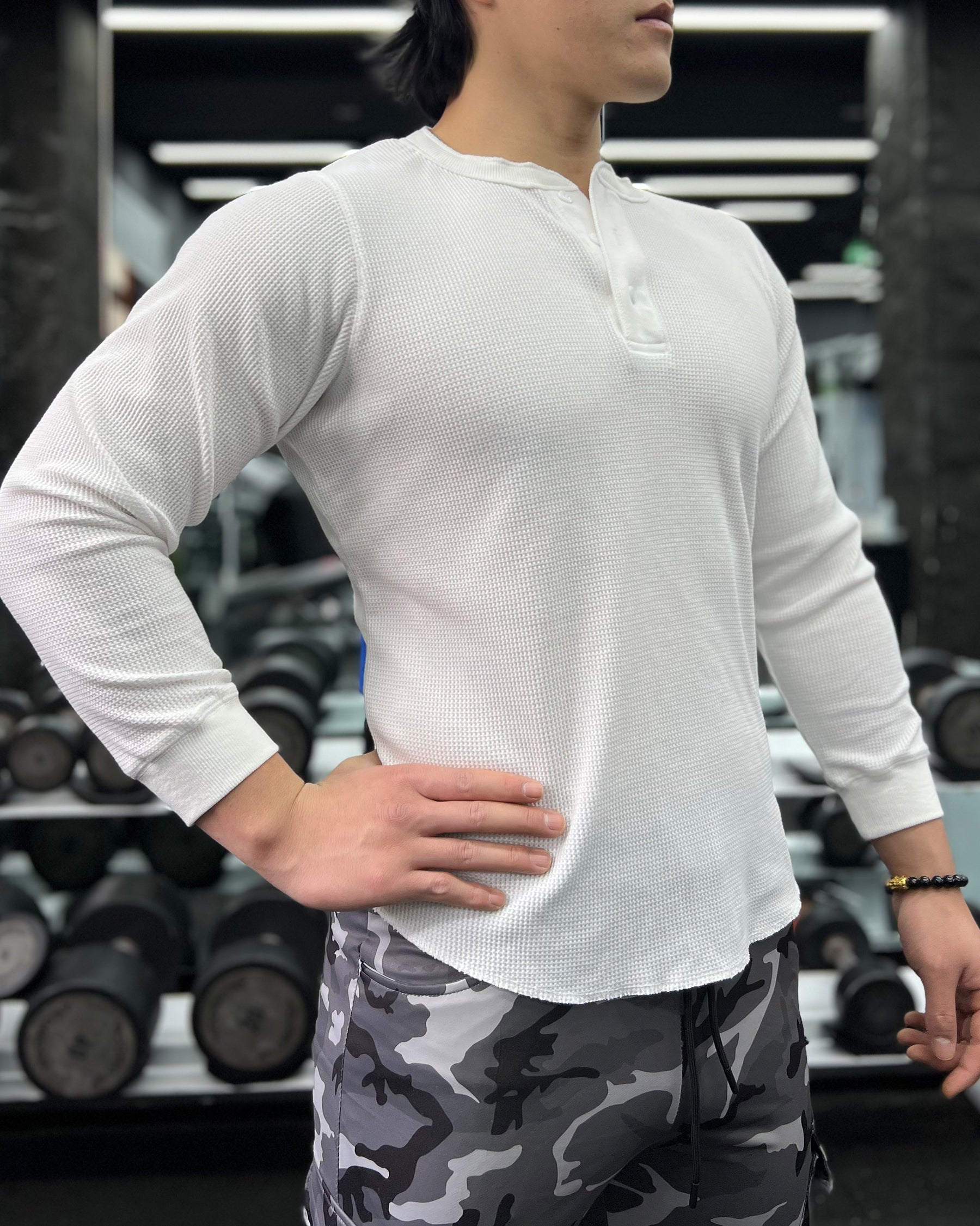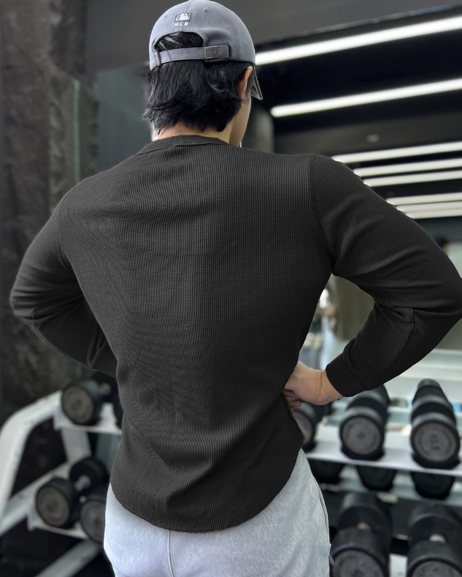 Das perfekte Kleidungsstück für den täglichen Lauf und leichtes Training. Raffinesse, Stil und Komfort in einem. Das Waffelstrickmuster hebt Sie mit dezentem und hochwertigem Modegeschmack von der Masse ab. Das minimalistische Design lässt jedoch Raum für Styling und Layering. Die beliebte Stoffmischung sorgt für Atmungsaktivität, Elastizität und ganztägigen Tragekomfort. Der Pullover verfügt über das klassische Henley-Kragen-Design mit geripptem Kragen, Bündchen und Saum für eine raffinierte Silhouette.
