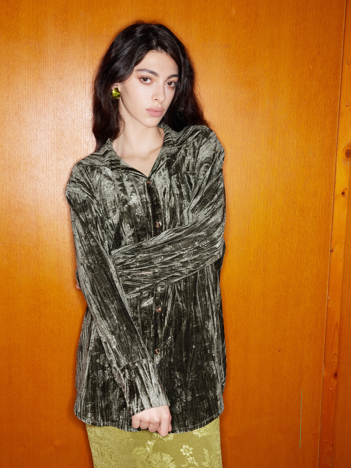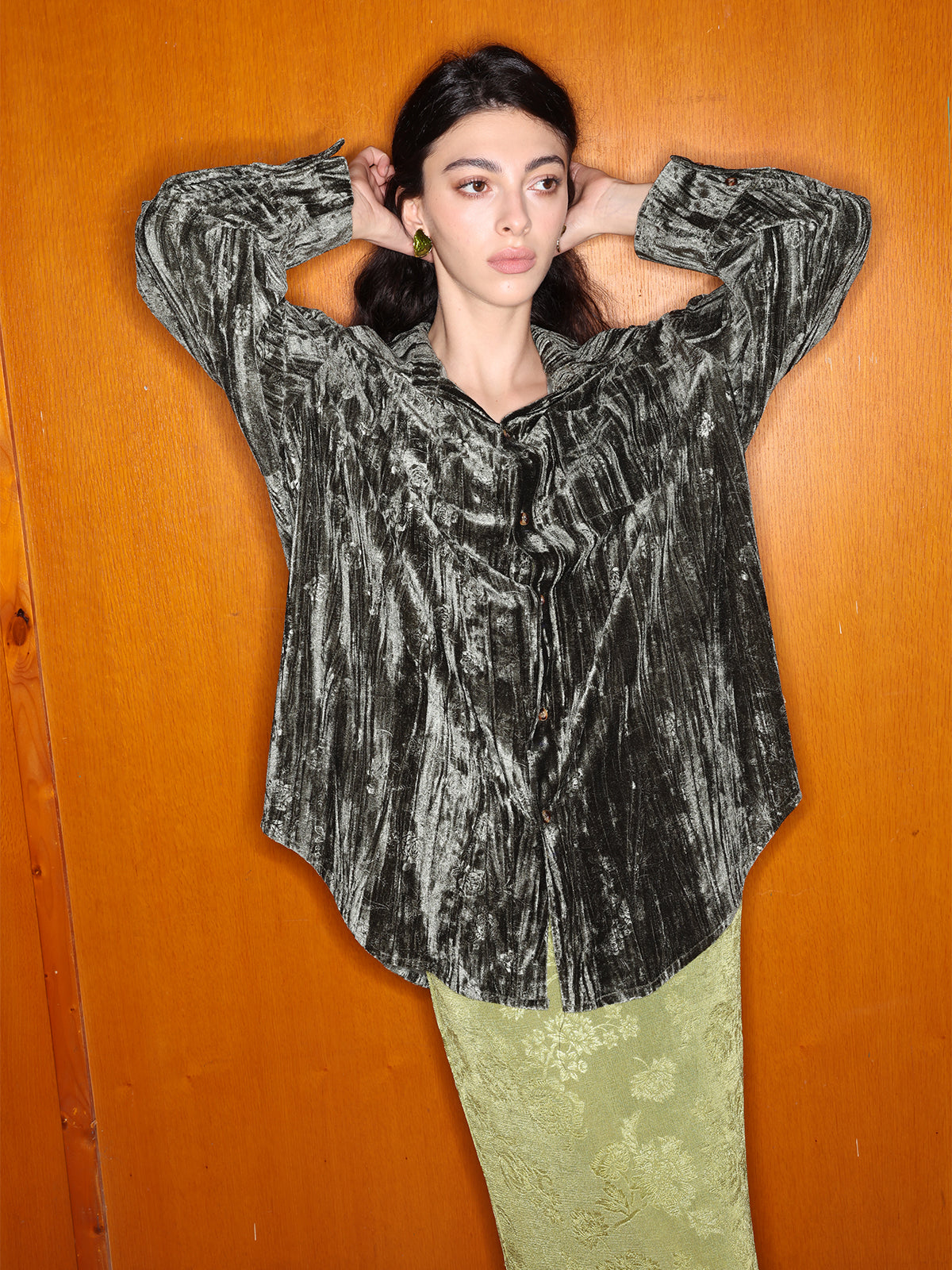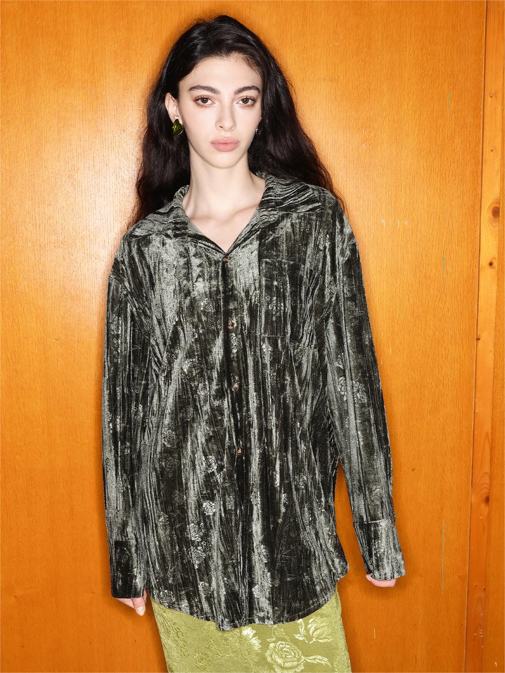 Schicke, locker sitzende Bluse mit Samtprägung