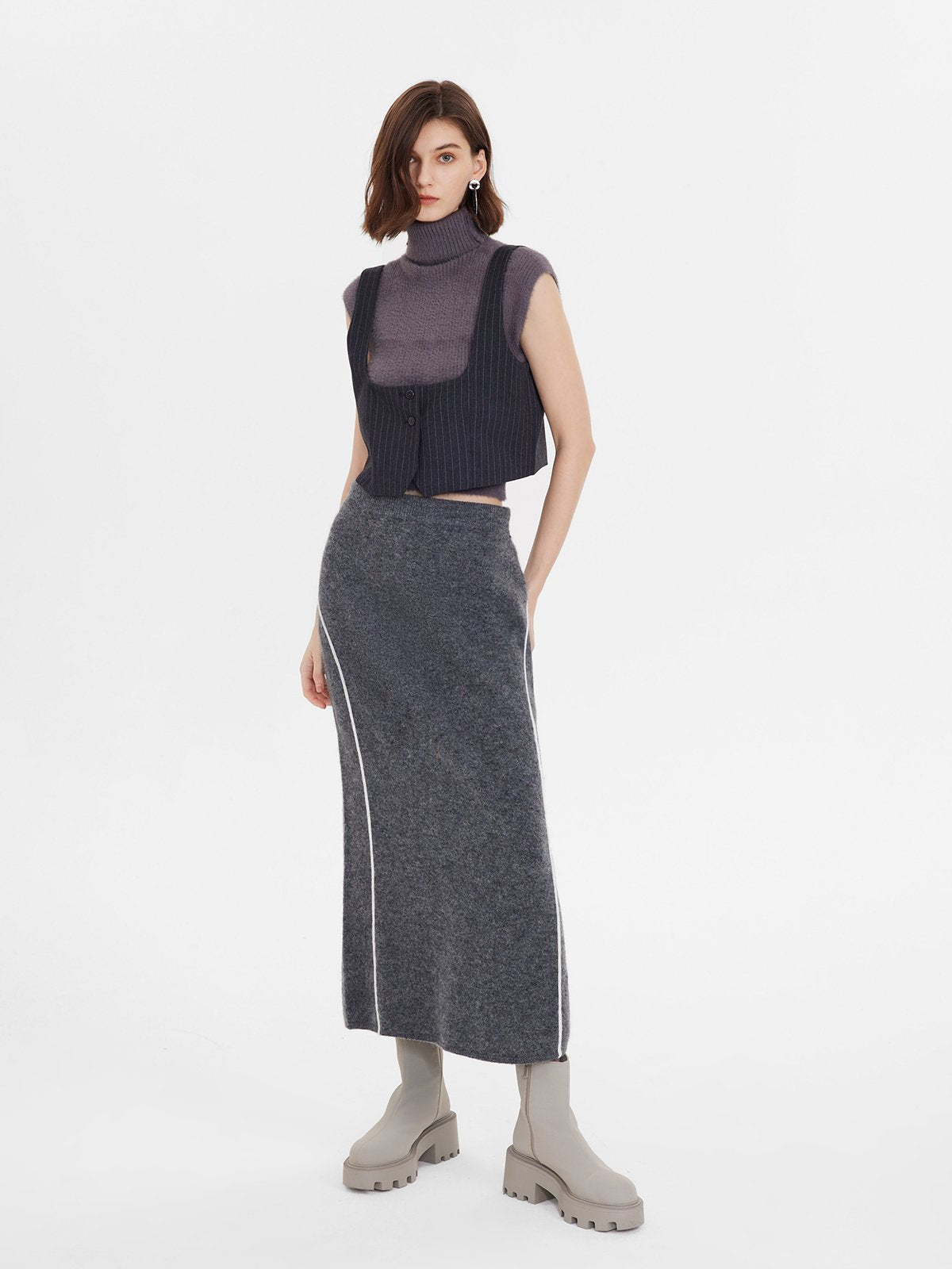 Gemütlicher, dehnbarer langer Rock im Color-Block-Design