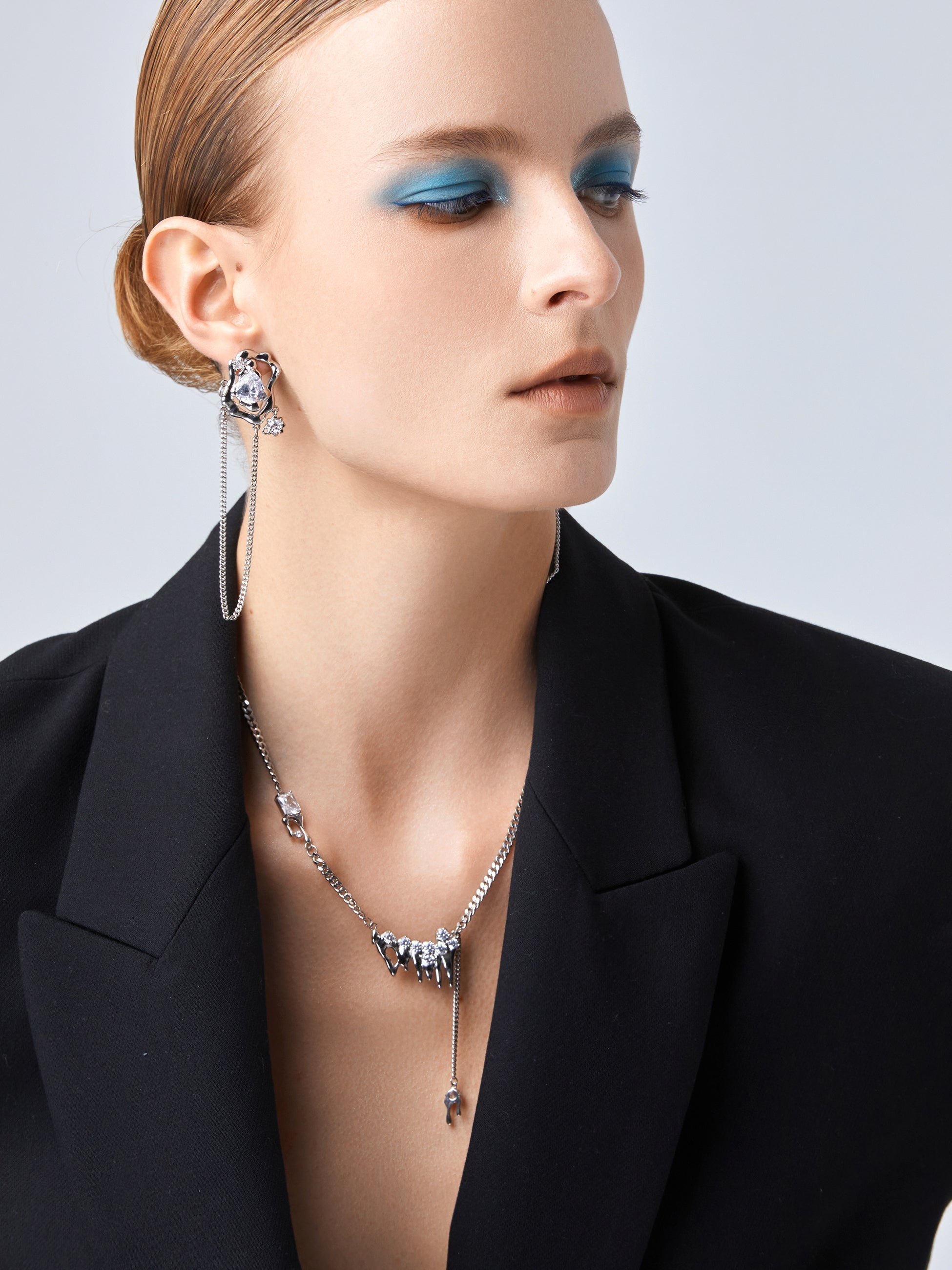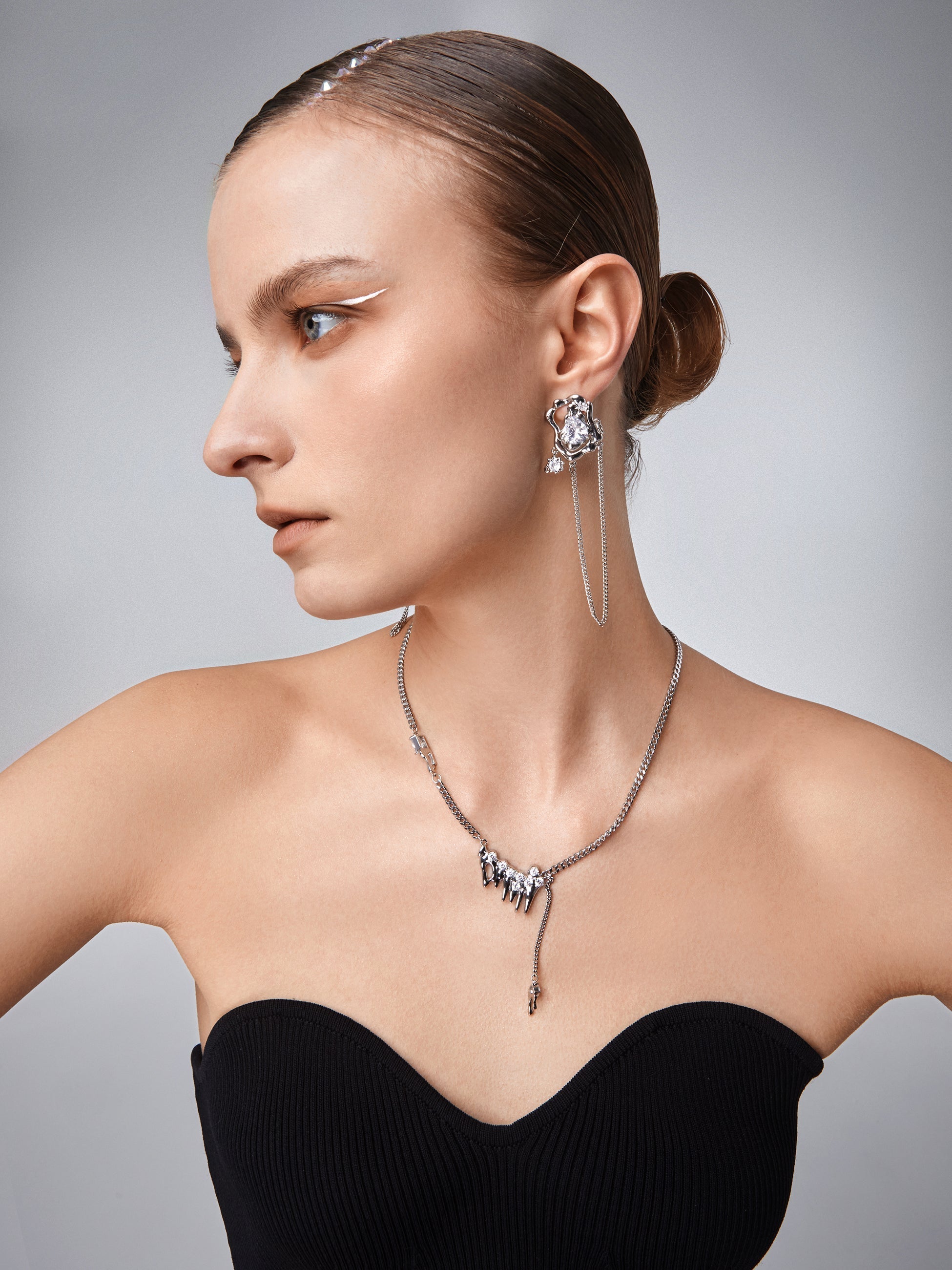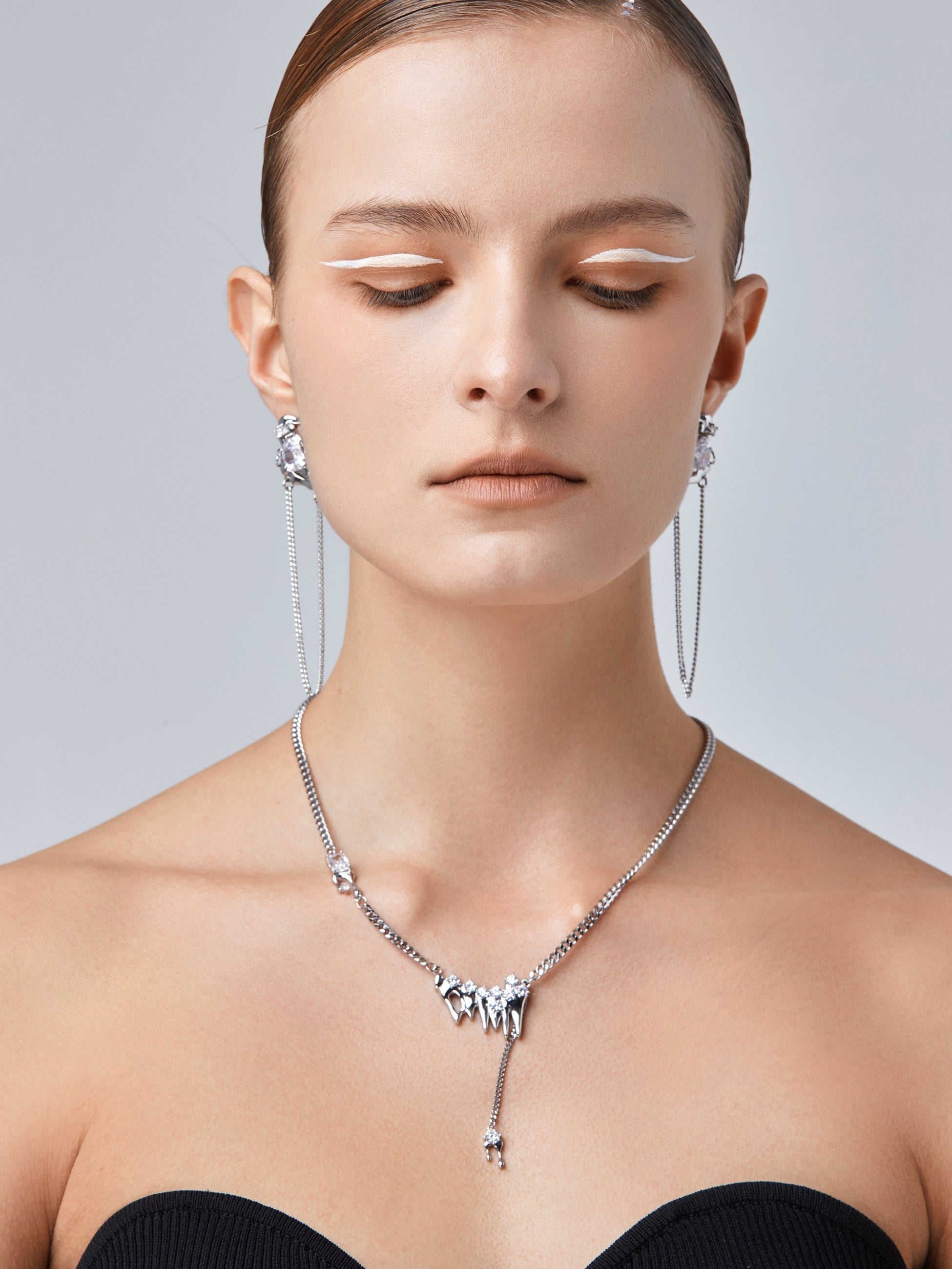 Exquisite Halskette mit Anhänger aus schmelzendem Metall und Zirkonia
