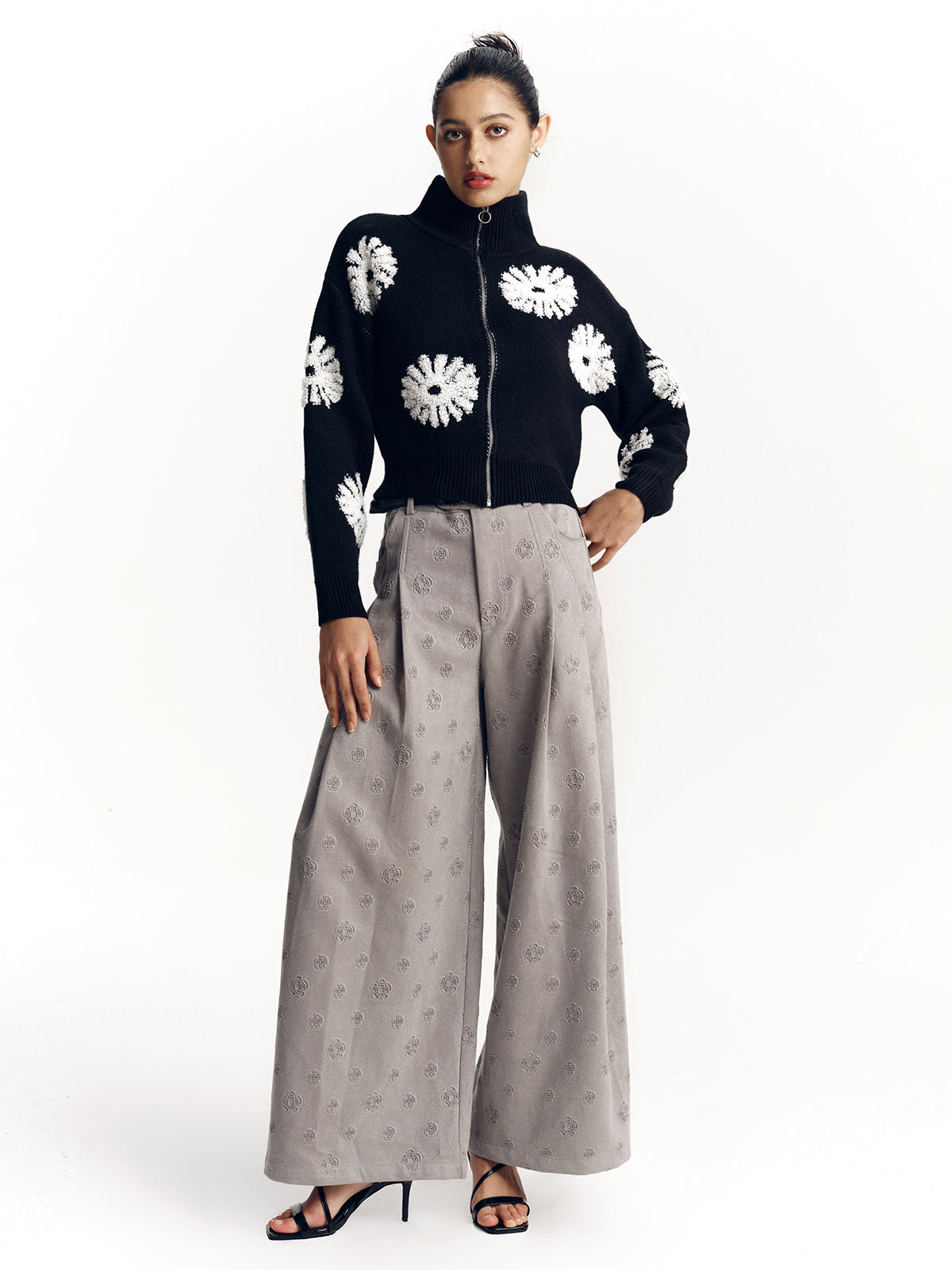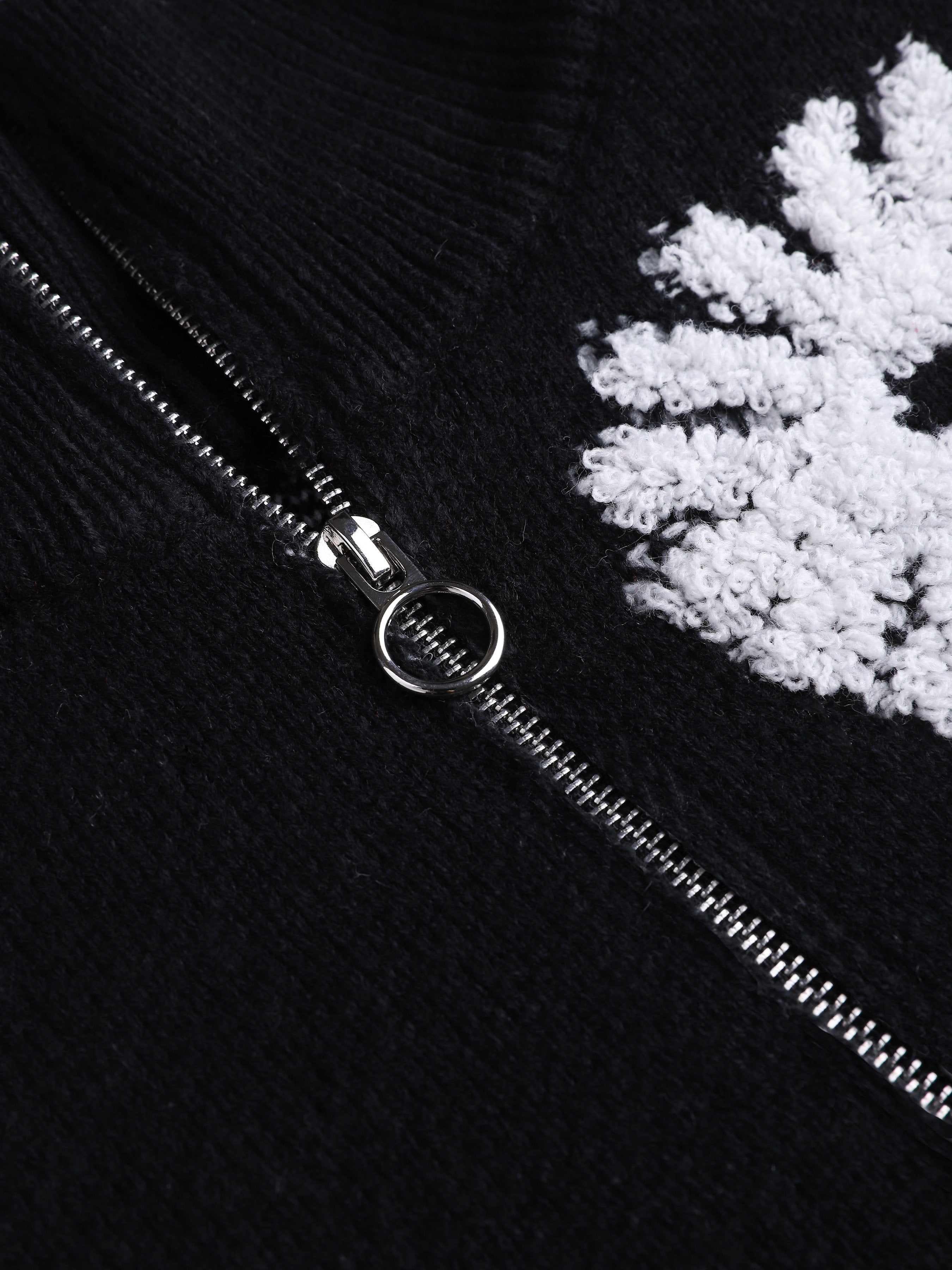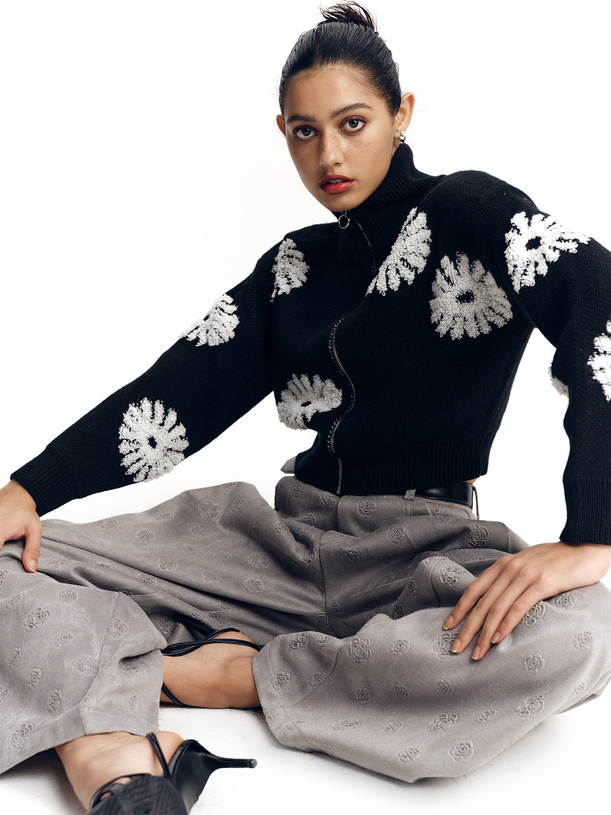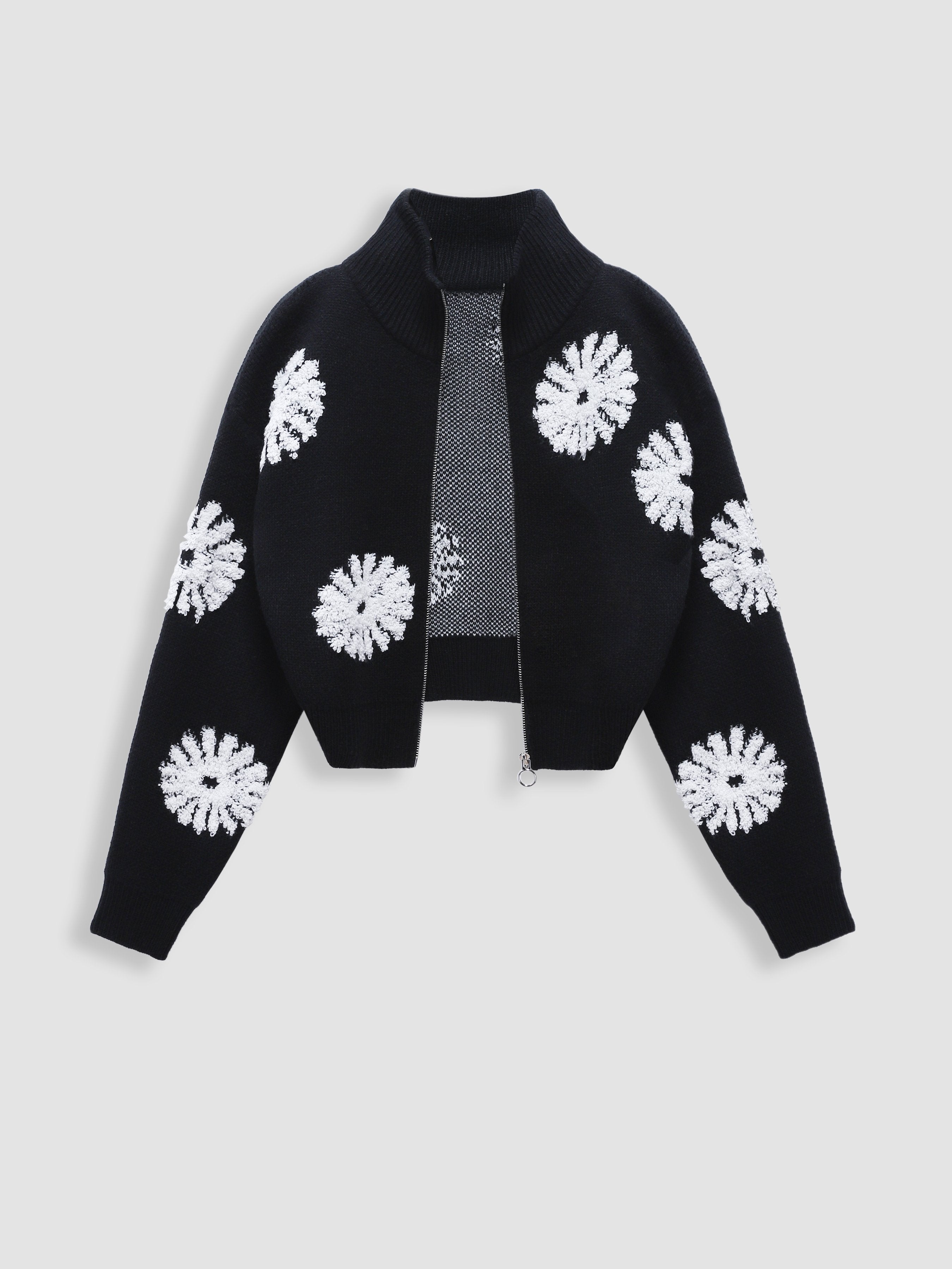 Floral Jacquard Zippered Cardigan - Ahaselected