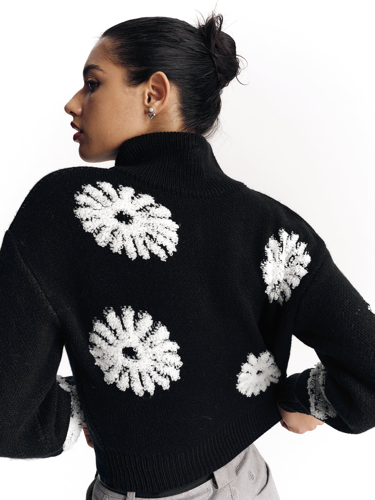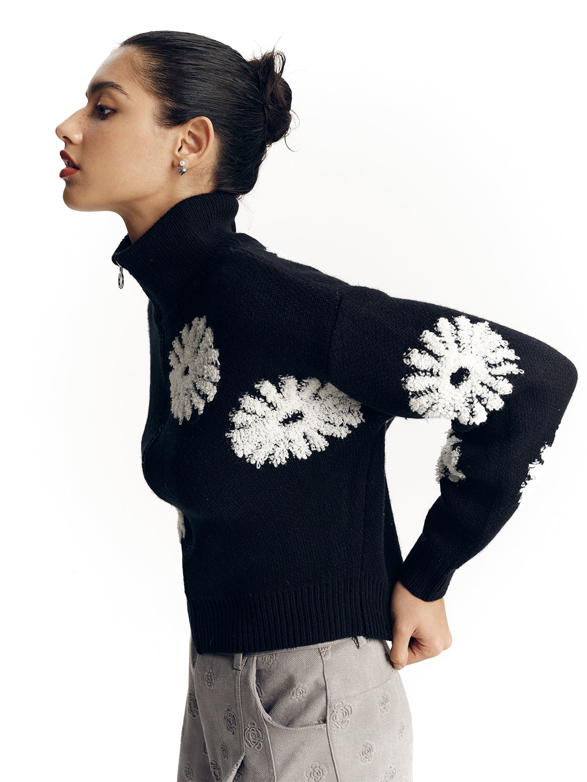 Jacquard-Cardigan mit Blumenmuster und Reißverschluss