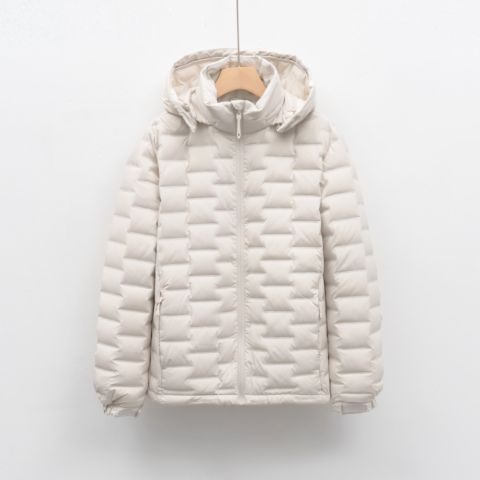 Designed for lightweight warmth and everyday versatility, the Lightweight Hooded Down Puffer Jacket offers a clean, modern silhouette perfect for cold-weather layering. Made with a durable polyester shell, it features a soft, smooth finish that resists everyday wear, while the premium 90% duck down fill provides exceptional insulation without adding unnecessary bulk. The structured box-quilt pattern helps keep the down evenly distributed for consistent warmth. With its sleek hooded design and streamlined fit, this jacket is ideal for commuting, travel, or casual winter outings—delivering comfort, practicality, and effortless style.