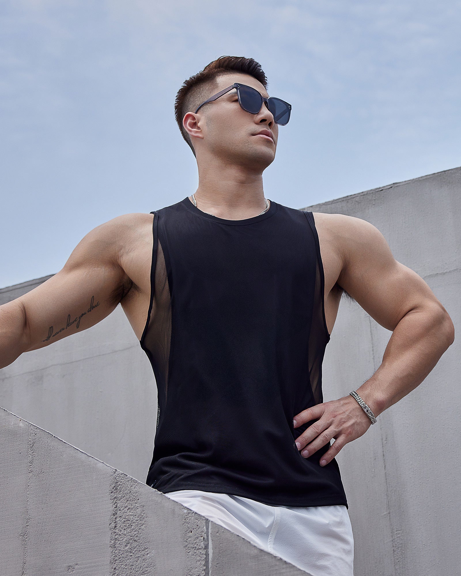 Experience the next level of breathability and support with the Mesh Two Layer Tank — designed for performance and style. The double-layer mesh construction offers a light, airy feel while giving just the right amount of coverage and structure. Moisture-wicking and quick-drying, it's made to keep up with intense workouts or casual layering. The slim fit contours to your shape, while the clean neckline and minimal seams elevate its sleek look.