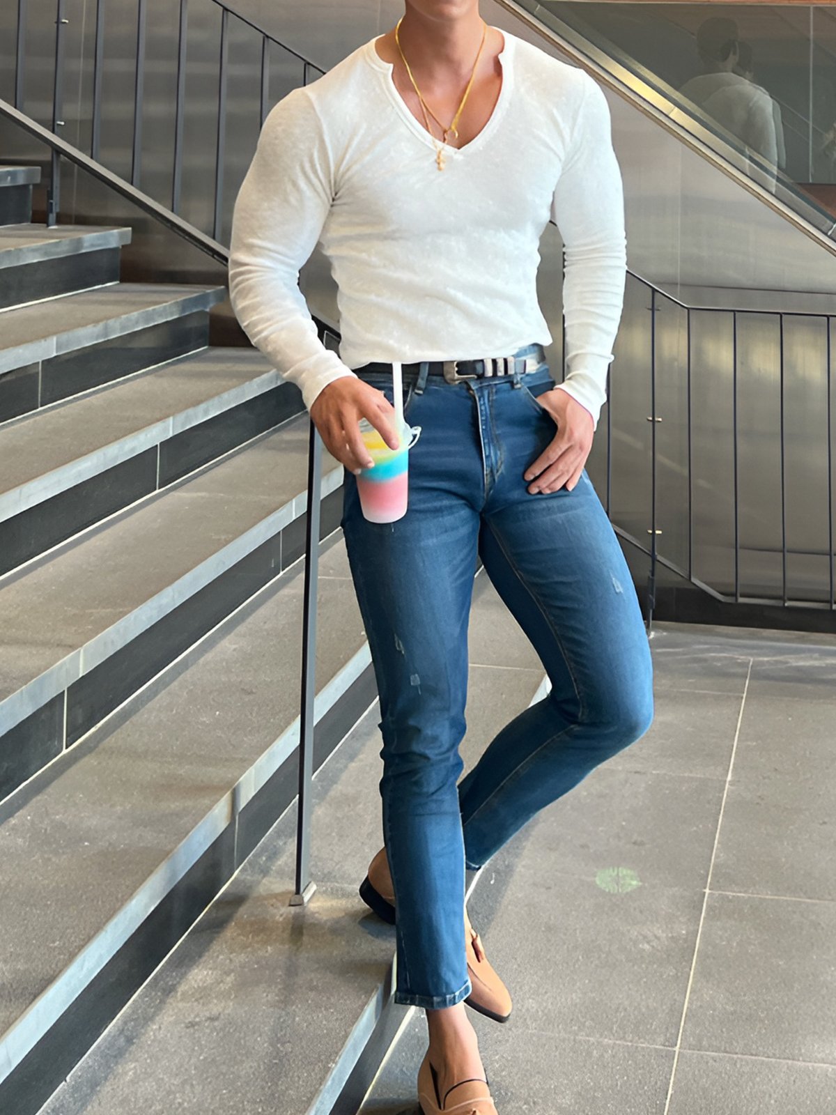 Dieses T-Shirt wurde für moderne, aktive Männer entworfen und vereint Komfort, Stil und Vielseitigkeit. Der luxuriös weiche, feuchtigkeitsableitende Stoff mit Vier-Wege-Stretch bietet überlegenen Komfort beim Entspannen oder unterwegs. Durchdachte Details wie der geteilte V-Ausschnitt, präzisionsgefertigte Nähte und der schmal zulaufende Saum sorgen für einen mühelosen, eleganten Look in einer Reihe von Farben, die perfekt für jeden Anlass sind. Mit seinem atmungsaktiven Stoff, der Bewegungsfreiheit und der schmeichelhaften Silhouette lässt sich dieses unverzichtbare T-Shirt nahtlos von Besorgungen bis hin zu Drinks mit Freunden tragen.