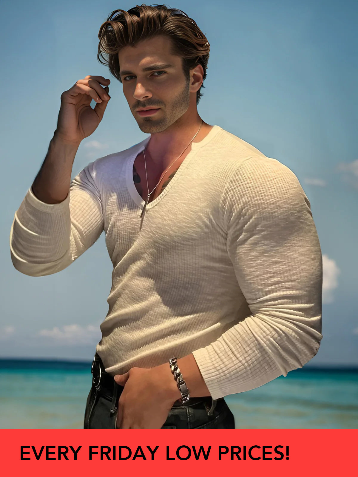 - Der geteilte V-Ausschnitt ermöglicht einfaches An- und Ausziehen und sorgt für einen lässigen, eleganten Stil.
