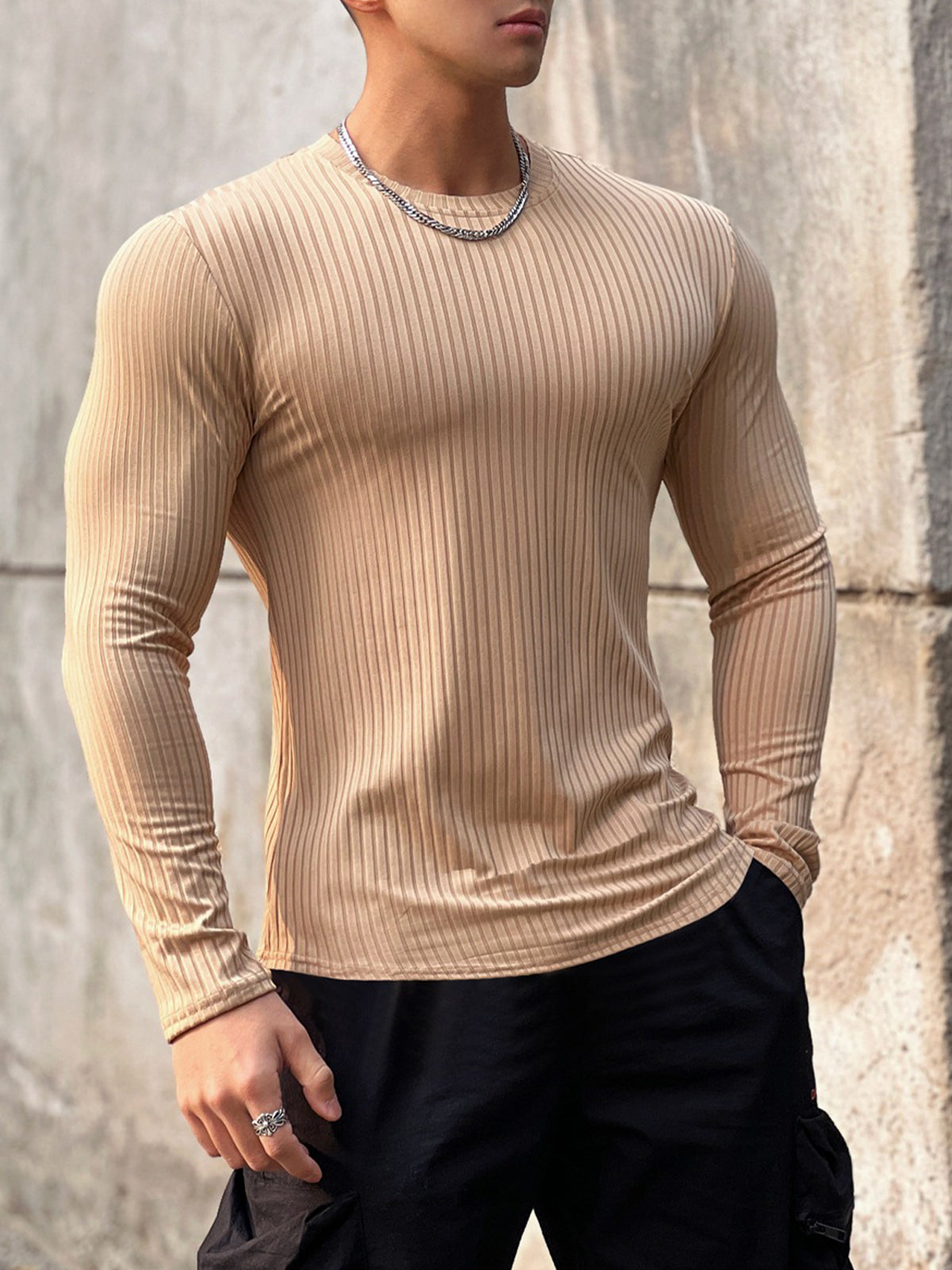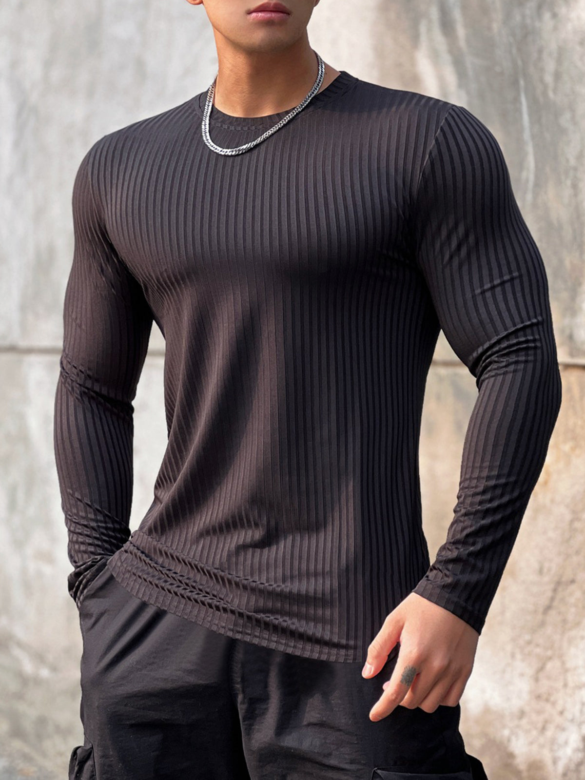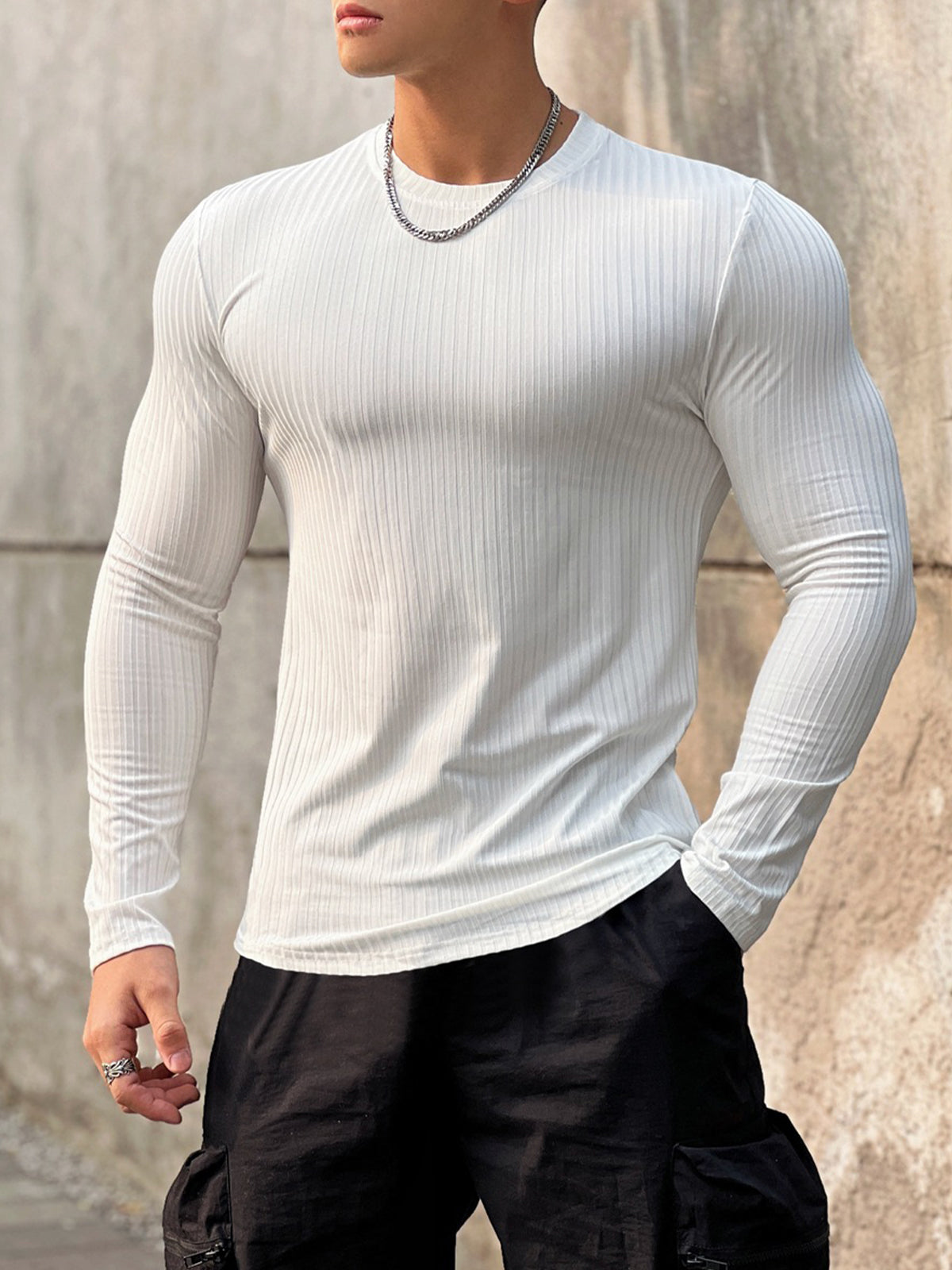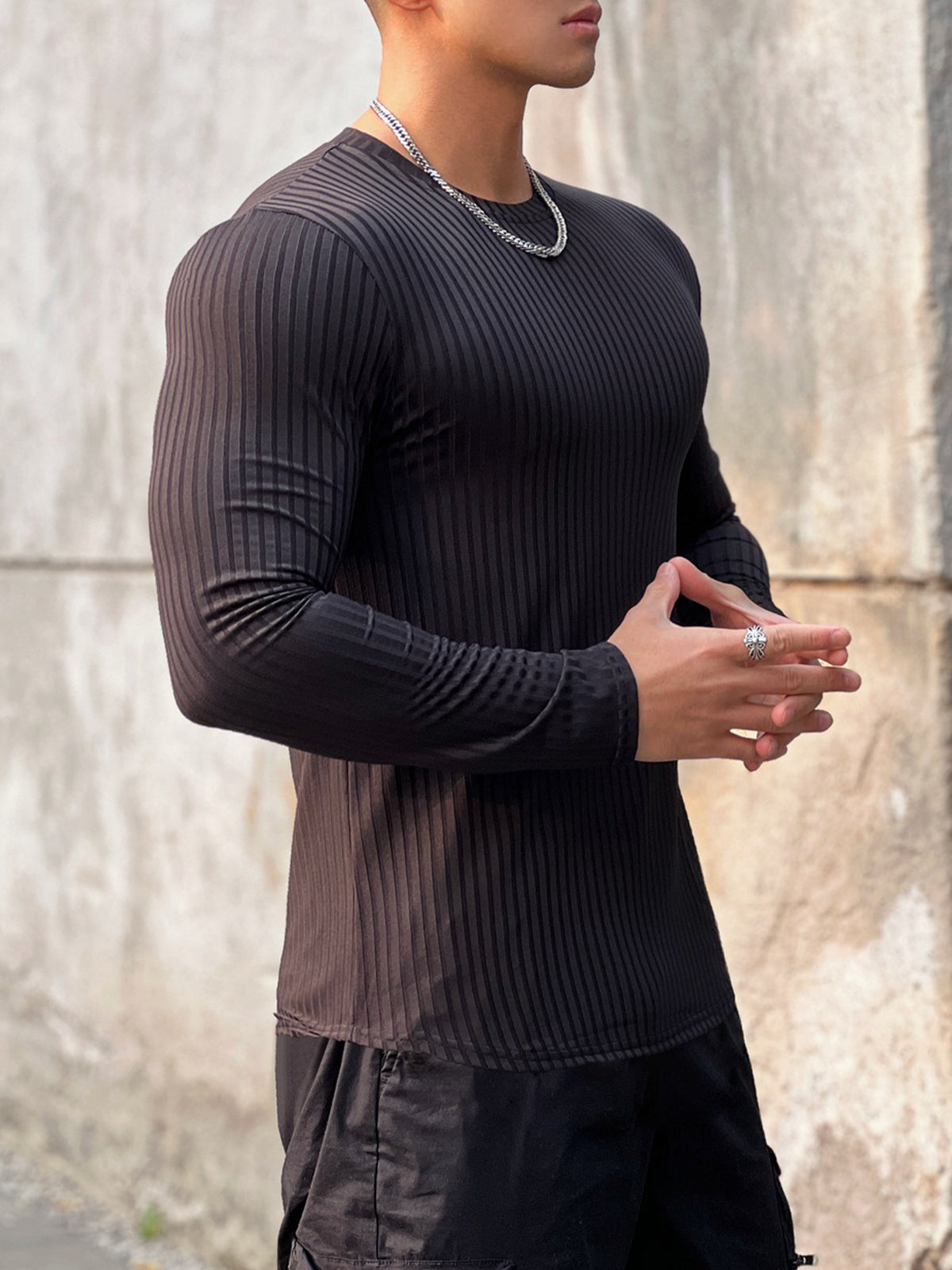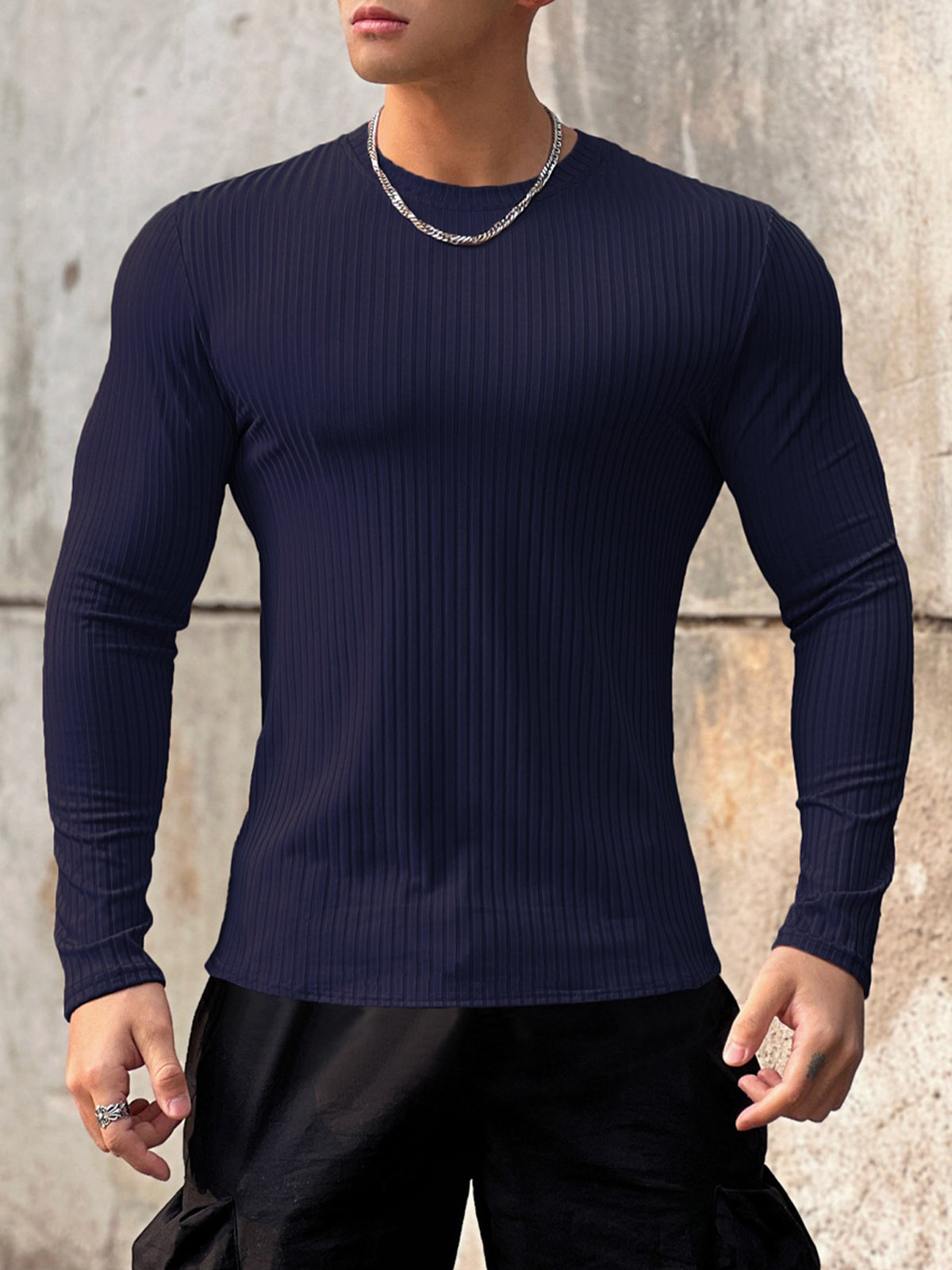 Dies ist ein langärmliger Pullover mit Rundhalsausschnitt und Rippenmuster für Herren aus atmungsaktivem Stretchmaterial. Vielseitiger Stil für jeden Tag.
