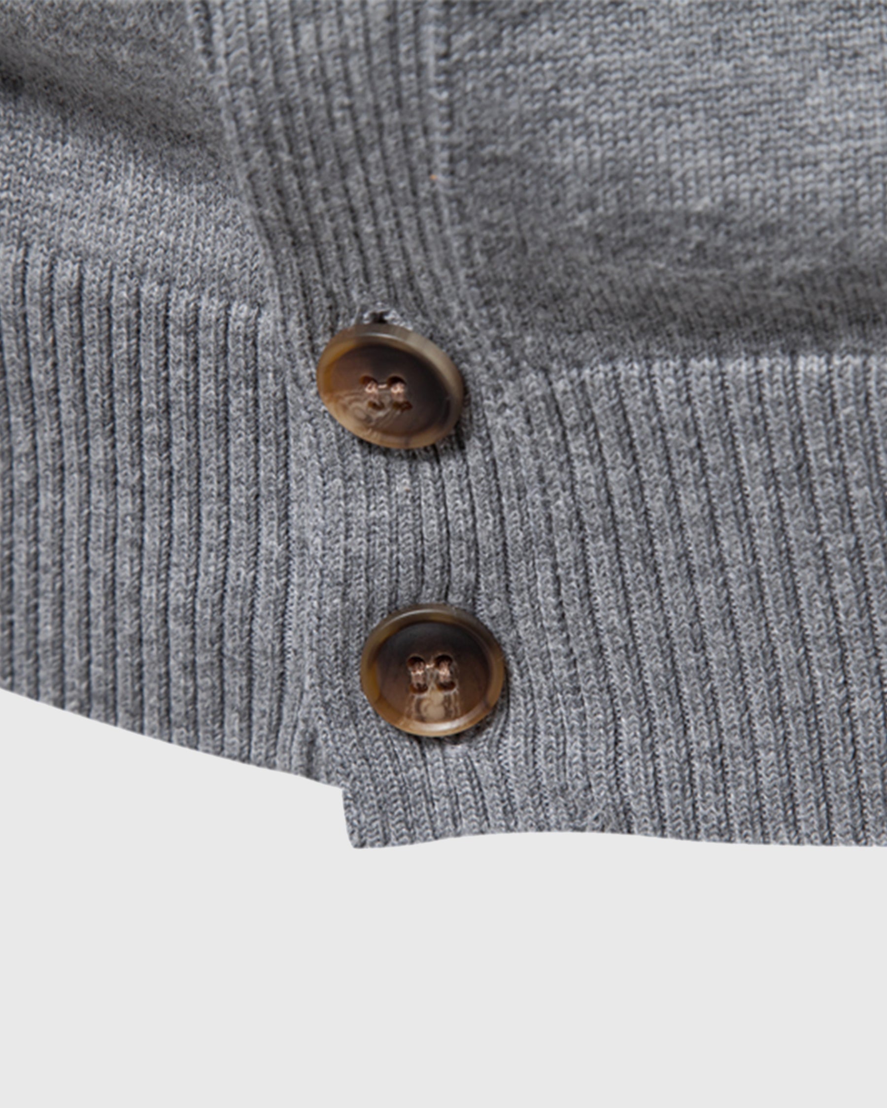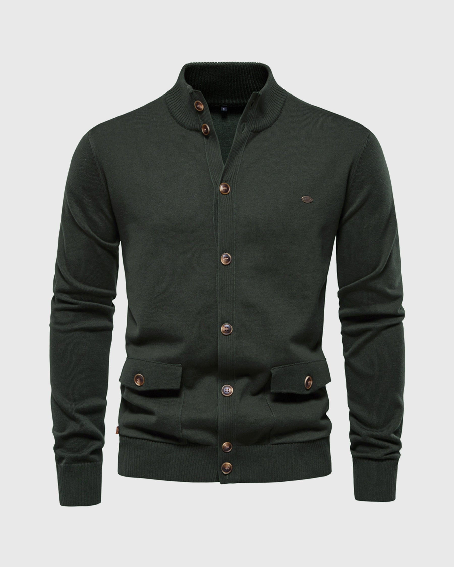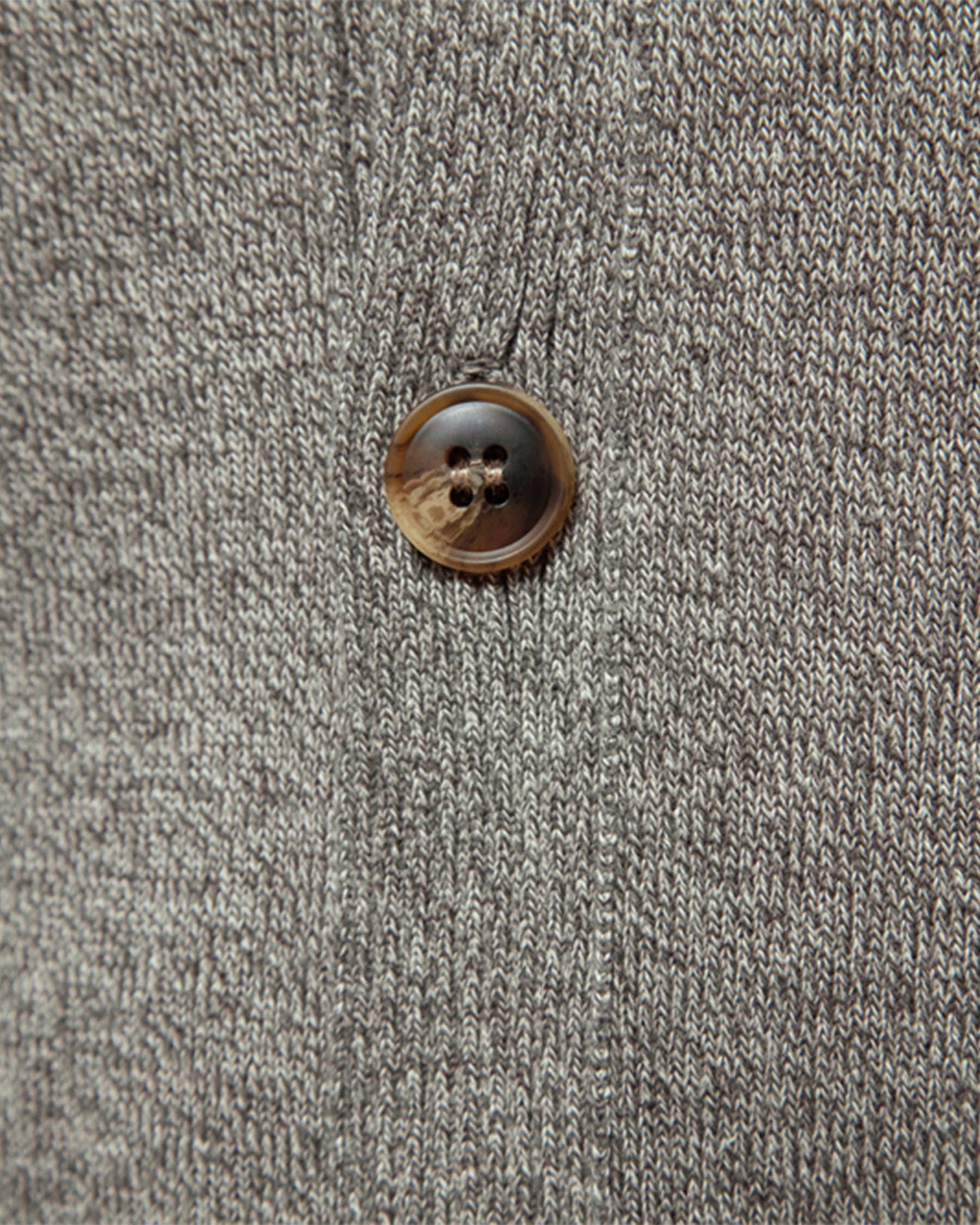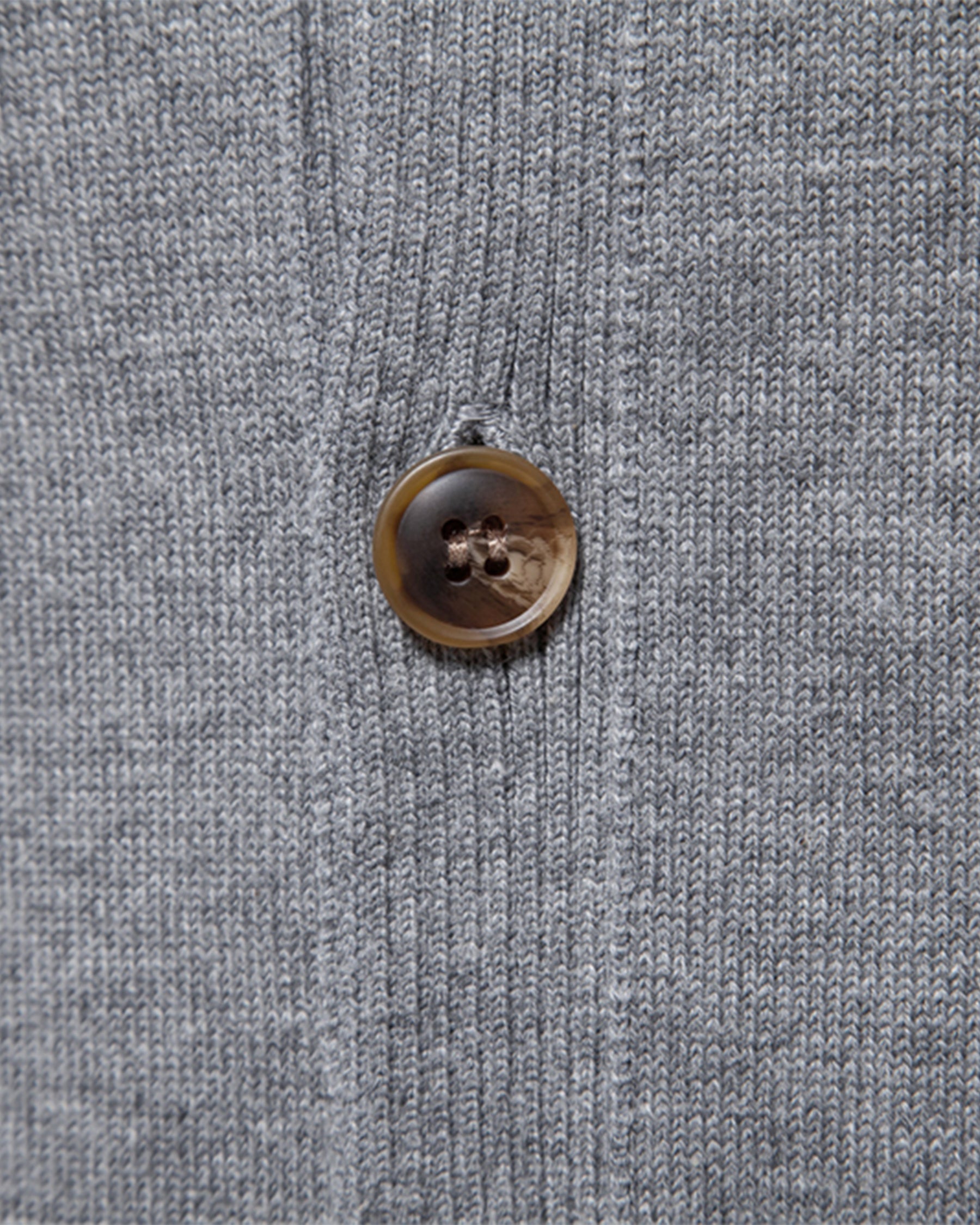 Diese hellgraue Strickjacke für Herren vereint Stil und Funktionalität. Sie verfügt über einen Stehkragen, einen Knopfverschluss vorne und zwei untere Taschen. Mit ihrer schmalen Passform und dem dezenten Markenlogo ist sie vielseitig einsetzbar für legere und halbformelle Anlässe. Der mittelschwere Stoff bietet Komfort und Anpassungsfähigkeit für verschiedene Jahreszeiten und macht sie zu einem unverzichtbaren Kleidungsstück.