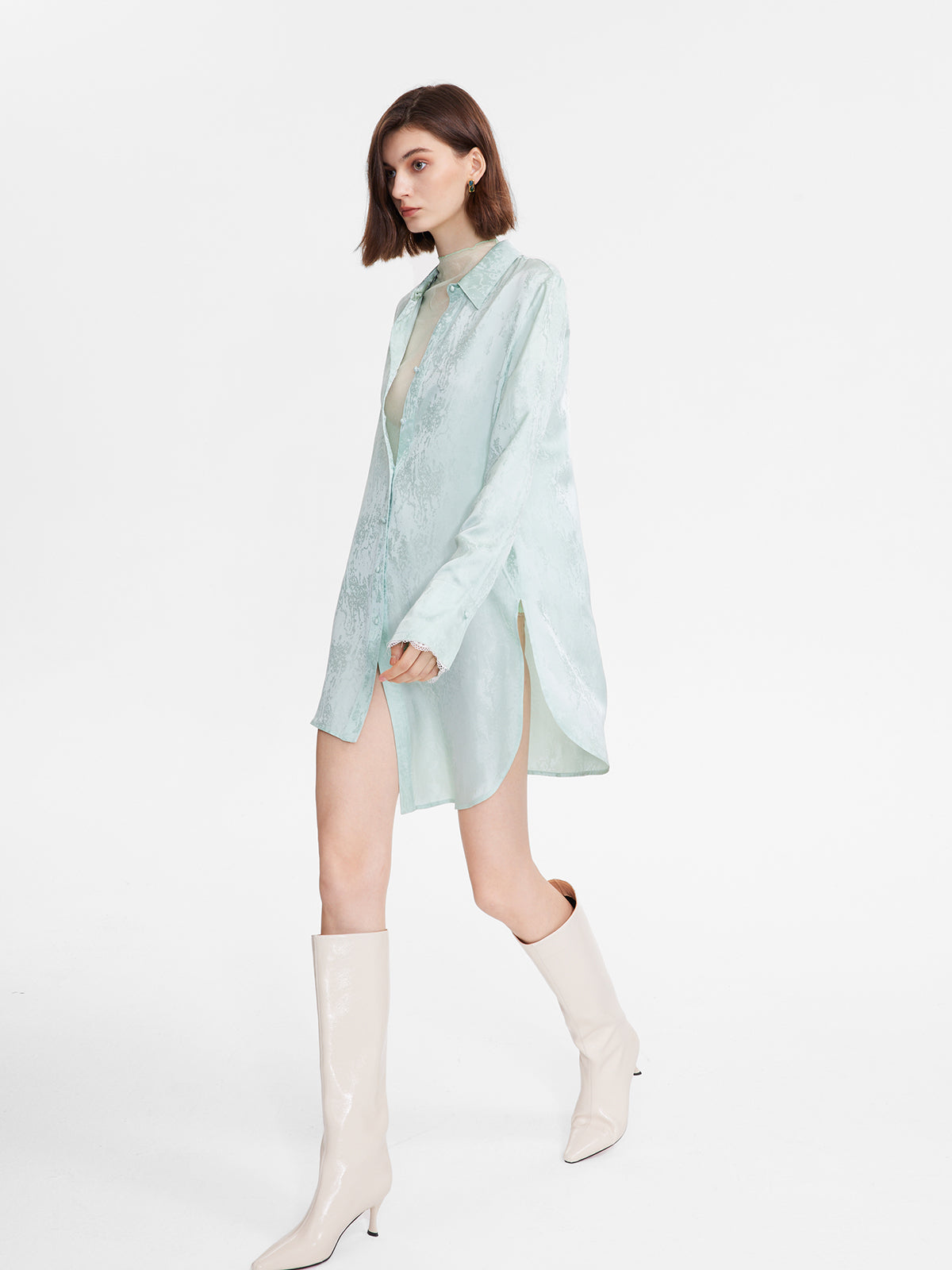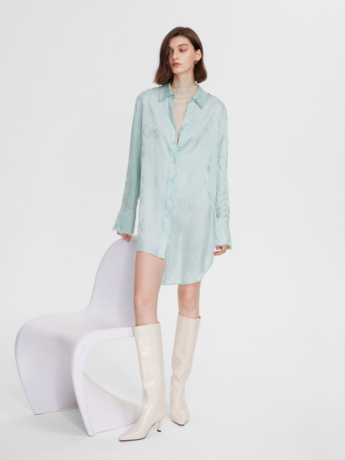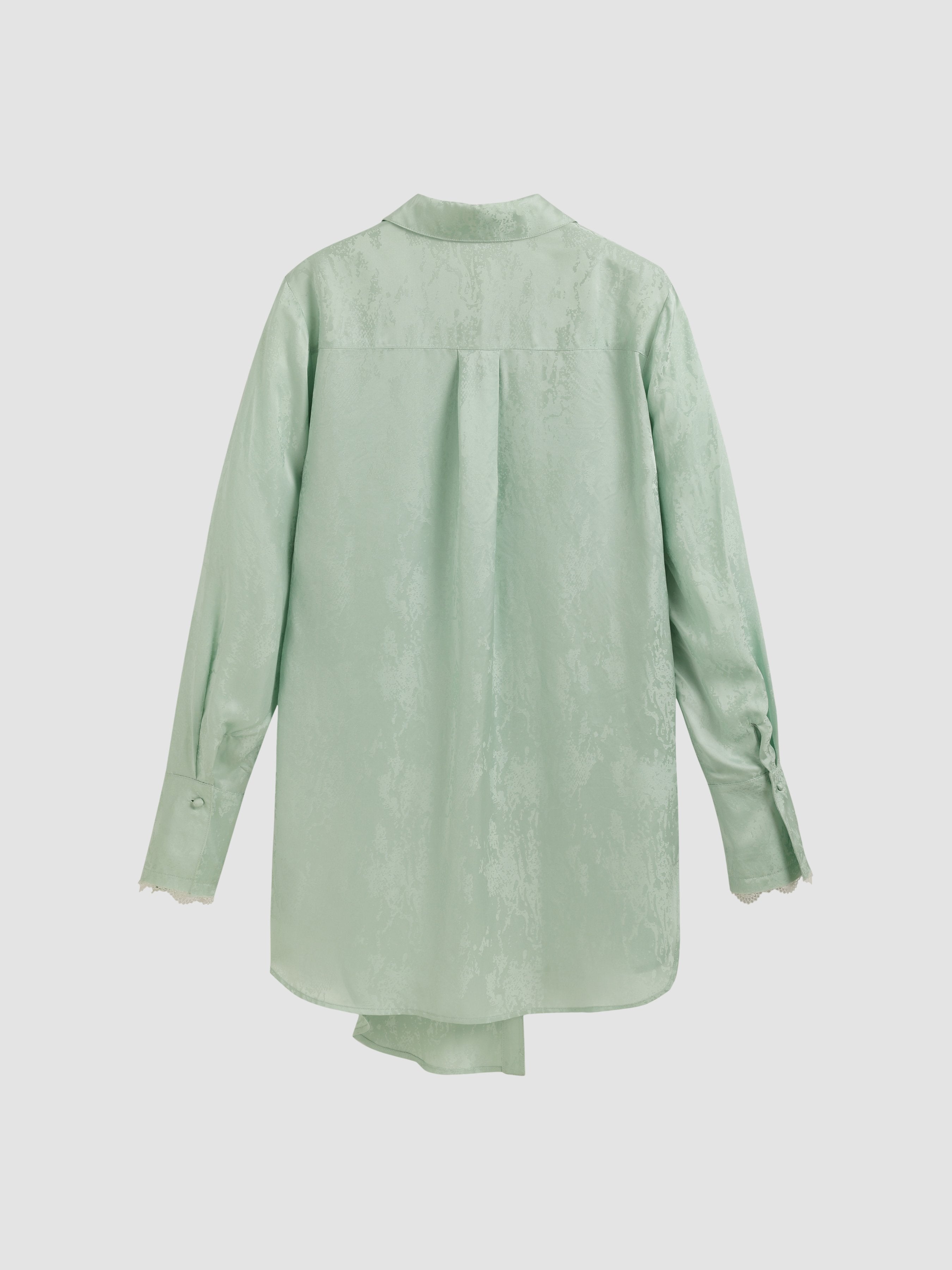 Langärmliges Hemdblusenkleid aus Satin mit unregelmäßiger Form