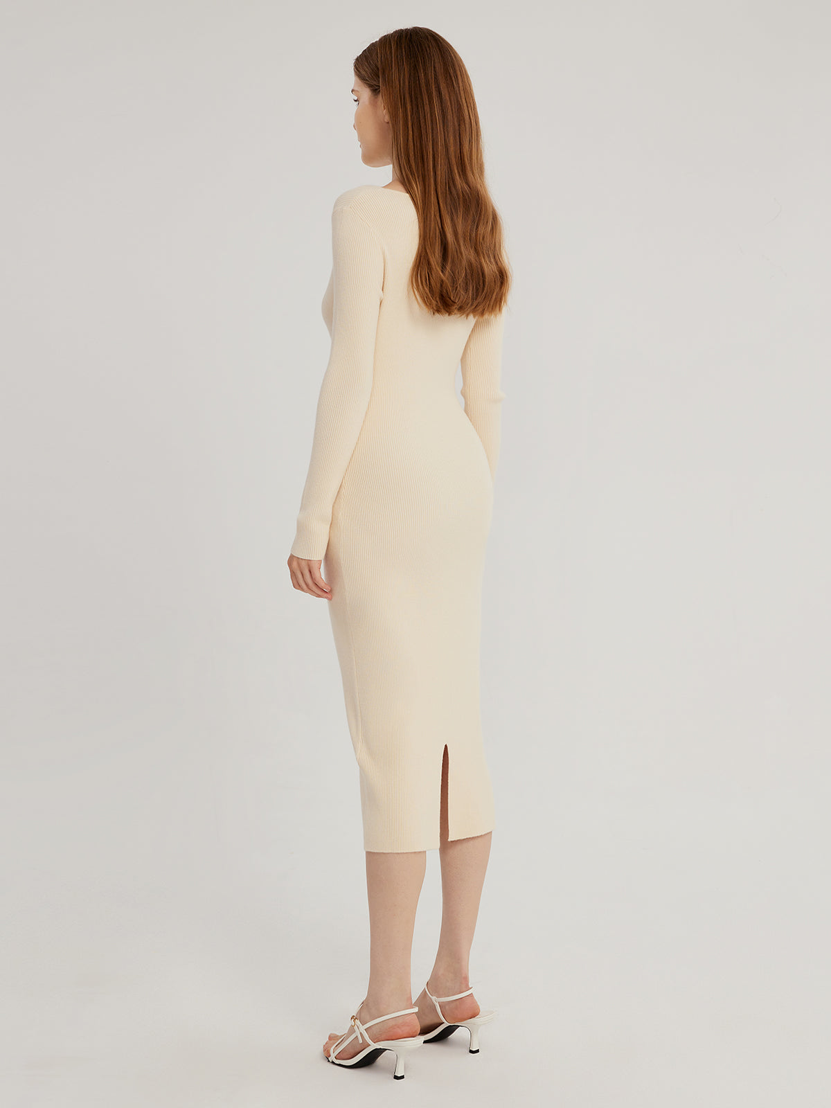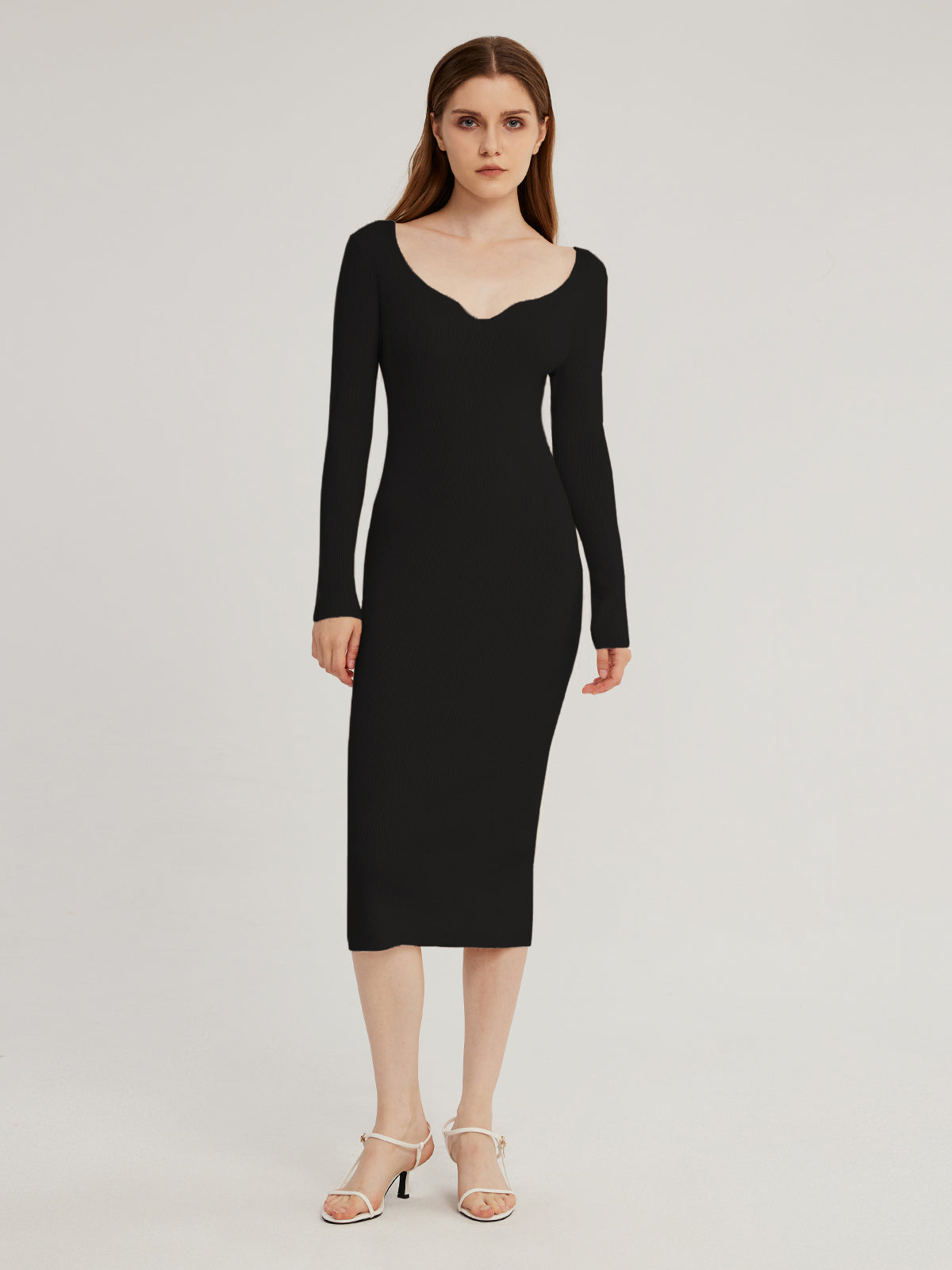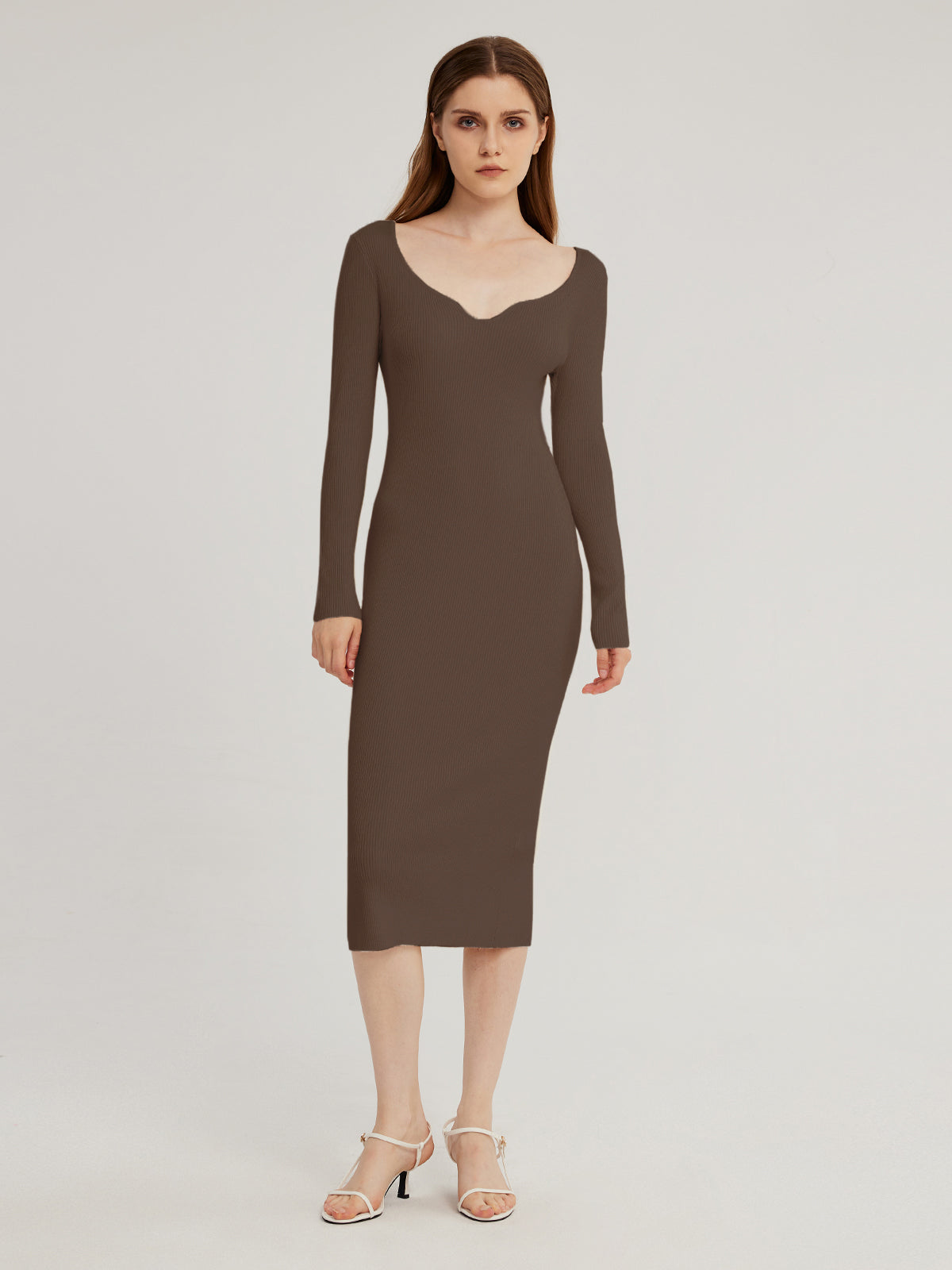 Maxikleid mit Herzausschnitt und langen Ärmeln