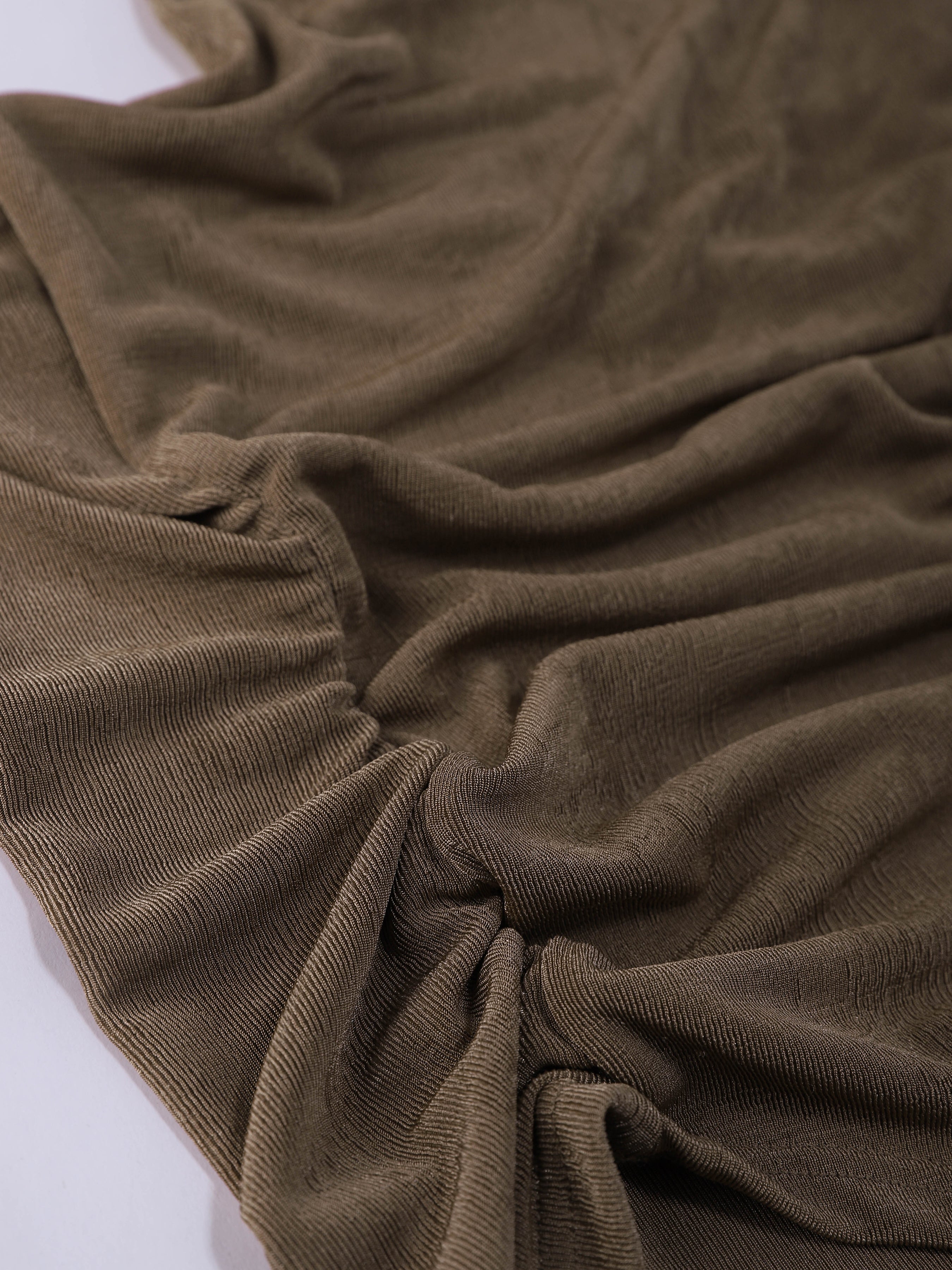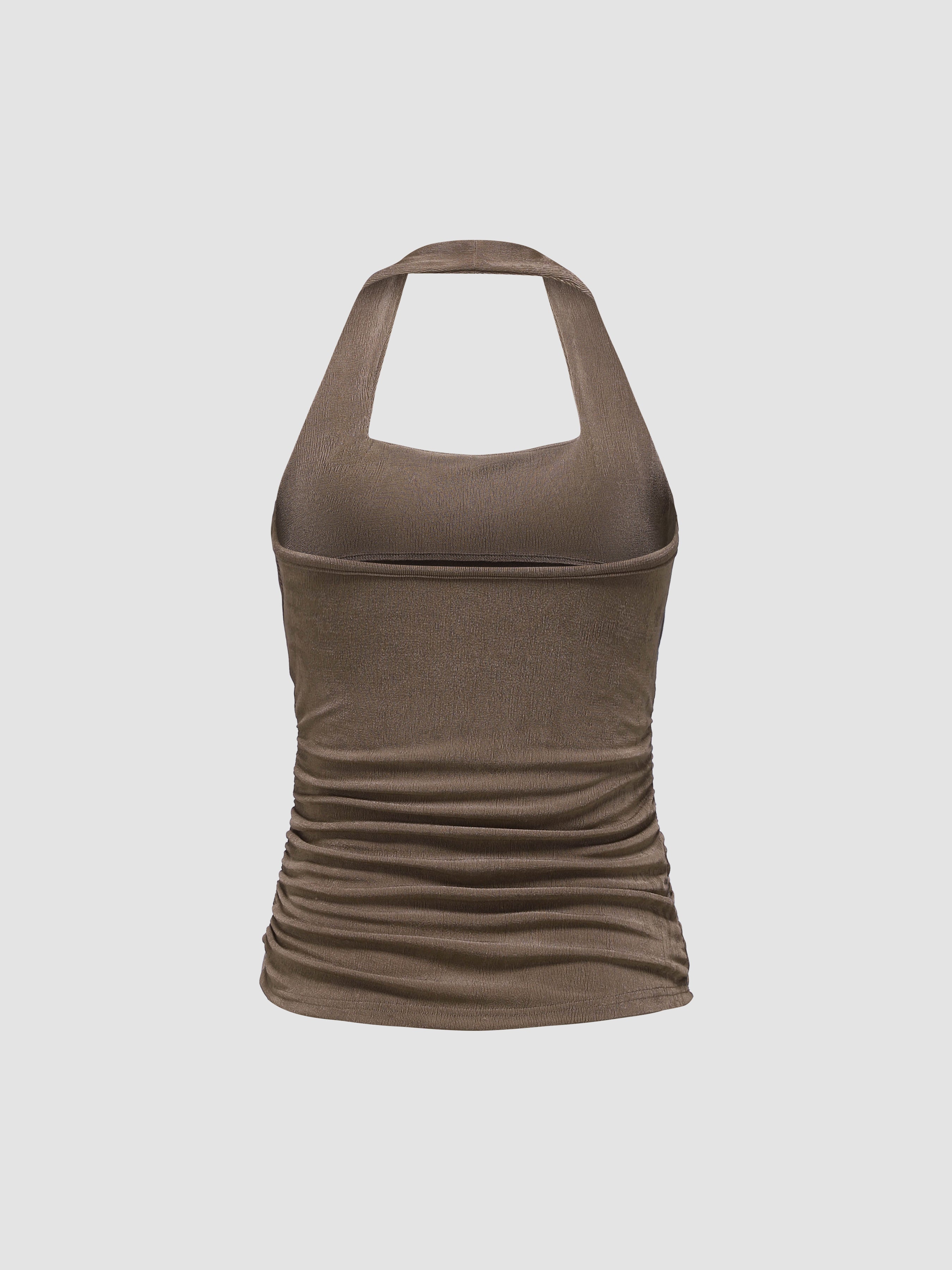 - The drawstring and ruched detailing add texture and dimension to the top, creating visual interest.