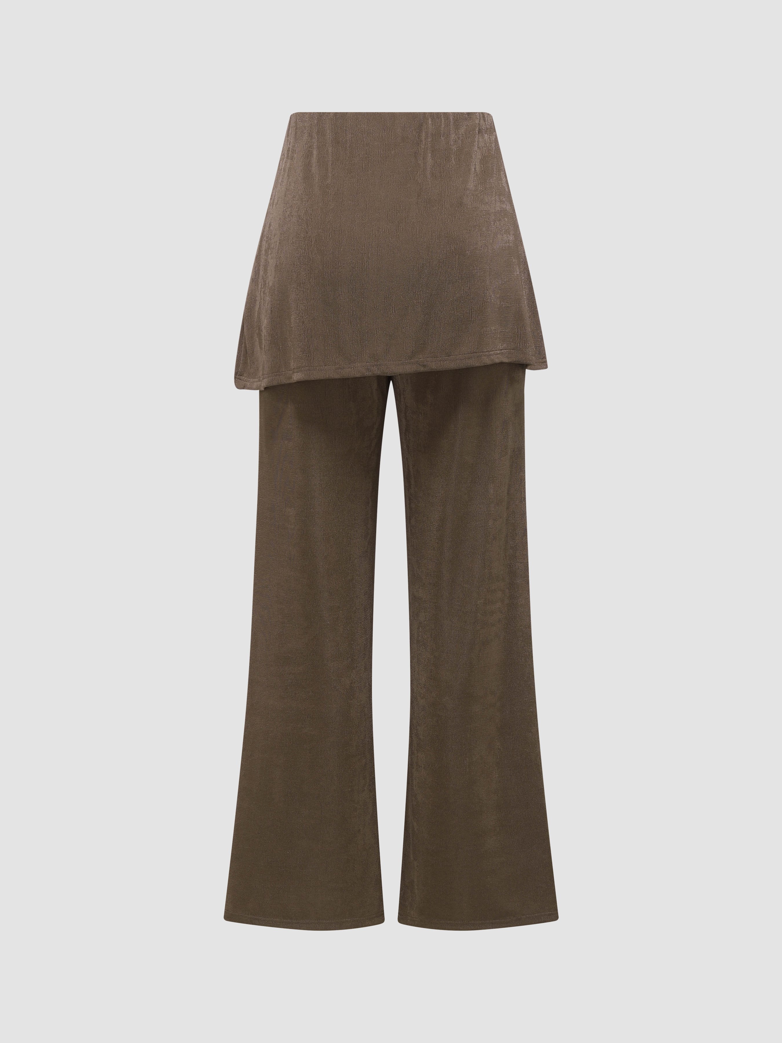 - This ensemble features a faux two-piece design, giving the appearance of a coordinated skirt and pants combination.