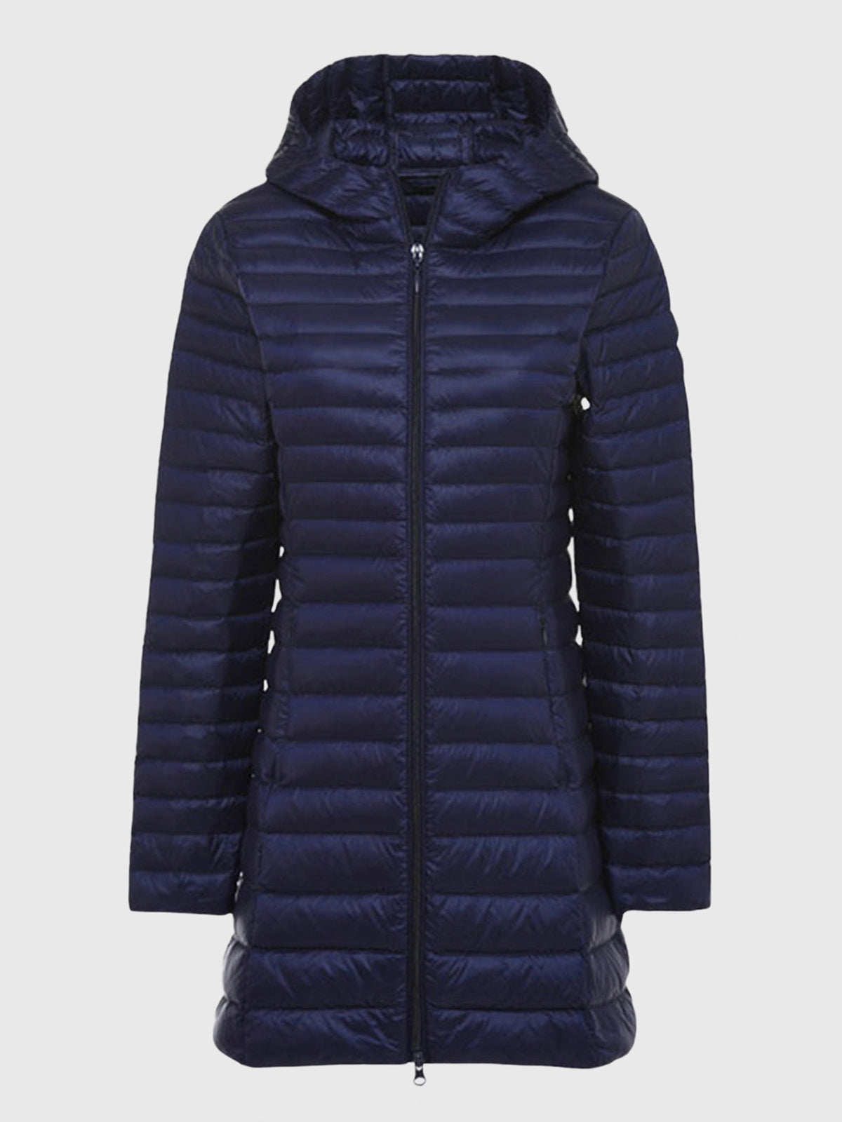 This is Long Lightweight Down Jacket and keep you warm to 0°C / 32°F. It's made with durable nylon, water-repellent fabric, and filled with high-quality duck down. Wear it on its own or as a toasty extra layer under coats and jackets when the temperature really drops.