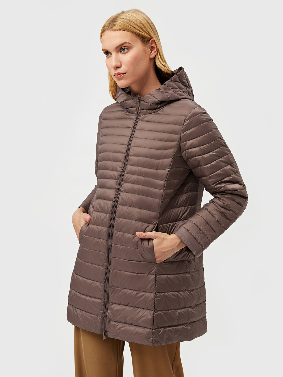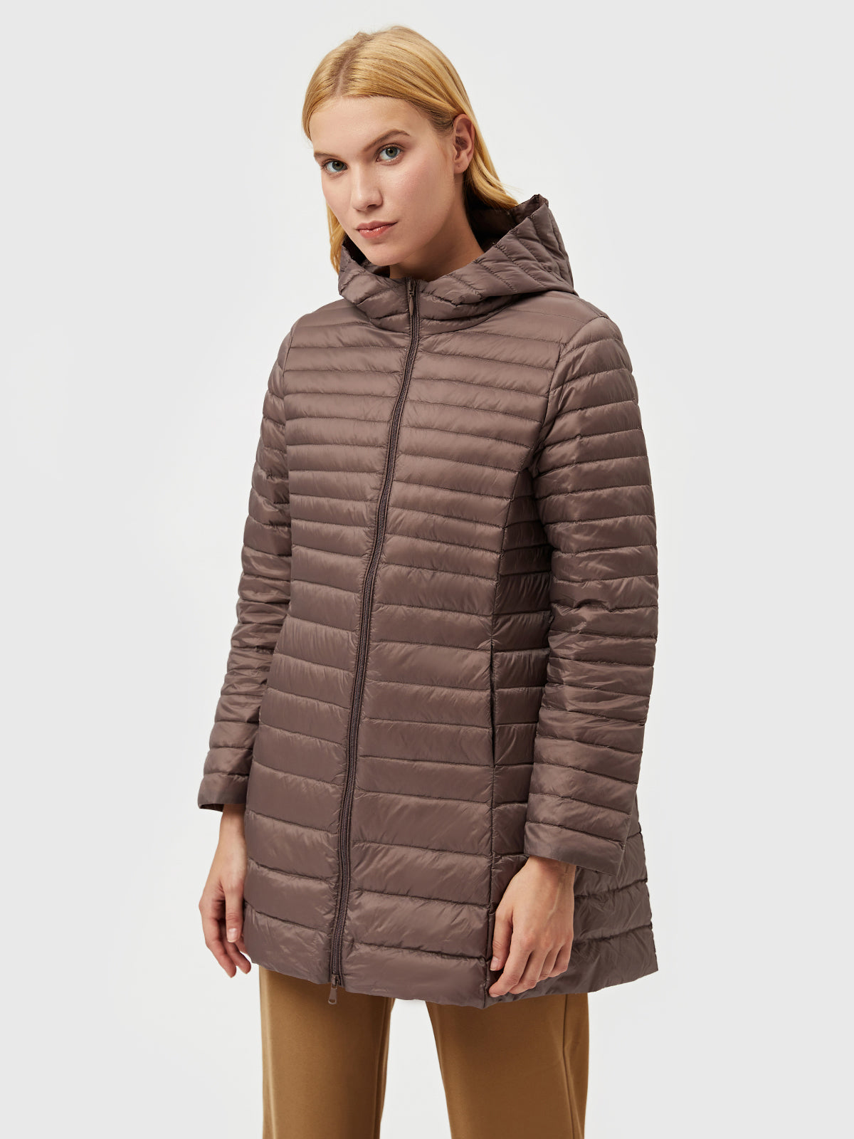 Long Hooded Light Down Puffer Jacket