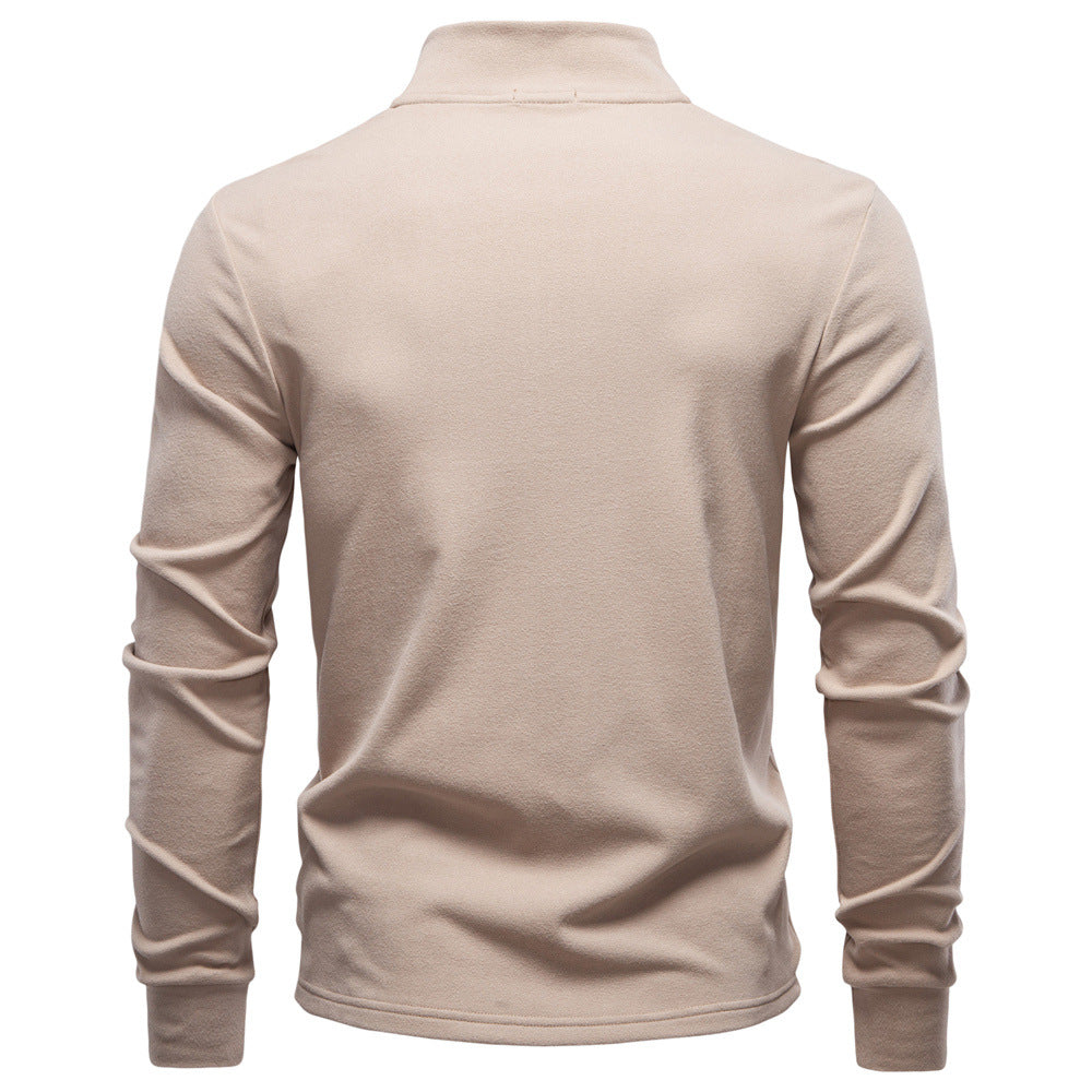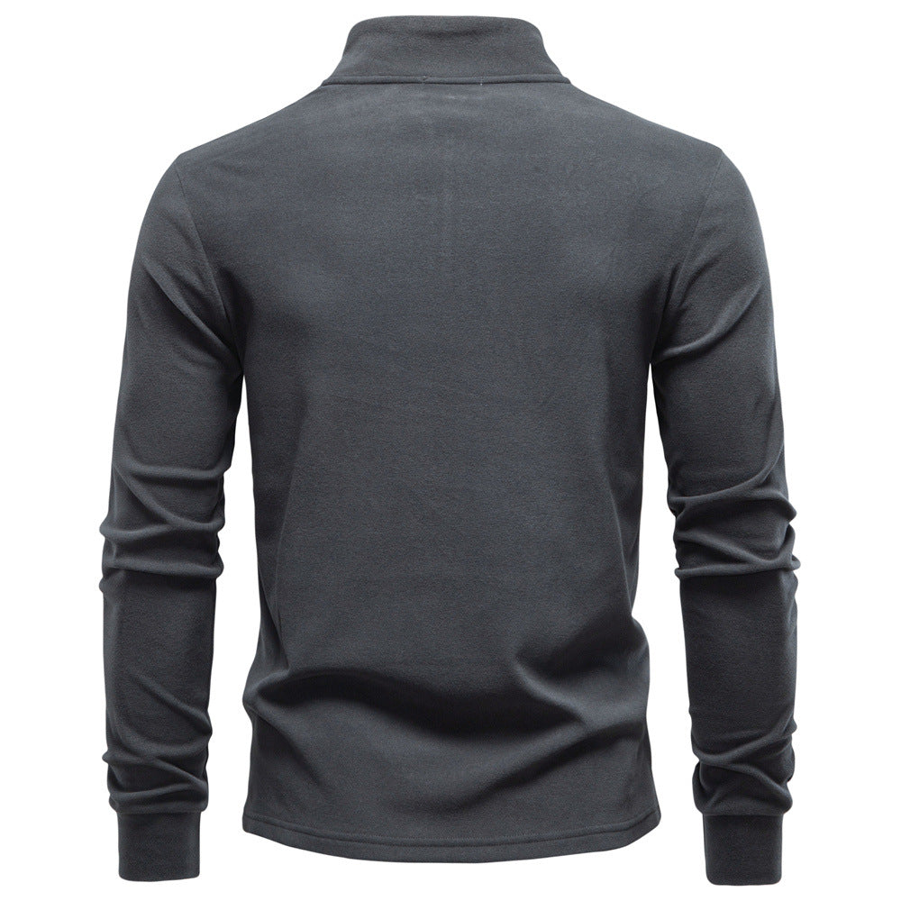 Men's Half-Zip Long-Sleeved Fleece With Vertical Collar - Ahaselected