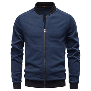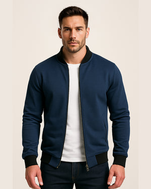 The Men’s Bomber Jacket with a classic baseball collar blends business casual elegance with modern versatility. Crafted from a breathable cotton-polyester blend, this jacket is lightweight, durable, and comfortable—making it the perfect go-to outerwear for workdays, weekends, and everything in between.