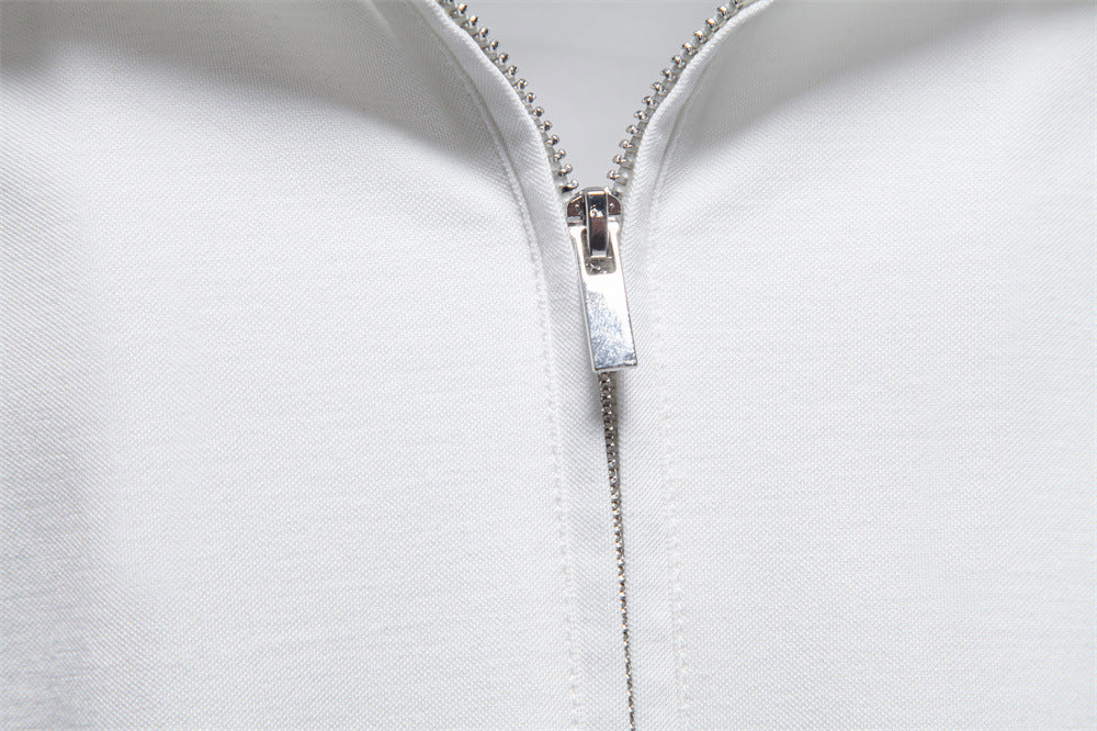 - Zip collar design adds a modern, sophisticated touch