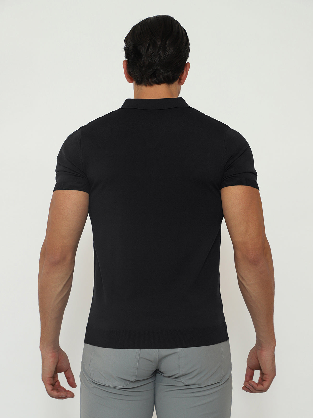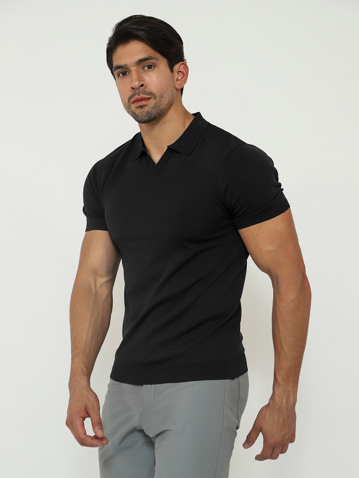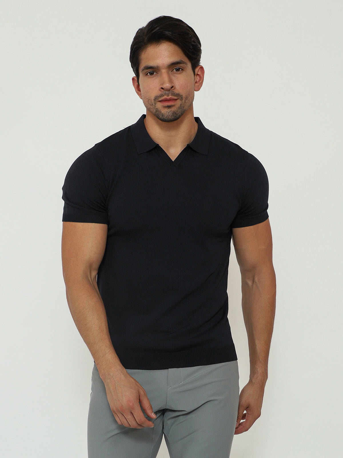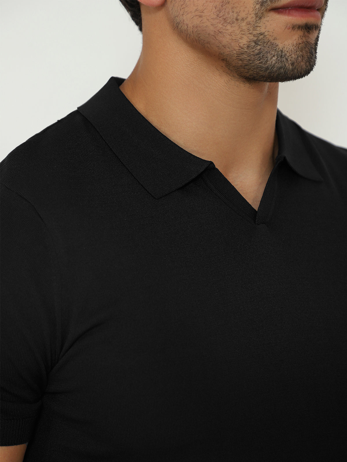 Open Collar Knit Polo Black