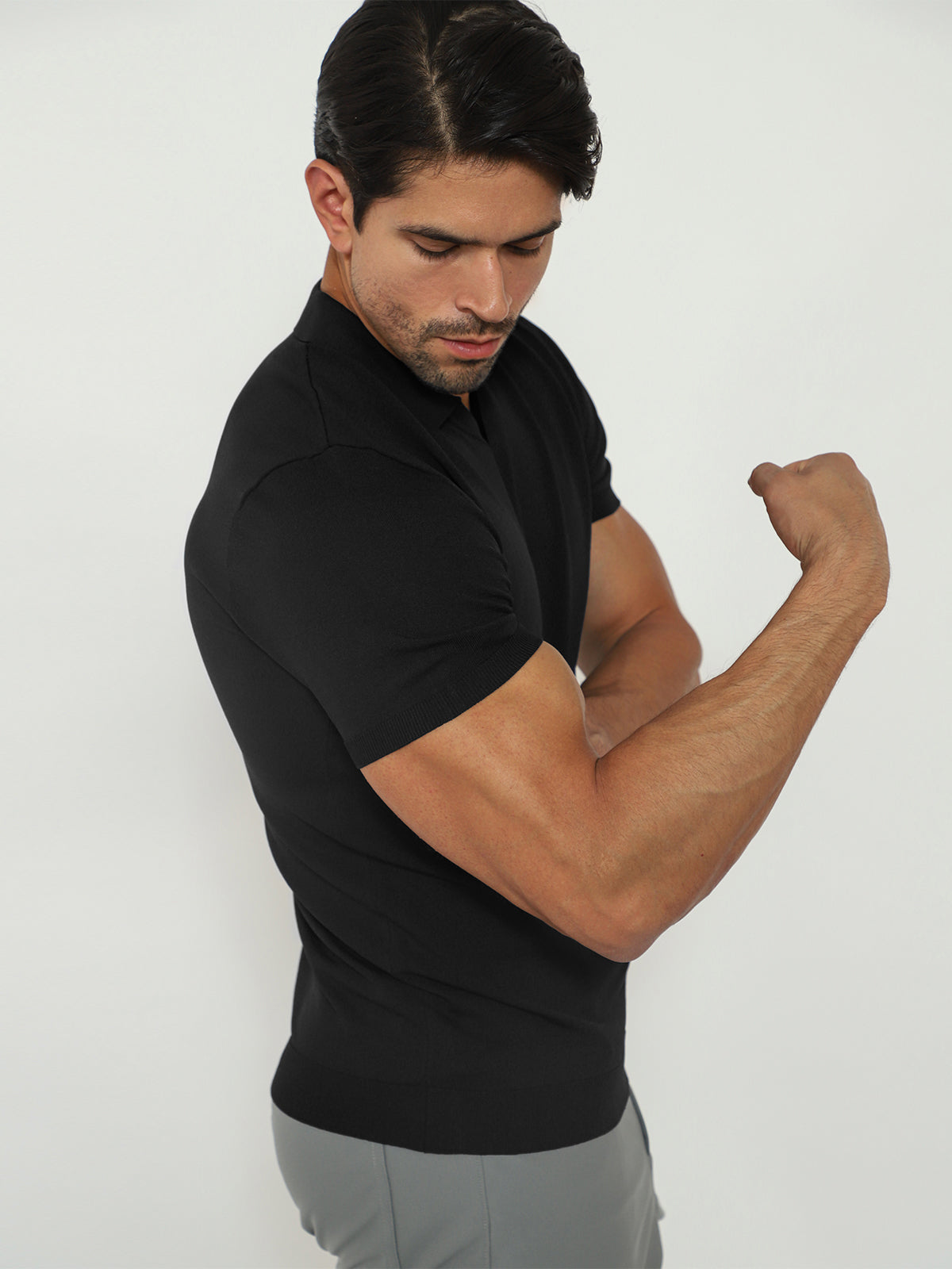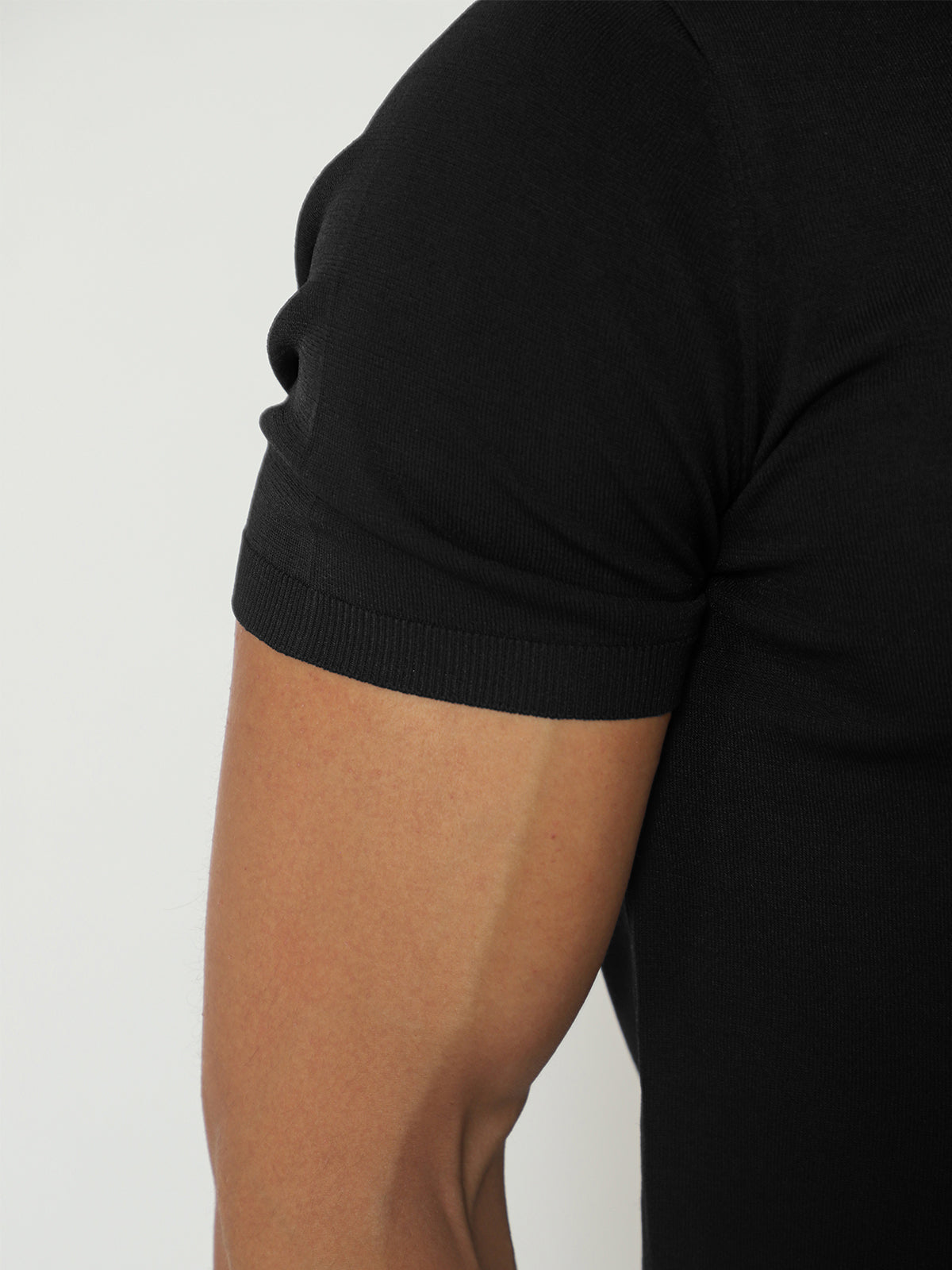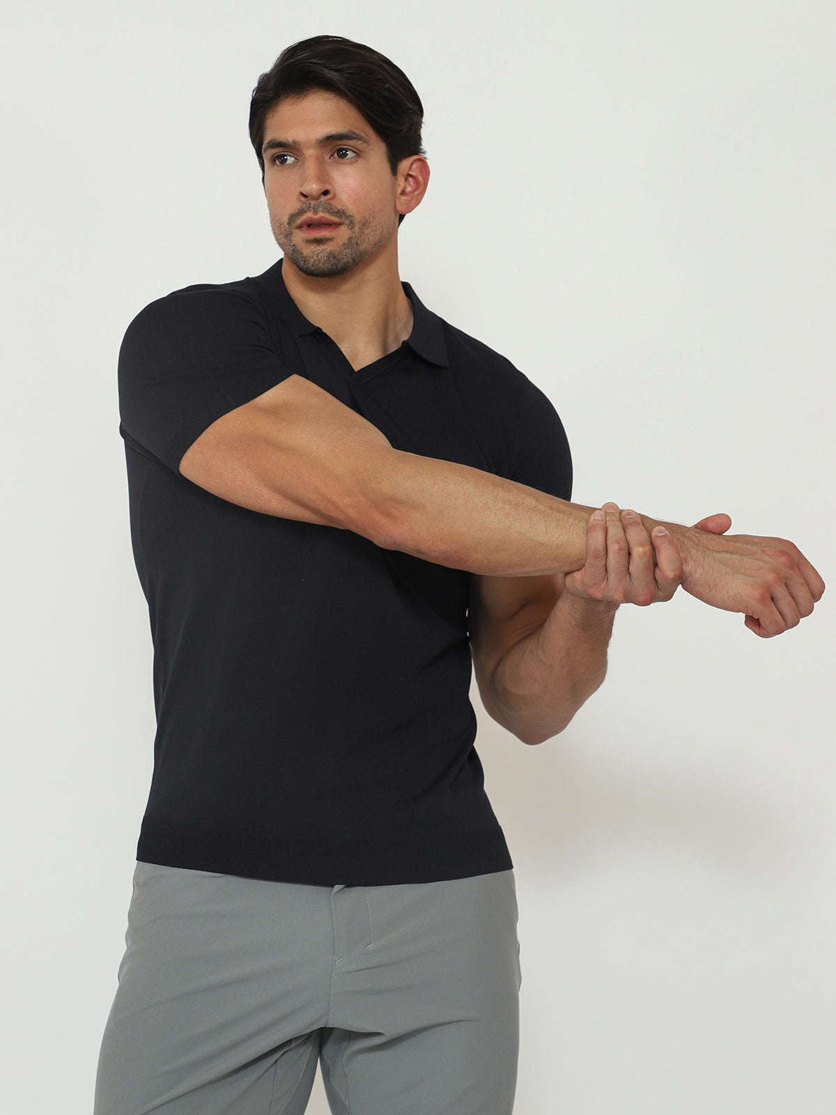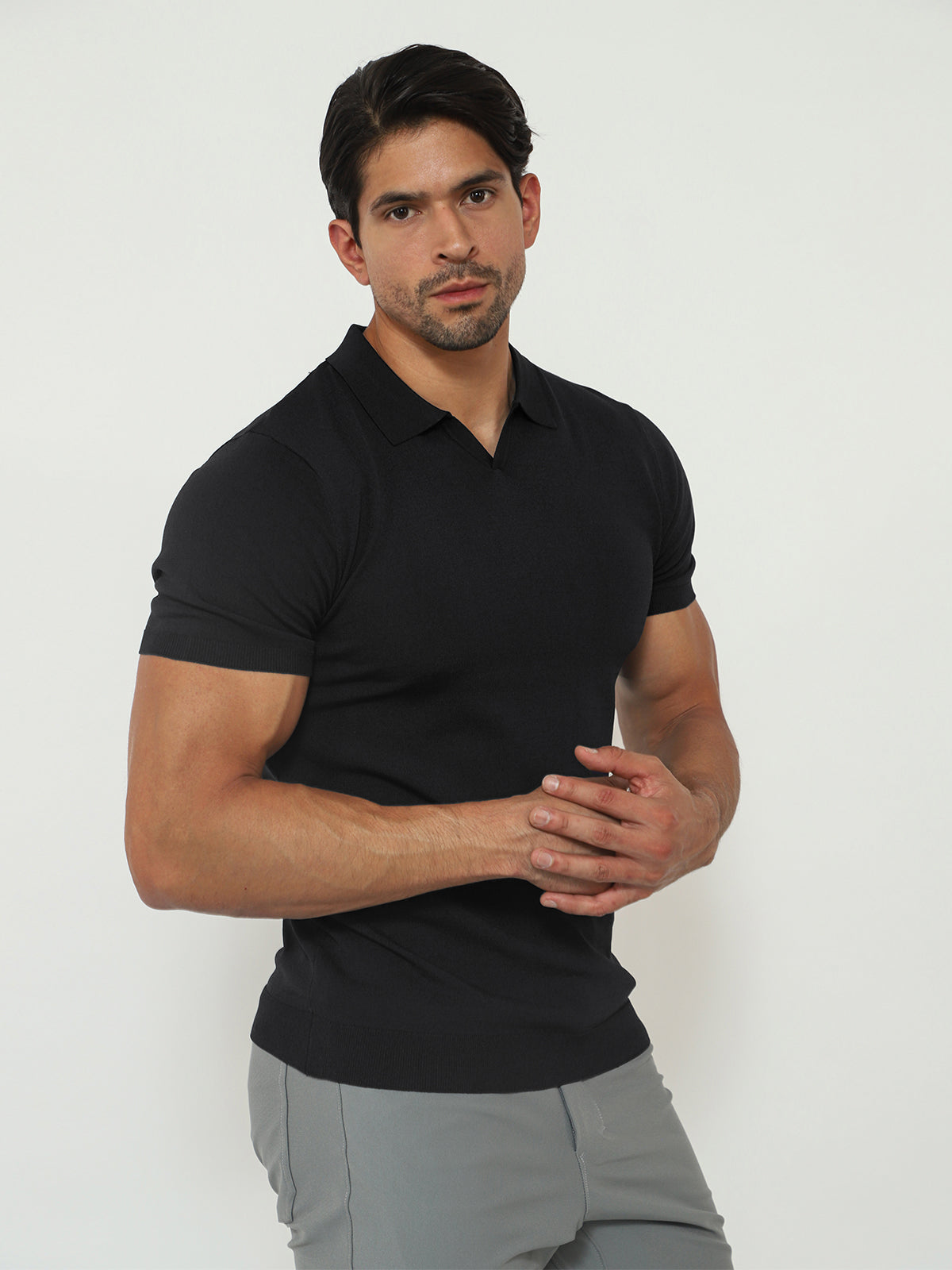 Open Collar Knit Polo Black