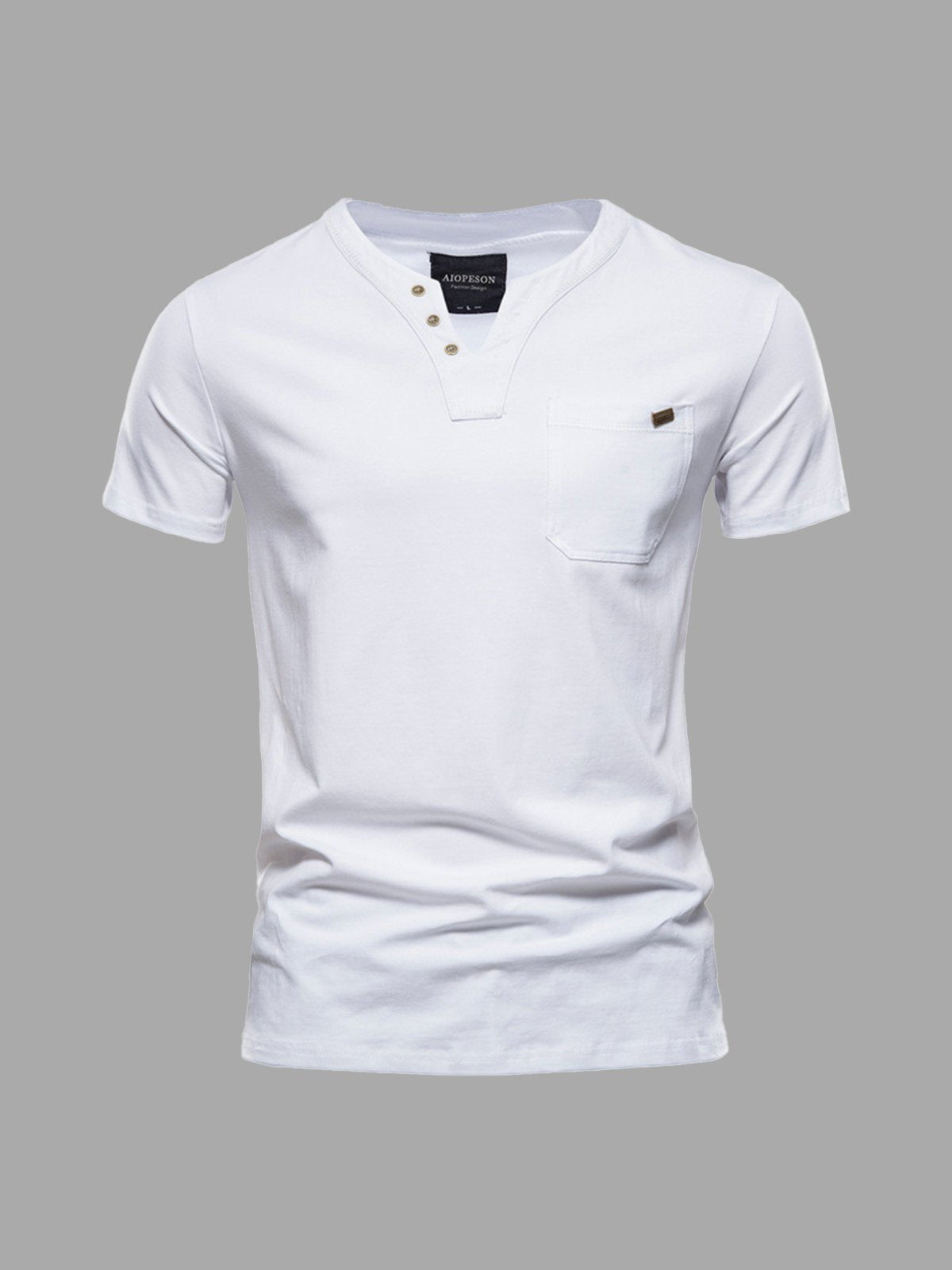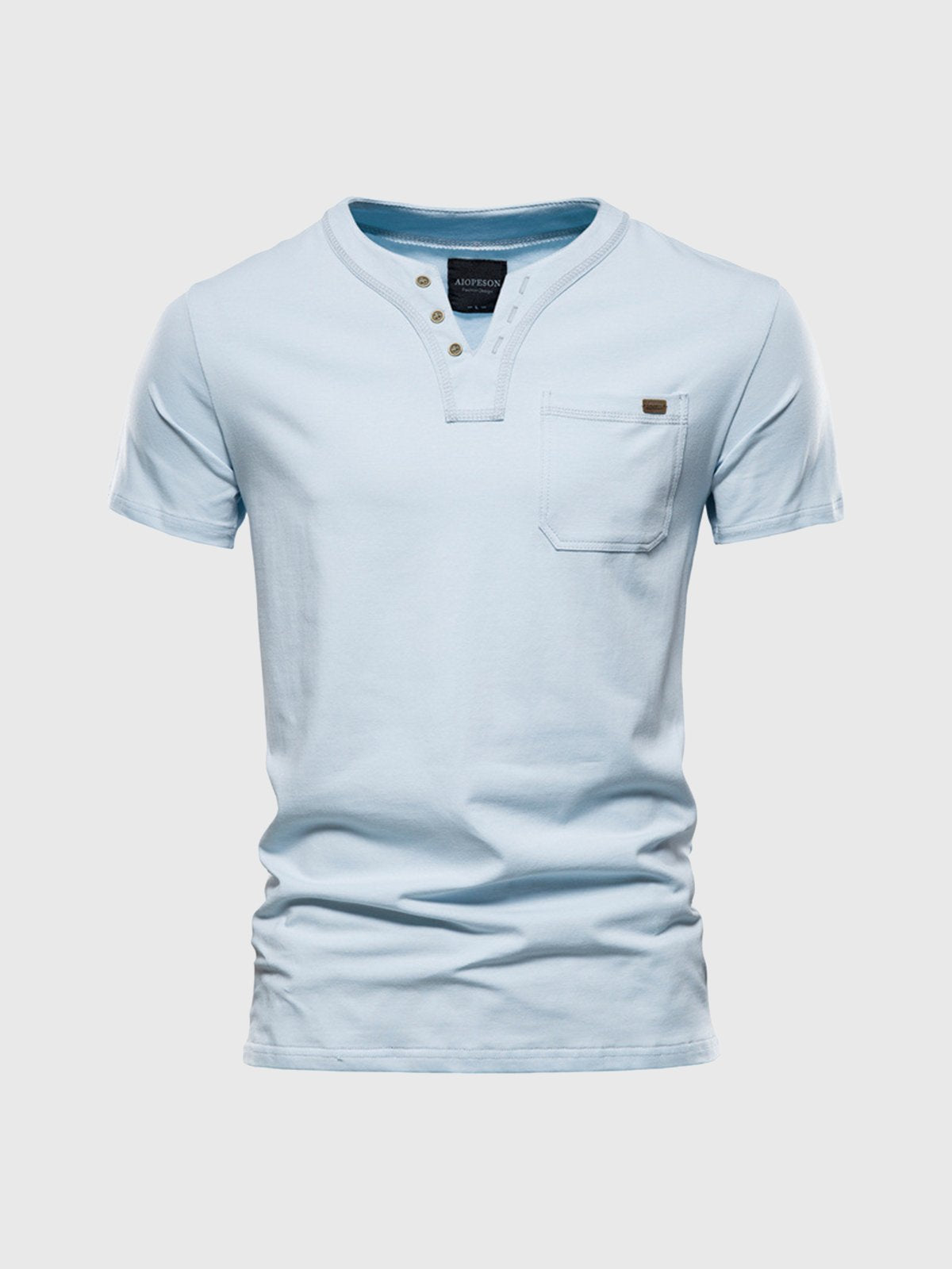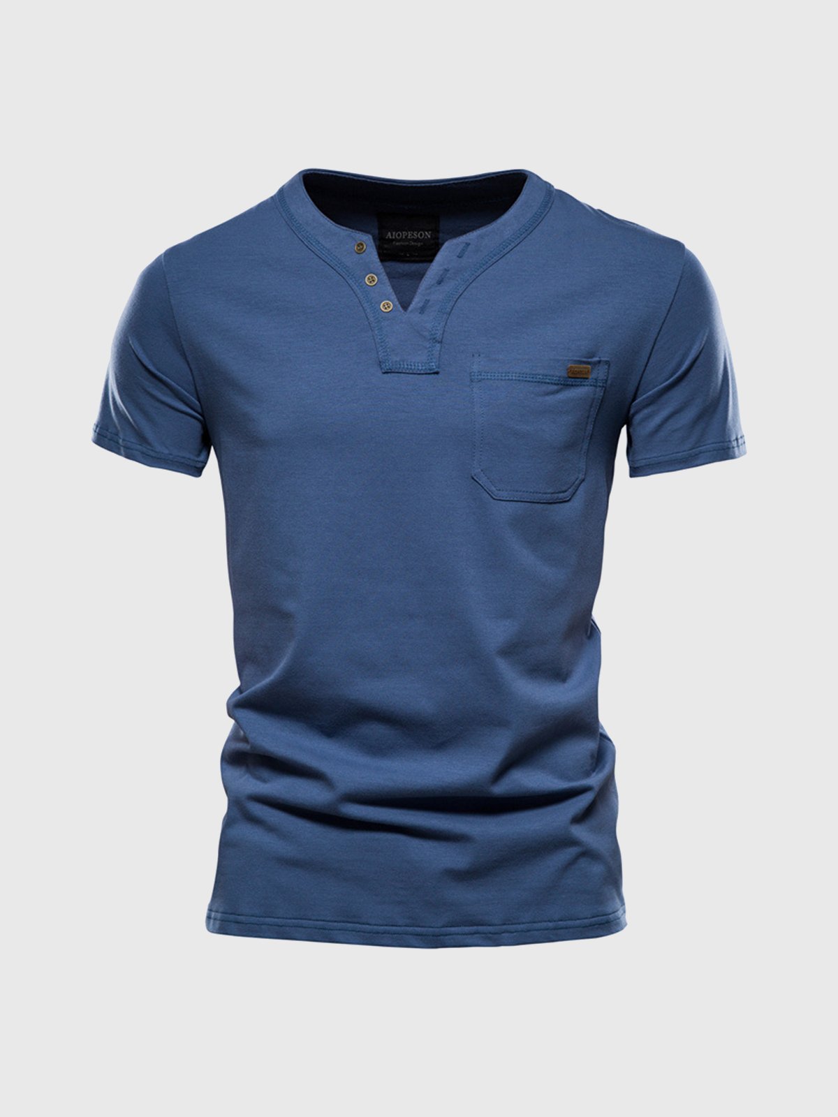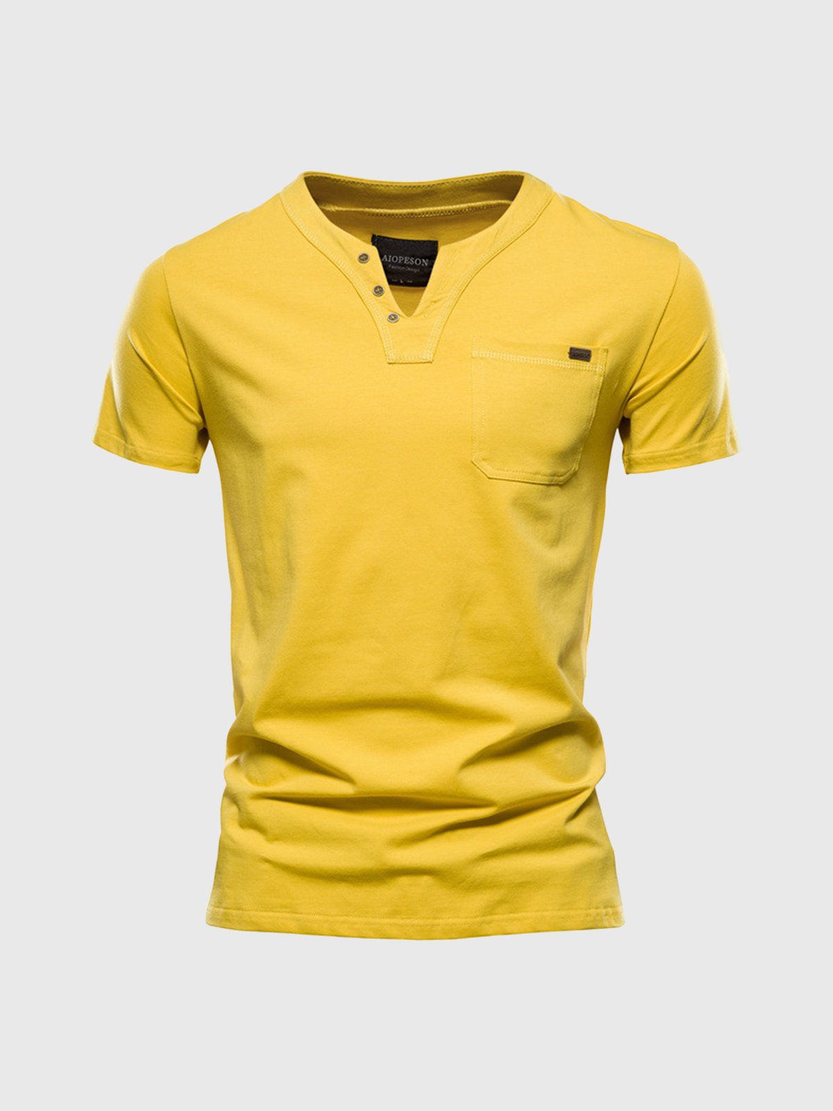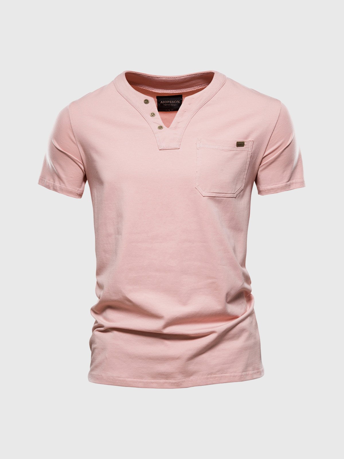 M's Pocket V-neck Henley Cotton T-Shirt(Final Sale–No Return or Exchange)