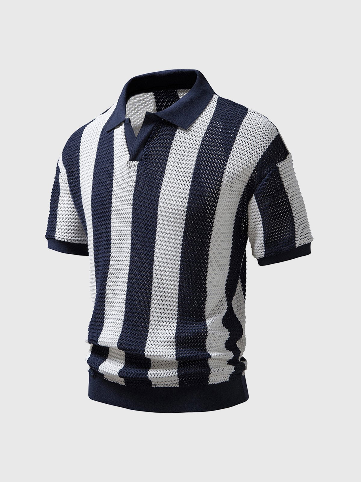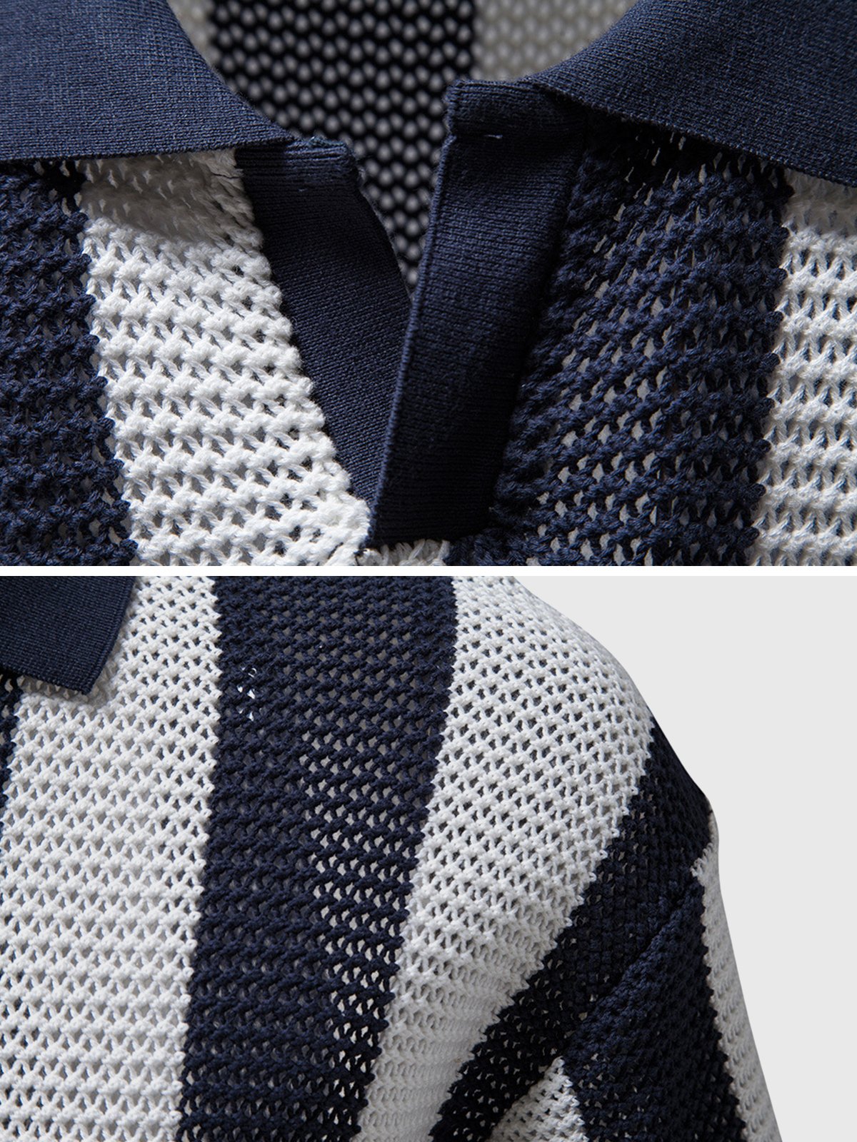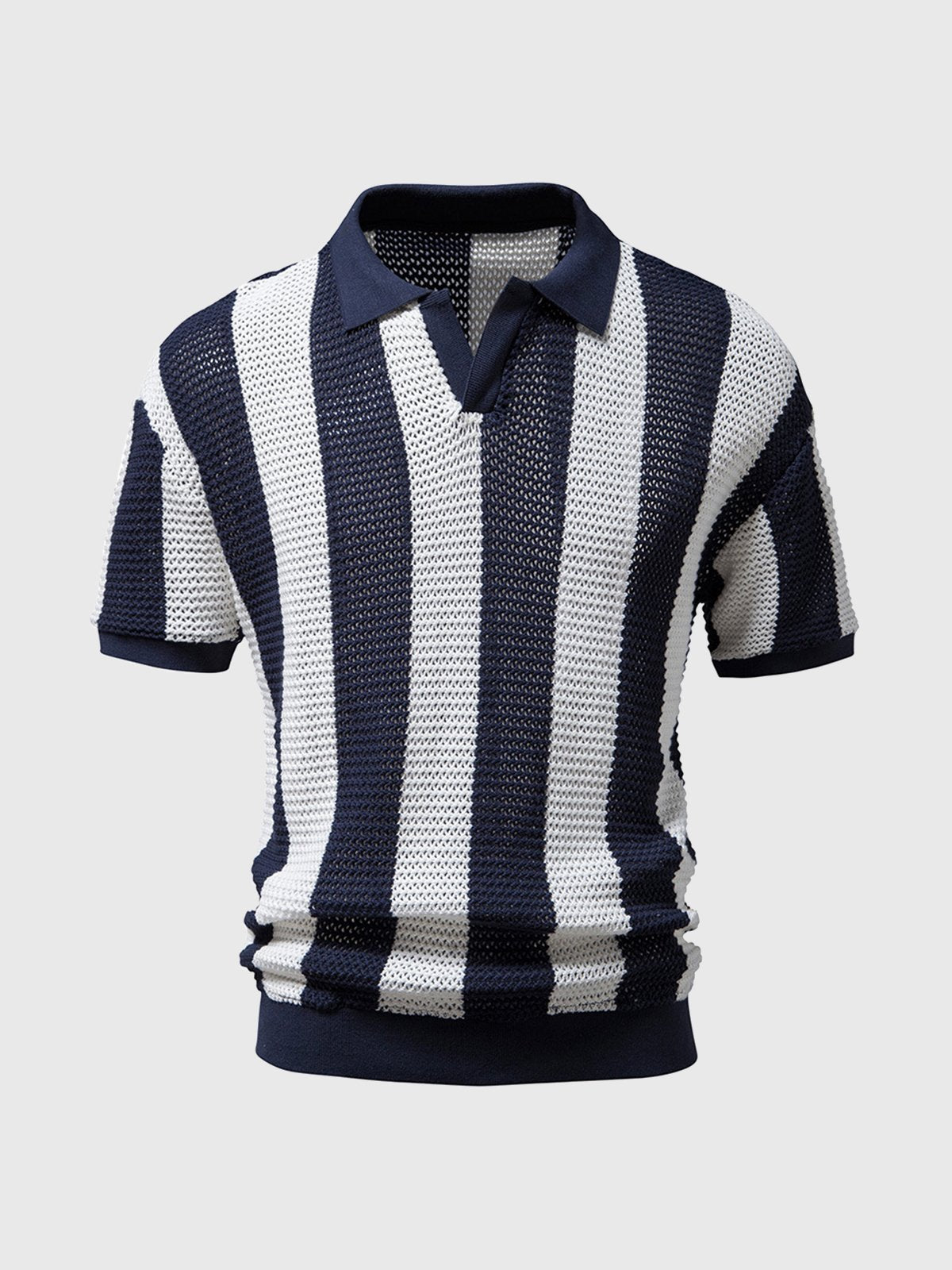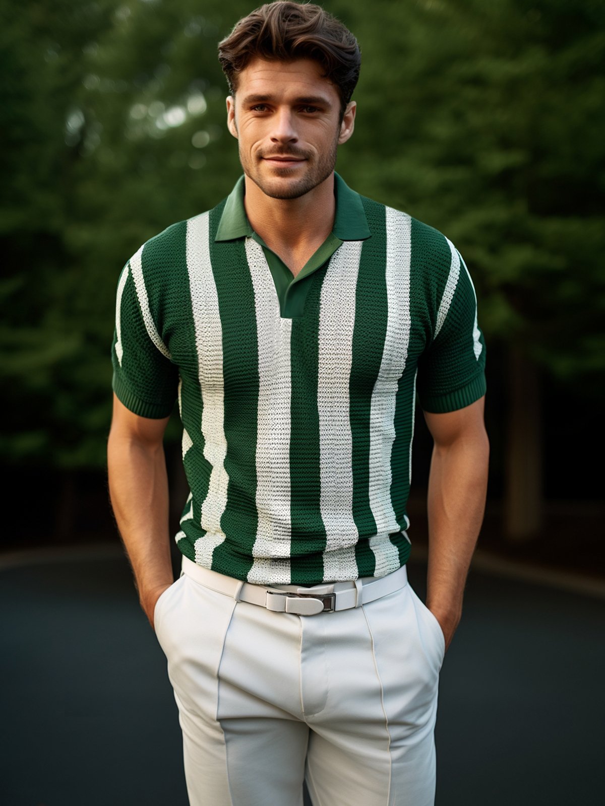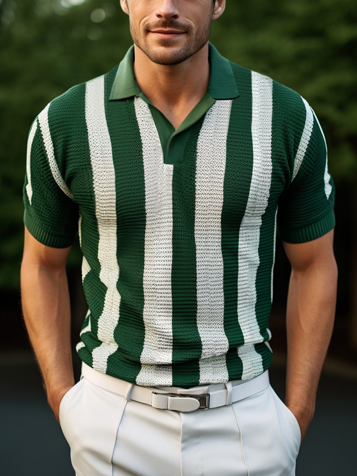 M's Resort Striped Knit Polo T-Shirt Short Sleeve - Ahaselected