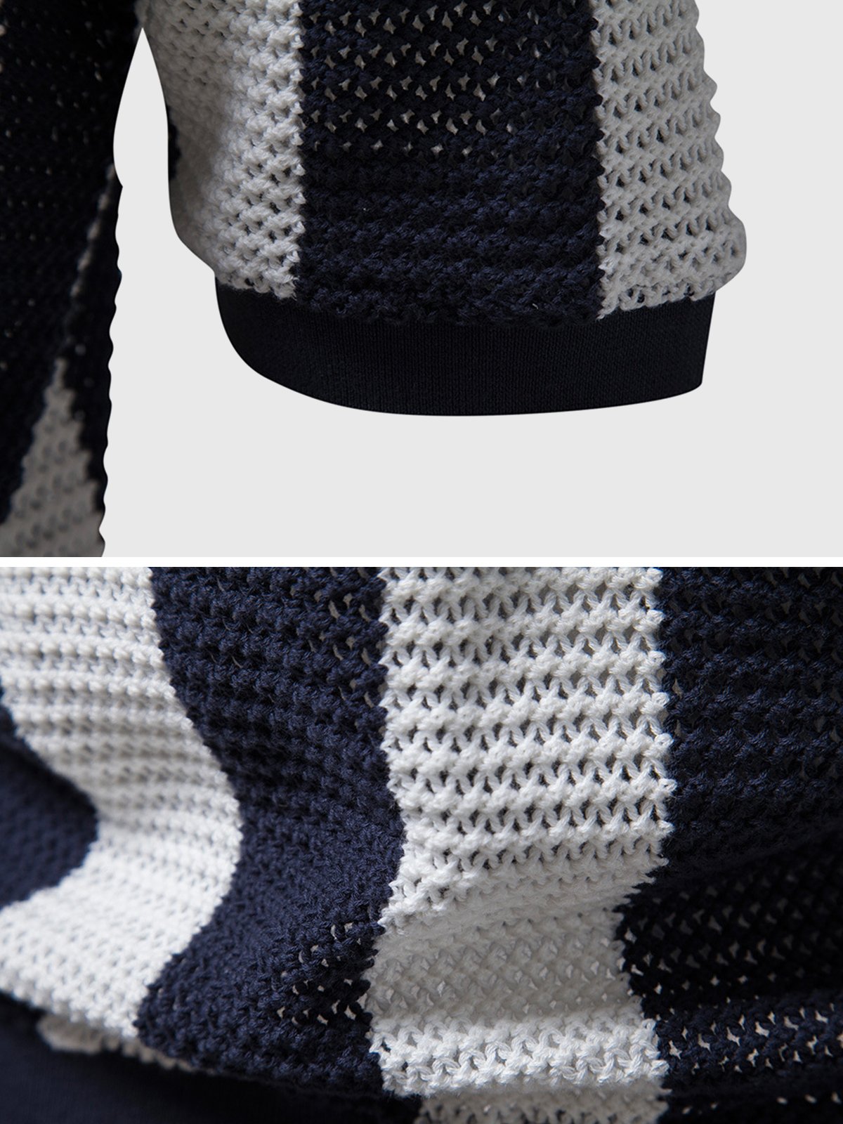 The lightweight, breathable, stretchy fabric provides comfort while wicking moisture away from the skin. The classic lapel and v-neck placket allow for easy wearing, while the ribbed cuffs and hem ensure a tailored yet flexible fit. The vertical striped patchwork and fishnet hollow-out design create an on-trend, chic look that is both stylish and ensures cooling comfort. Overall, this men's shirt combines comfort, flexibility, breathability and trendy style in one garment.