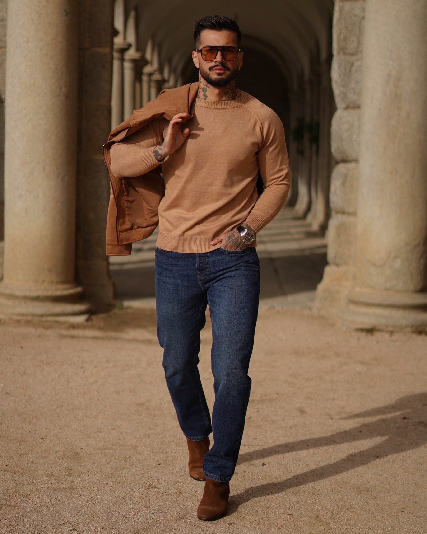 The men's plain crewneck pullover sweater effortlessly marries fashion and warmth, creating a timeless and durable classic for men that will stand the test of time. With its slim fit, ribbed cuffs and hem, and solid color, it's a timeless piece that combines both style and functionality.