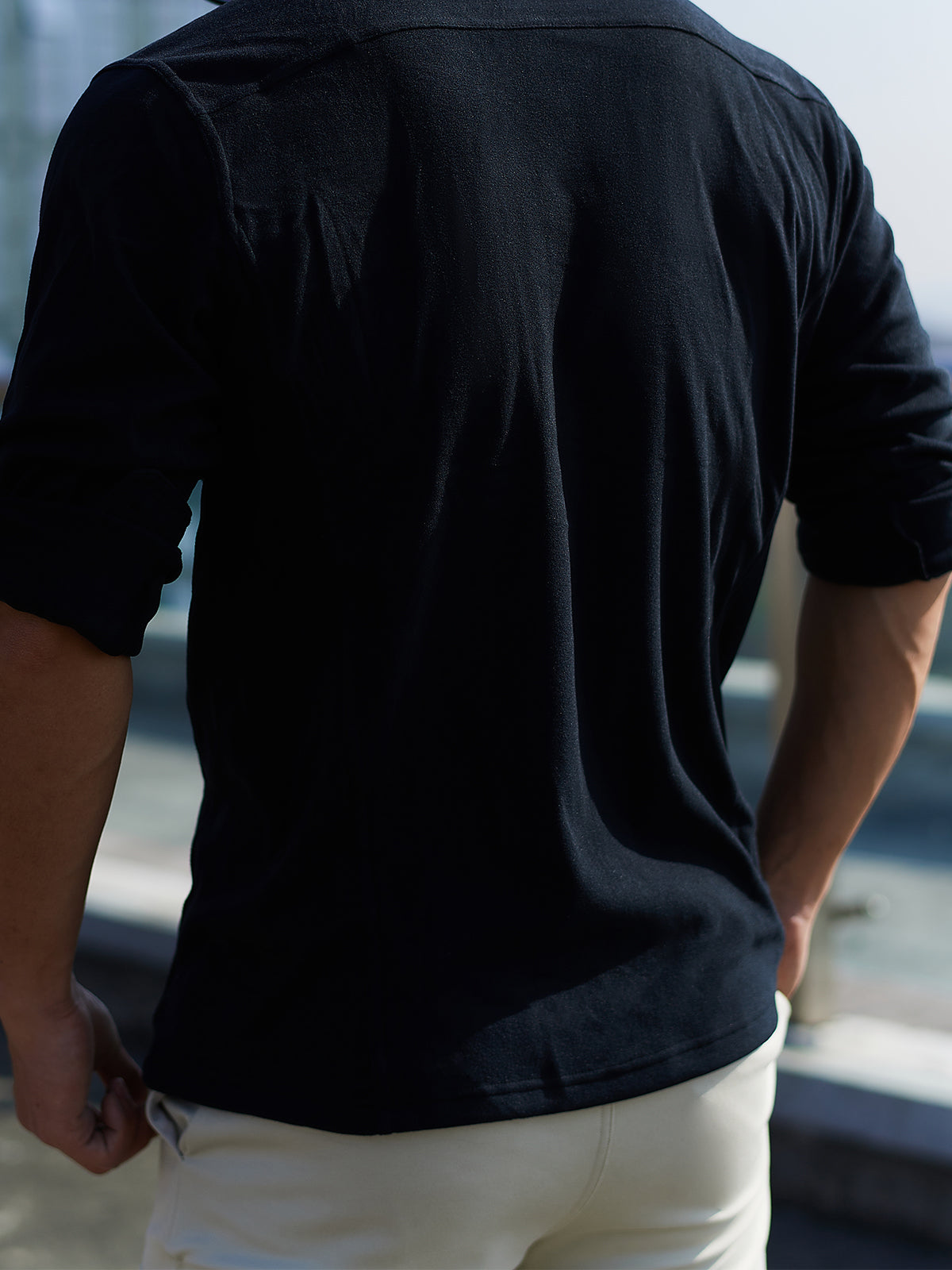 Rib Knit Curved Hem Long Sleeve Henley Shirt