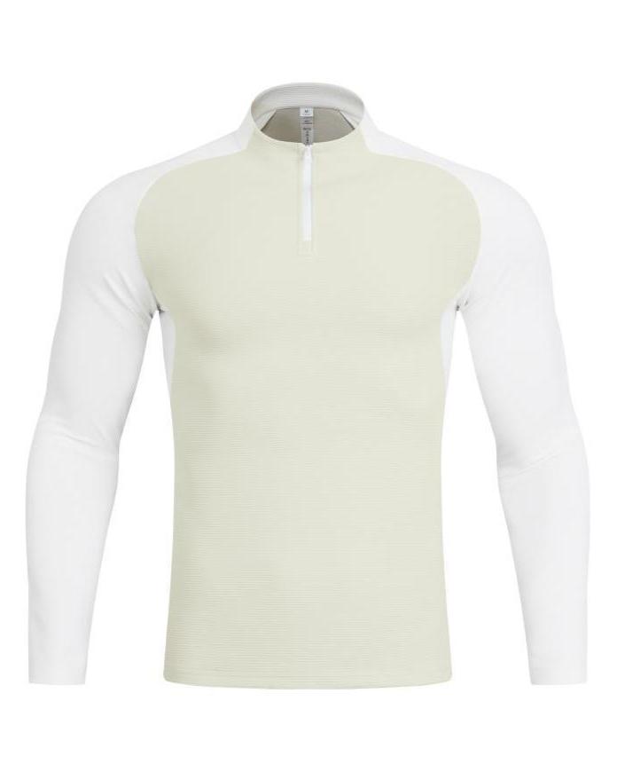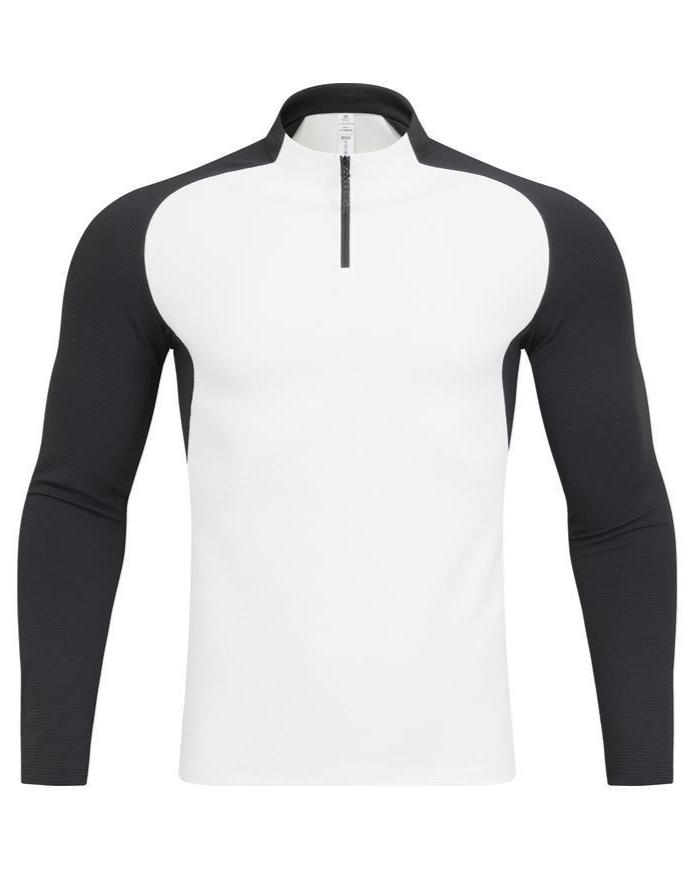 The ultimate athleisure wear comes in quarter zip now! Two-tone raglan design and advanced compression fit technology supports muscles during exercise. Four-way stretch fabric allows complete range of motion. Moisture-wicking material keeps you dry during intense workouts. Form-fitting design provides muscular support and definition.