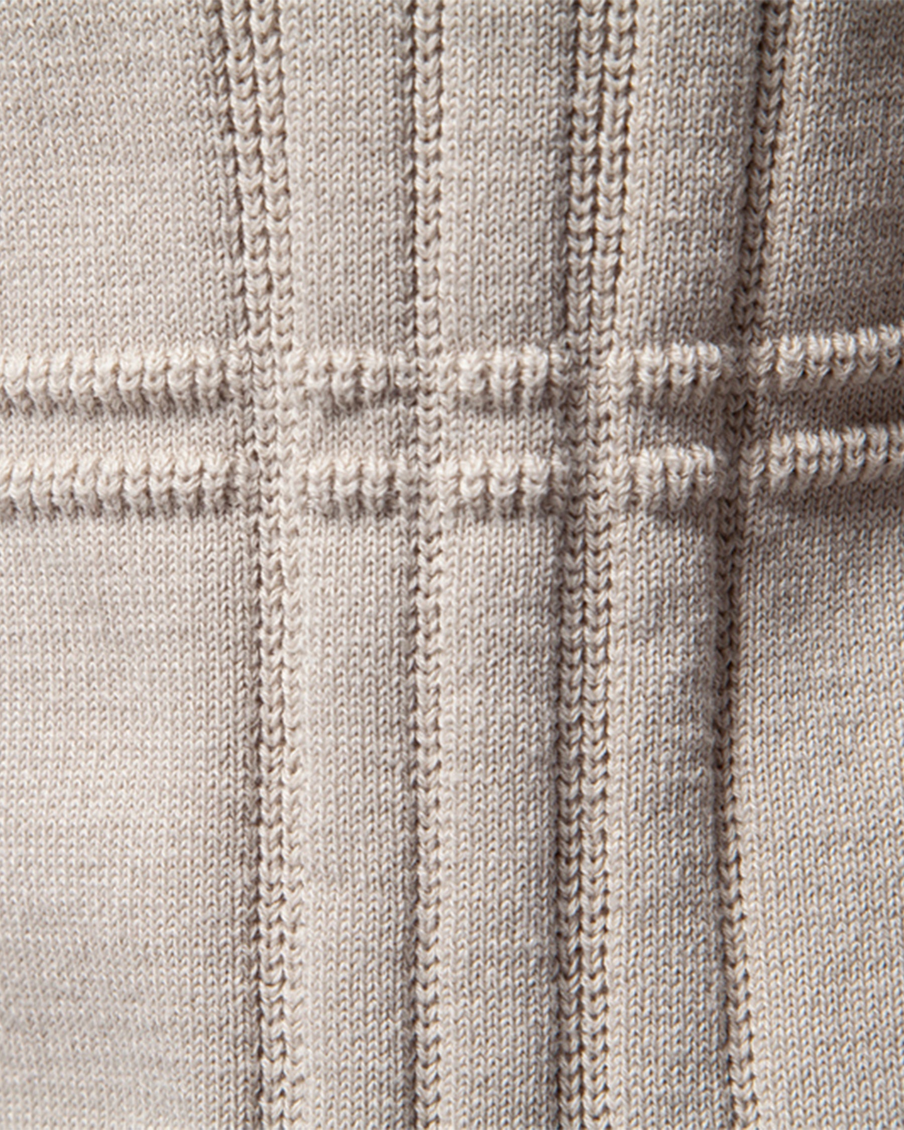Este suéter destaca por su innovador diseño de trama cruzada, que le da un toque contemporáneo a una silueta clásica. Su intrincado estampado le aporta profundidad y carácter, mientras que sus líneas limpias mantienen una apariencia sofisticada. La atención al detalle se evidencia en la calidad del tejido y la precisión del patrón. Diseñado para durar, este suéter promete ser un básico en tu armario durante años.