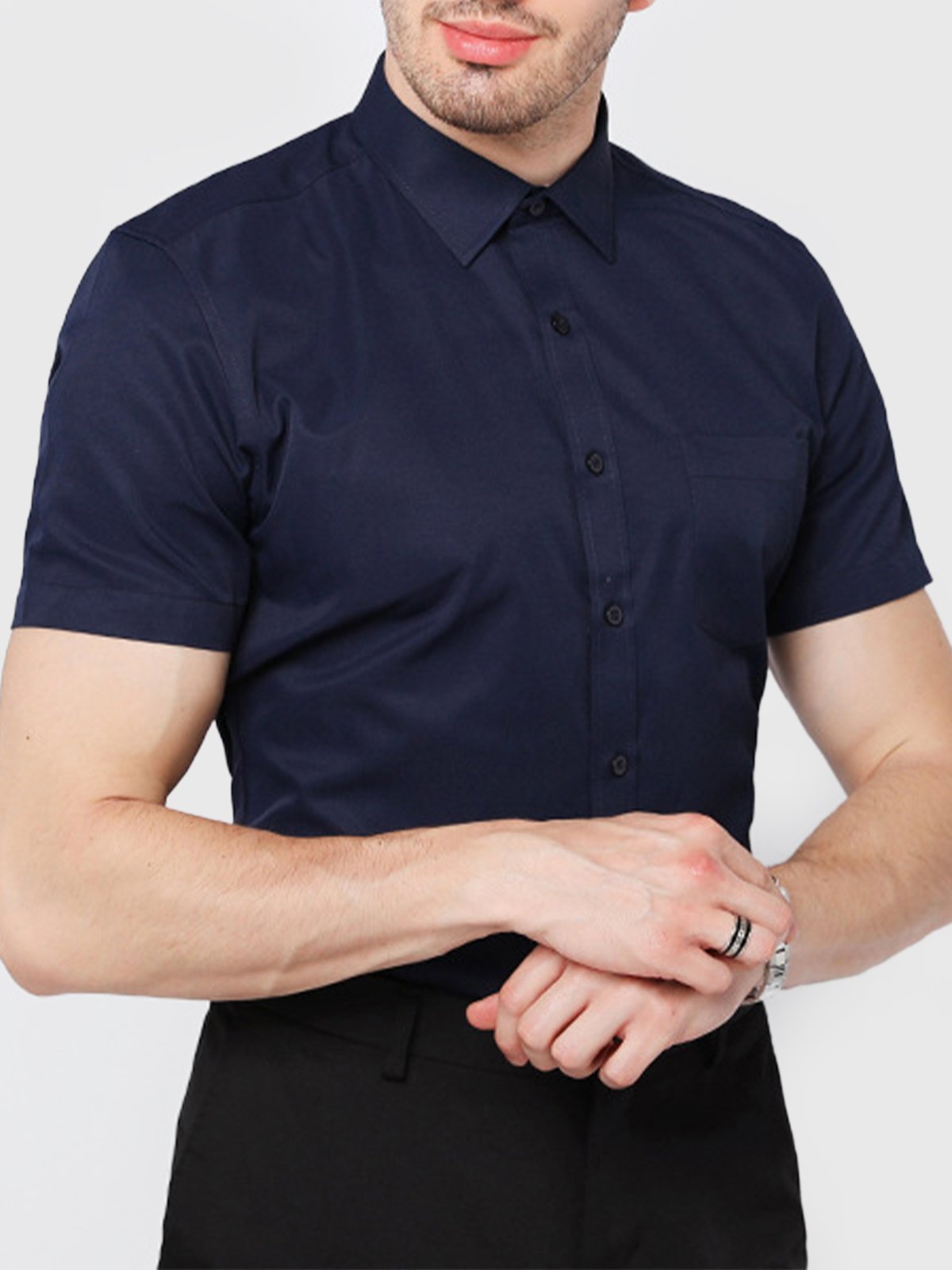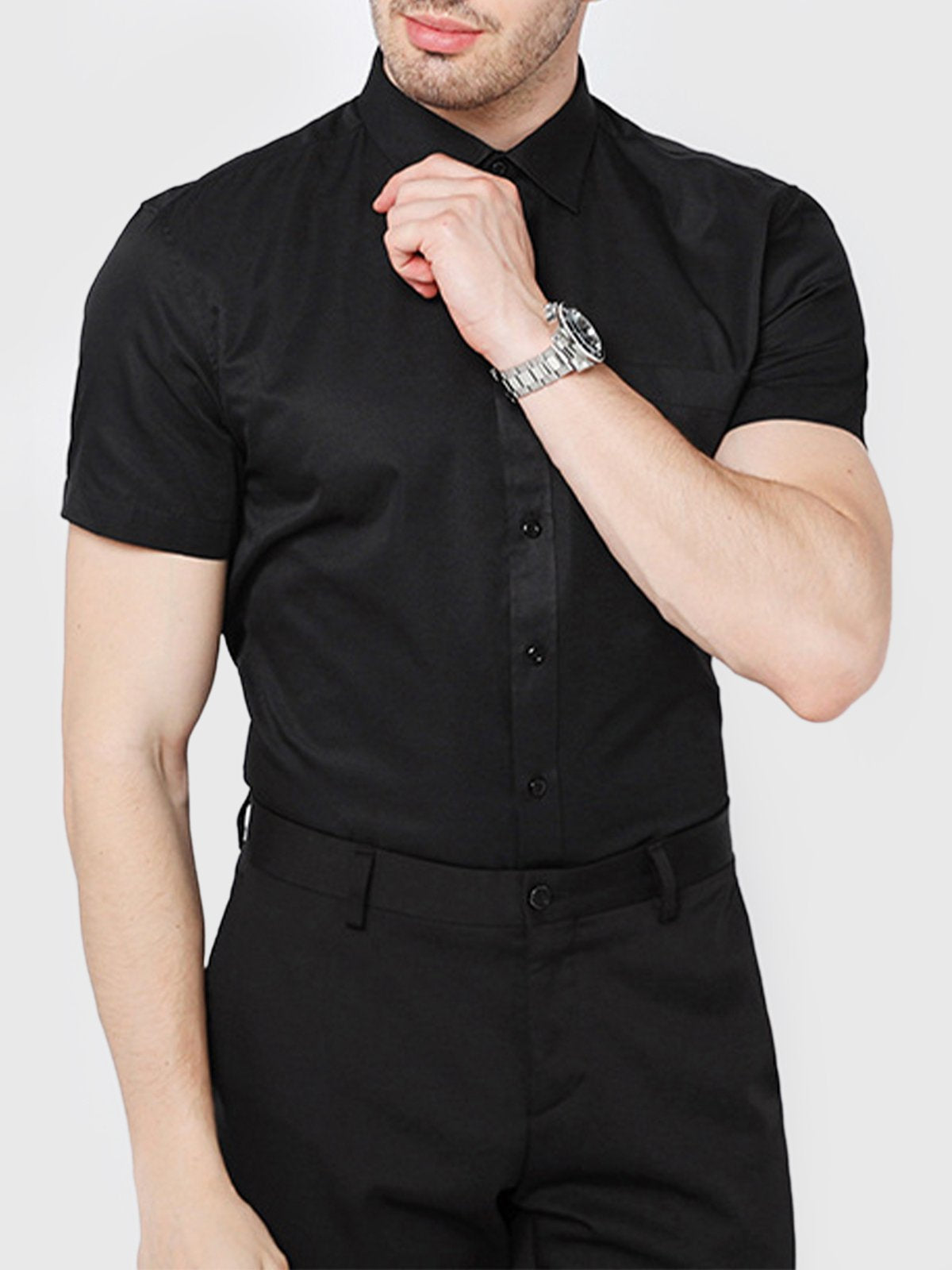 Easy-Care Solid Short Sleeve Shirt - Ahaselected