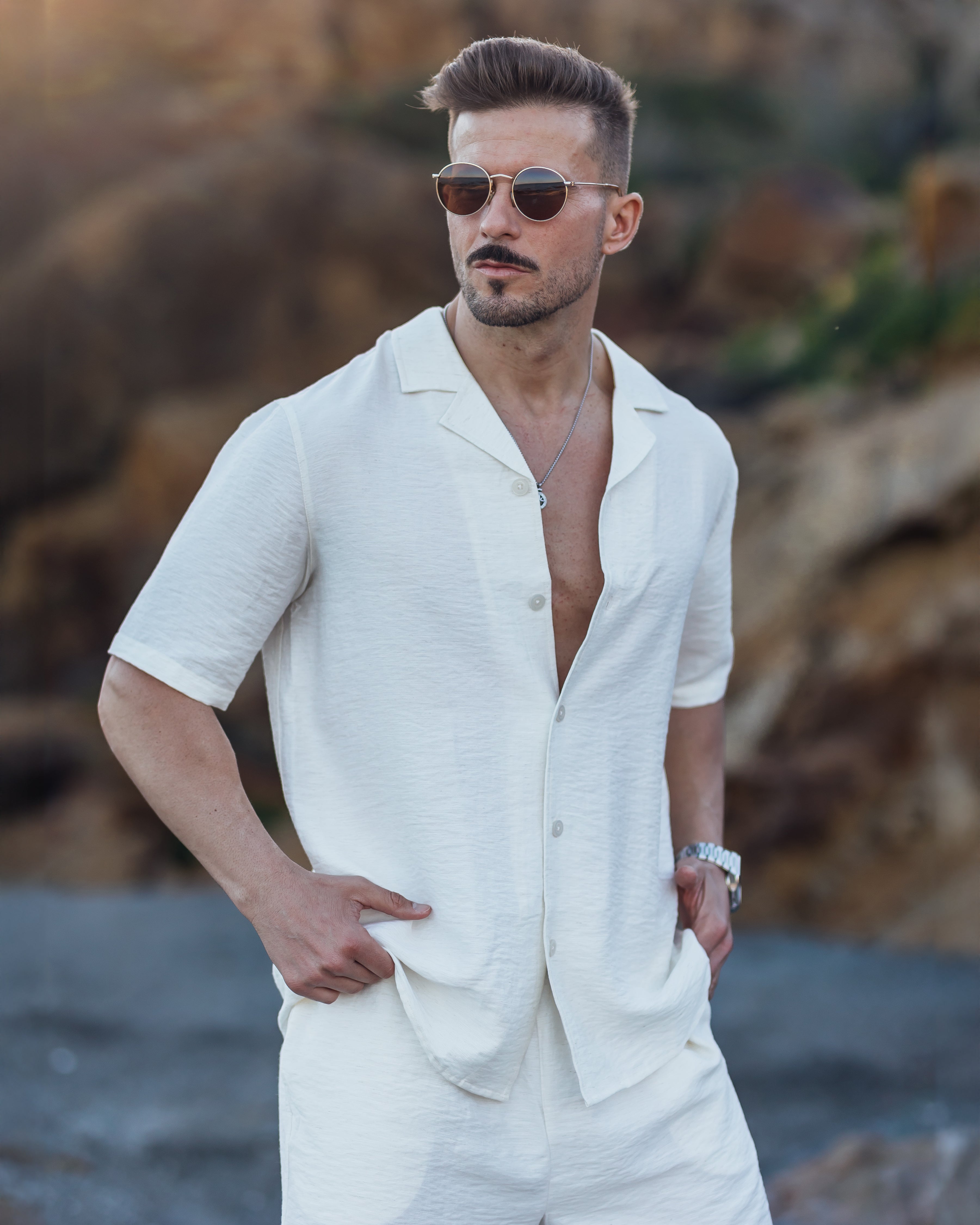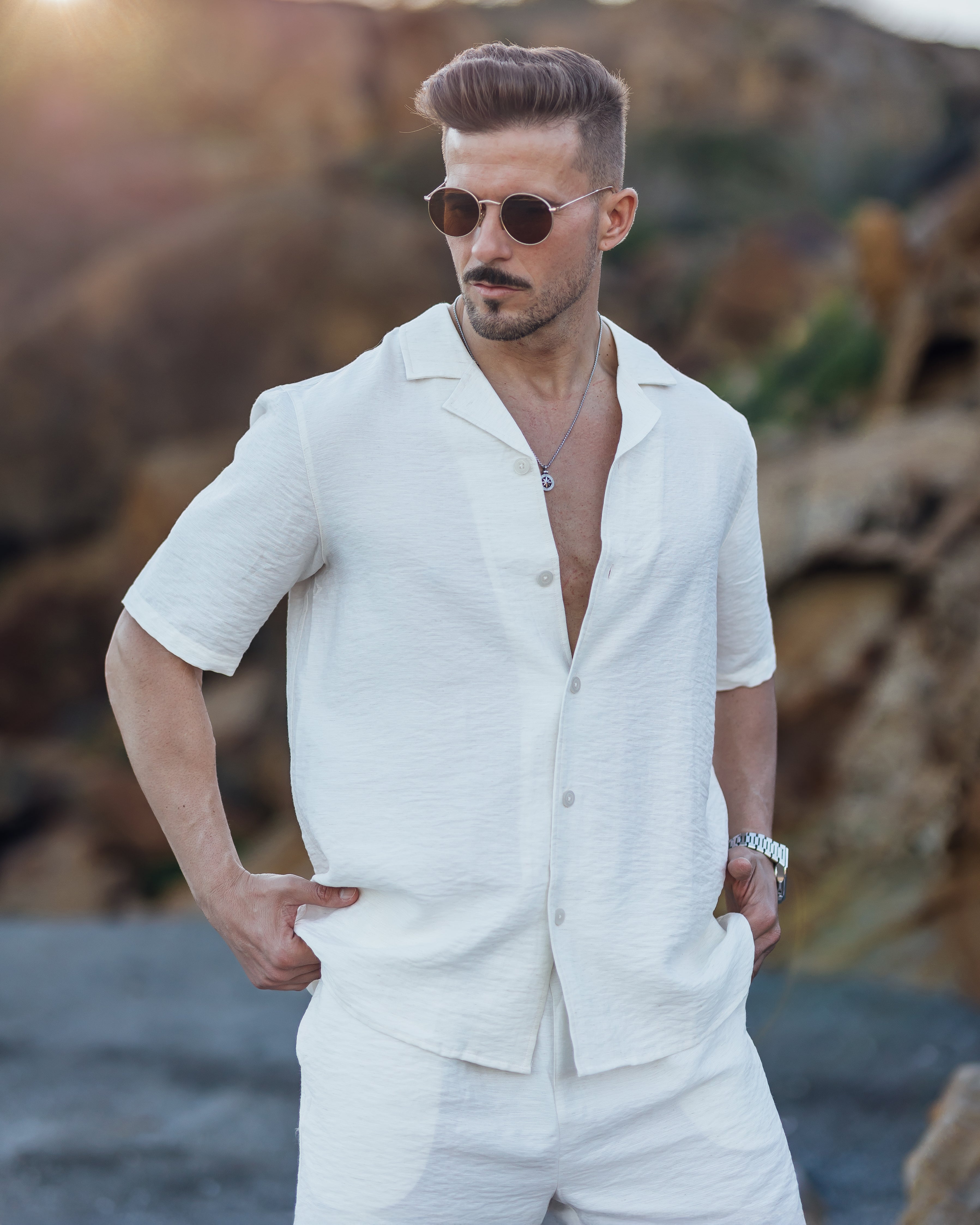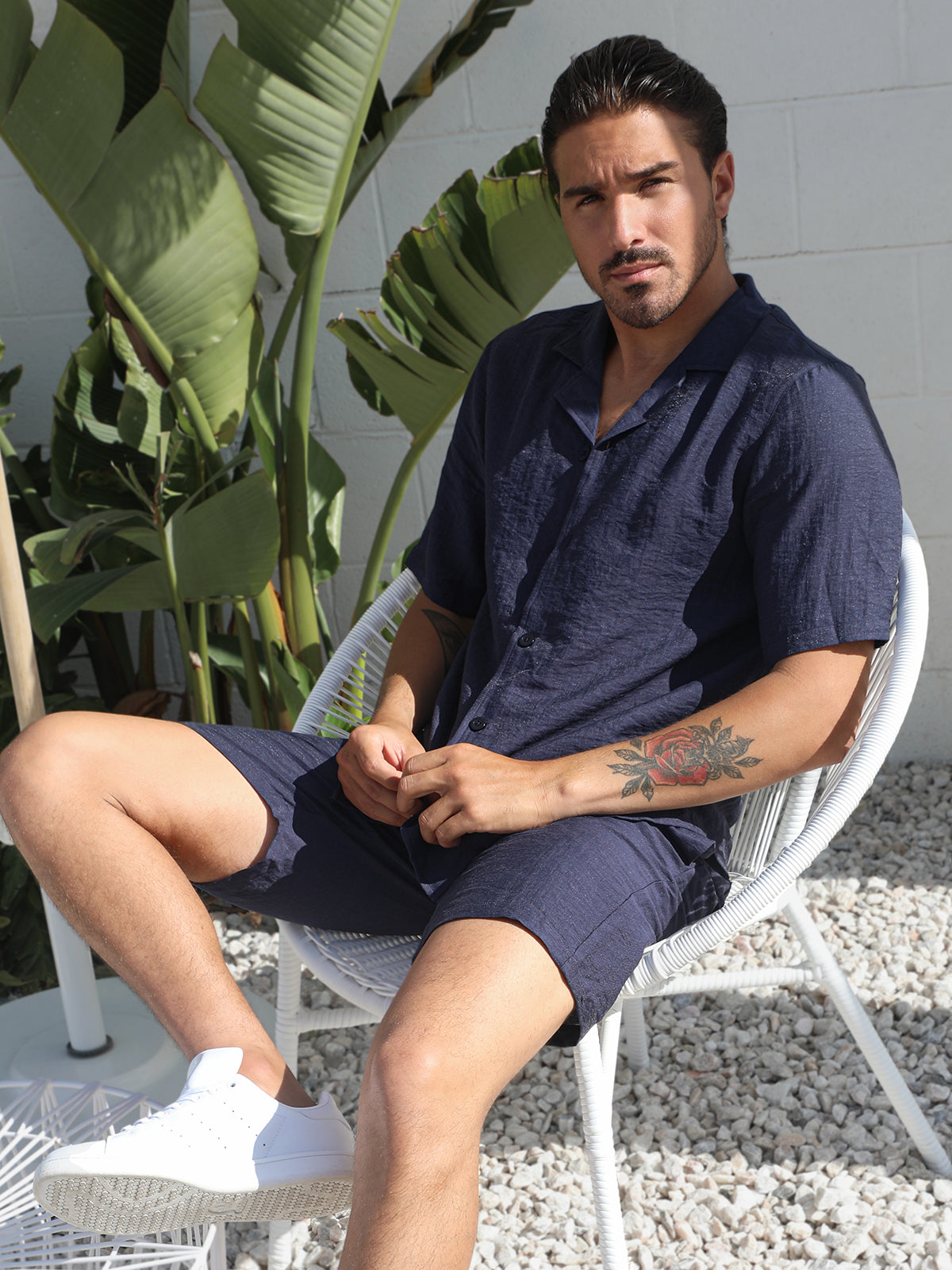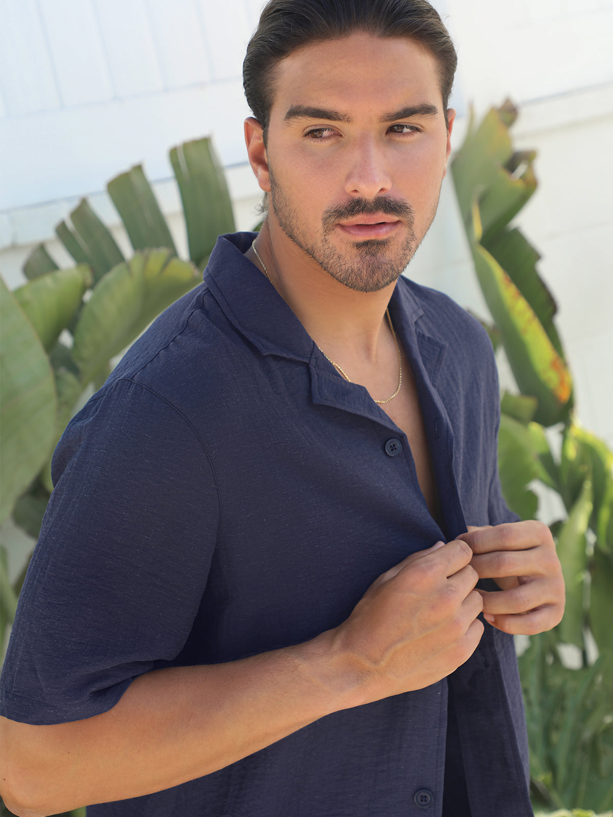 Experience the ultimate comfort of the Havana Shirt, meticulously crafted from a luxurious blend of linen fabric. Its on-trend design is specifically tailored to accentuate the muscular physique, instantly capturing attention. With a Cuban collar style that adds a touch of sophistication and reinforced seams for long-lasting durability, this shirt guarantees an effortlessly captivating and eye-catching appearance.
