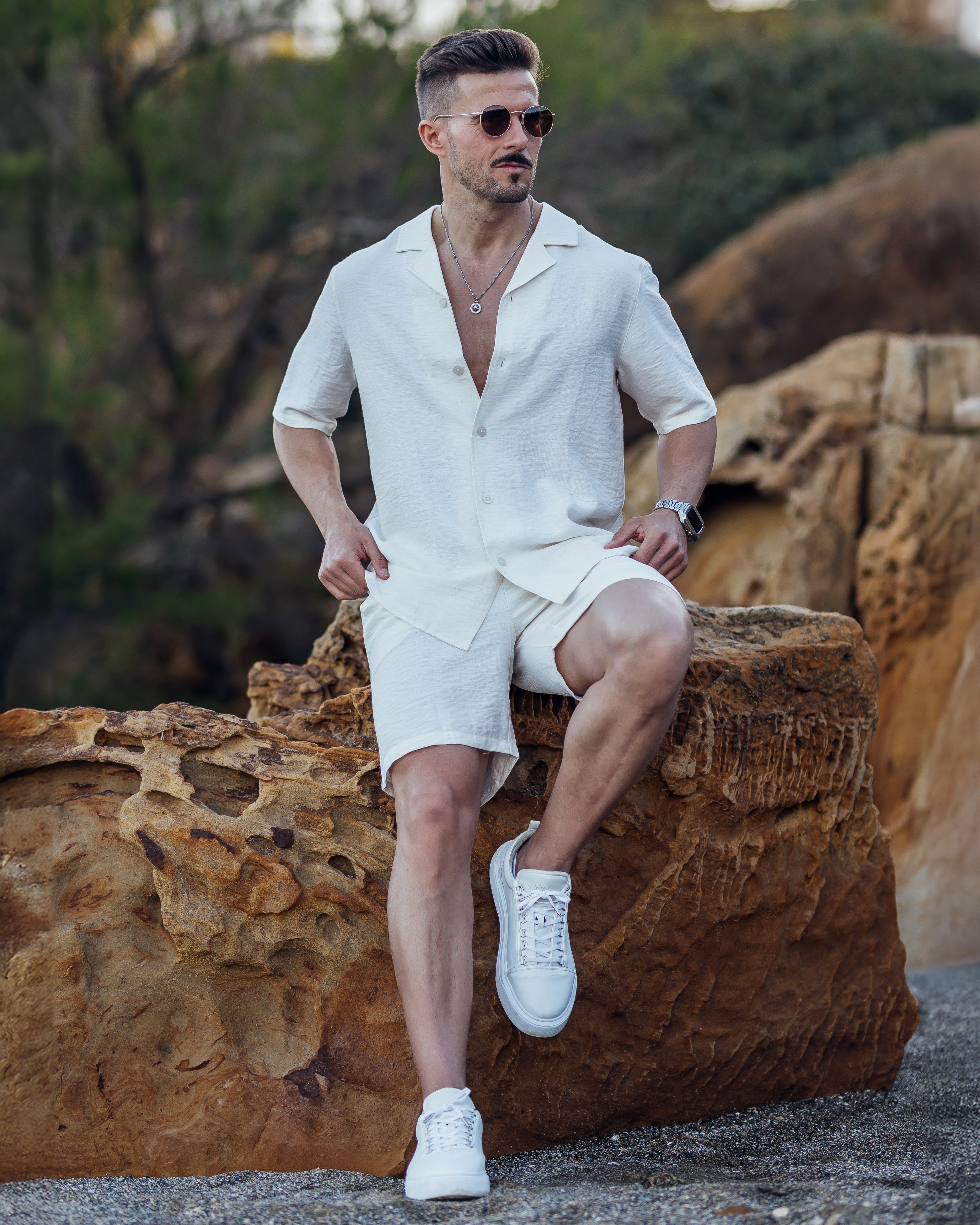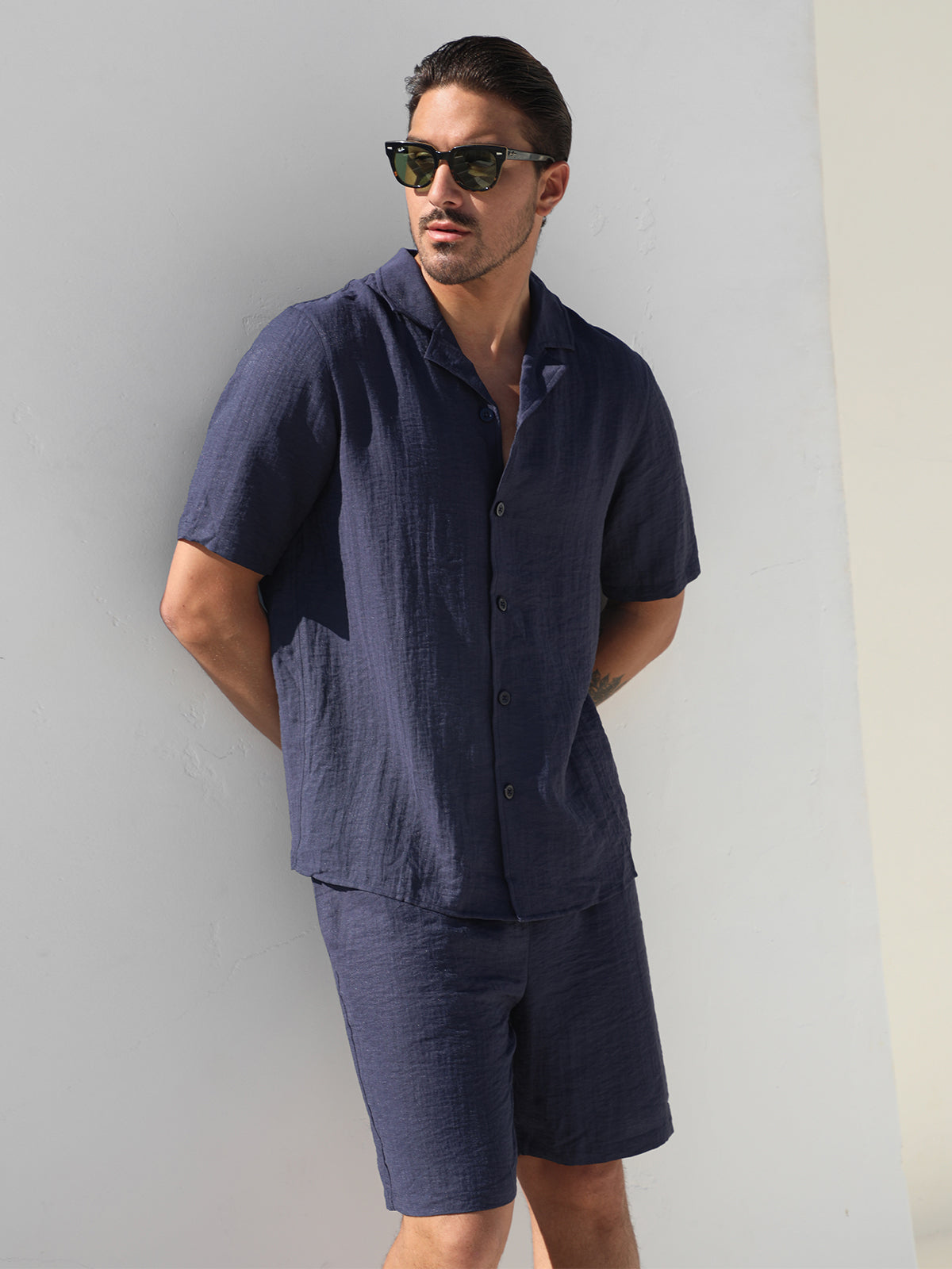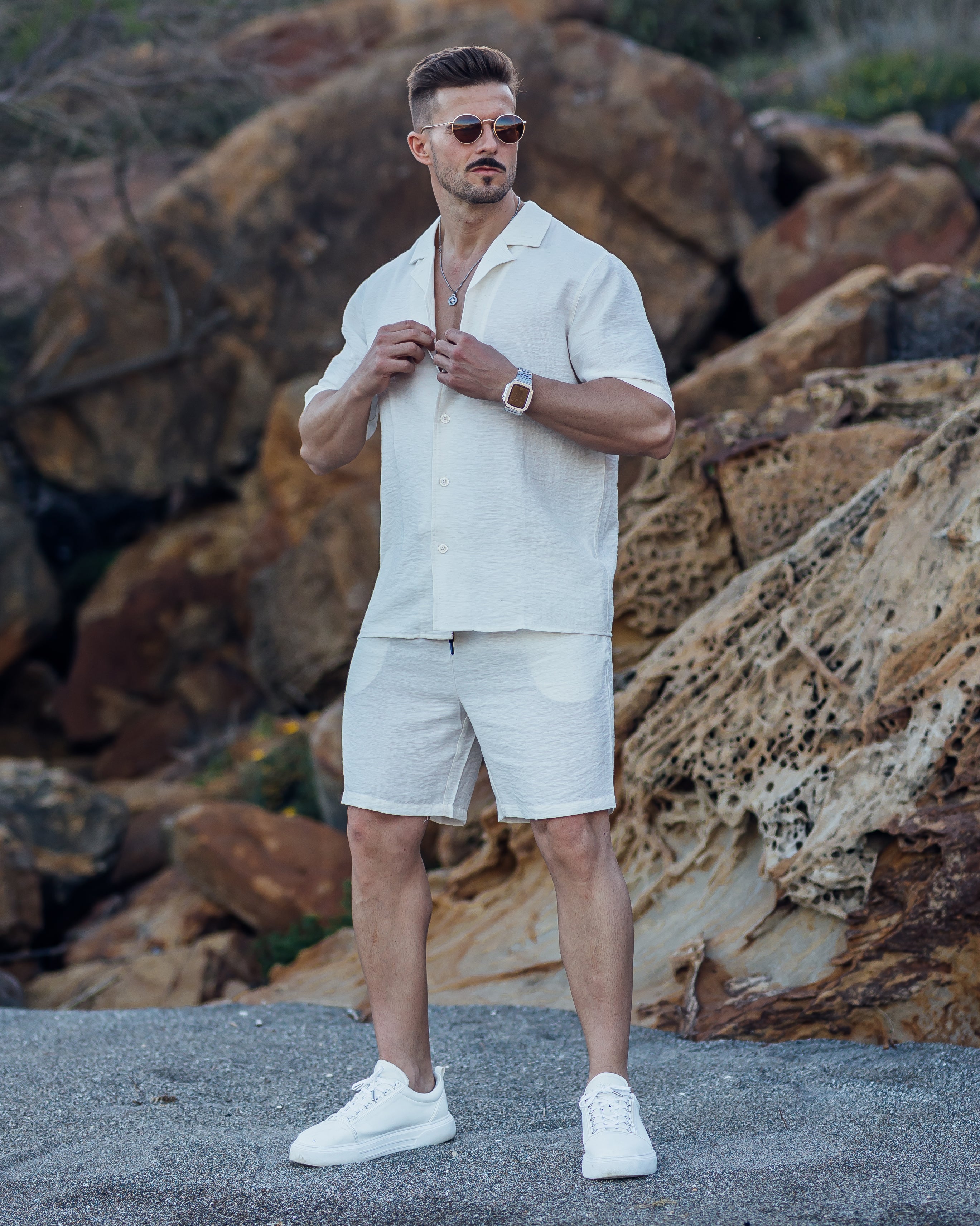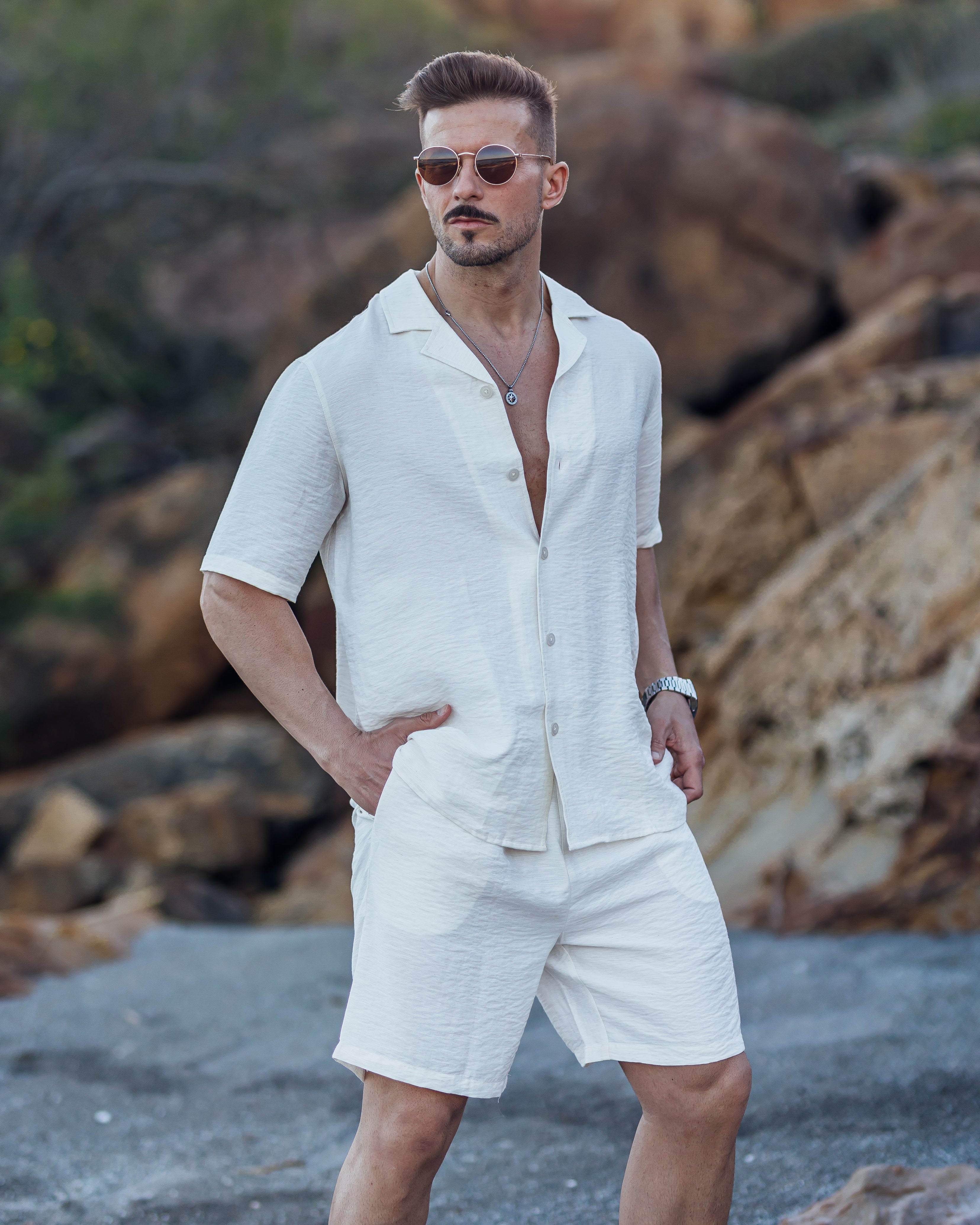 Experience the ultimate comfort of the Havana Shirt, meticulously crafted from a luxurious blend of linen fabric. Its on-trend design is specifically tailored to accentuate the muscular physique, instantly capturing attention. With a Cuban collar style that adds a touch of sophistication and reinforced seams for long-lasting durability, this shirt guarantees an effortlessly captivating and eye-catching appearance.