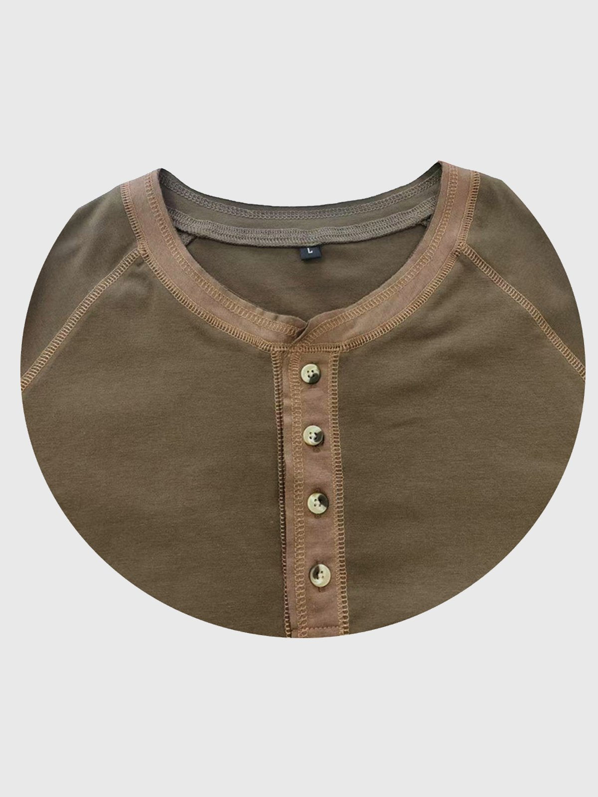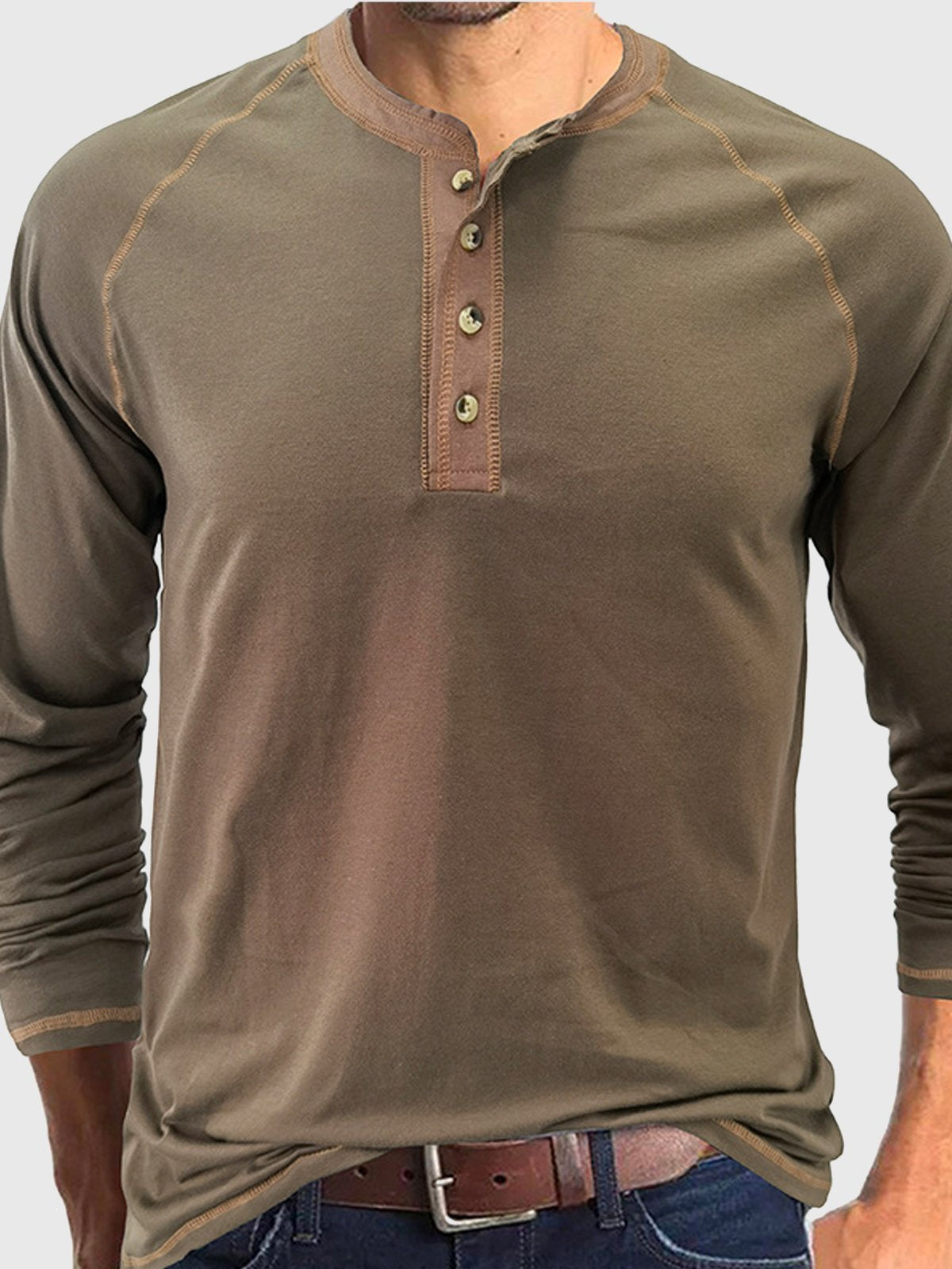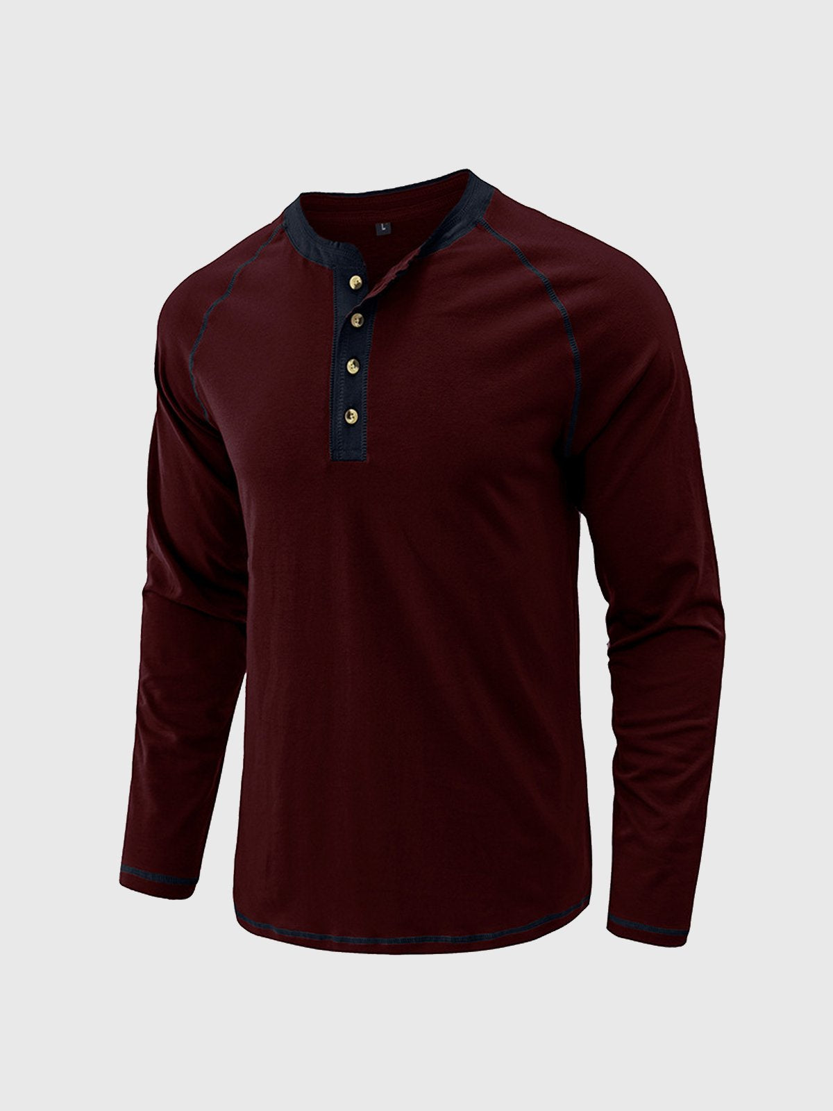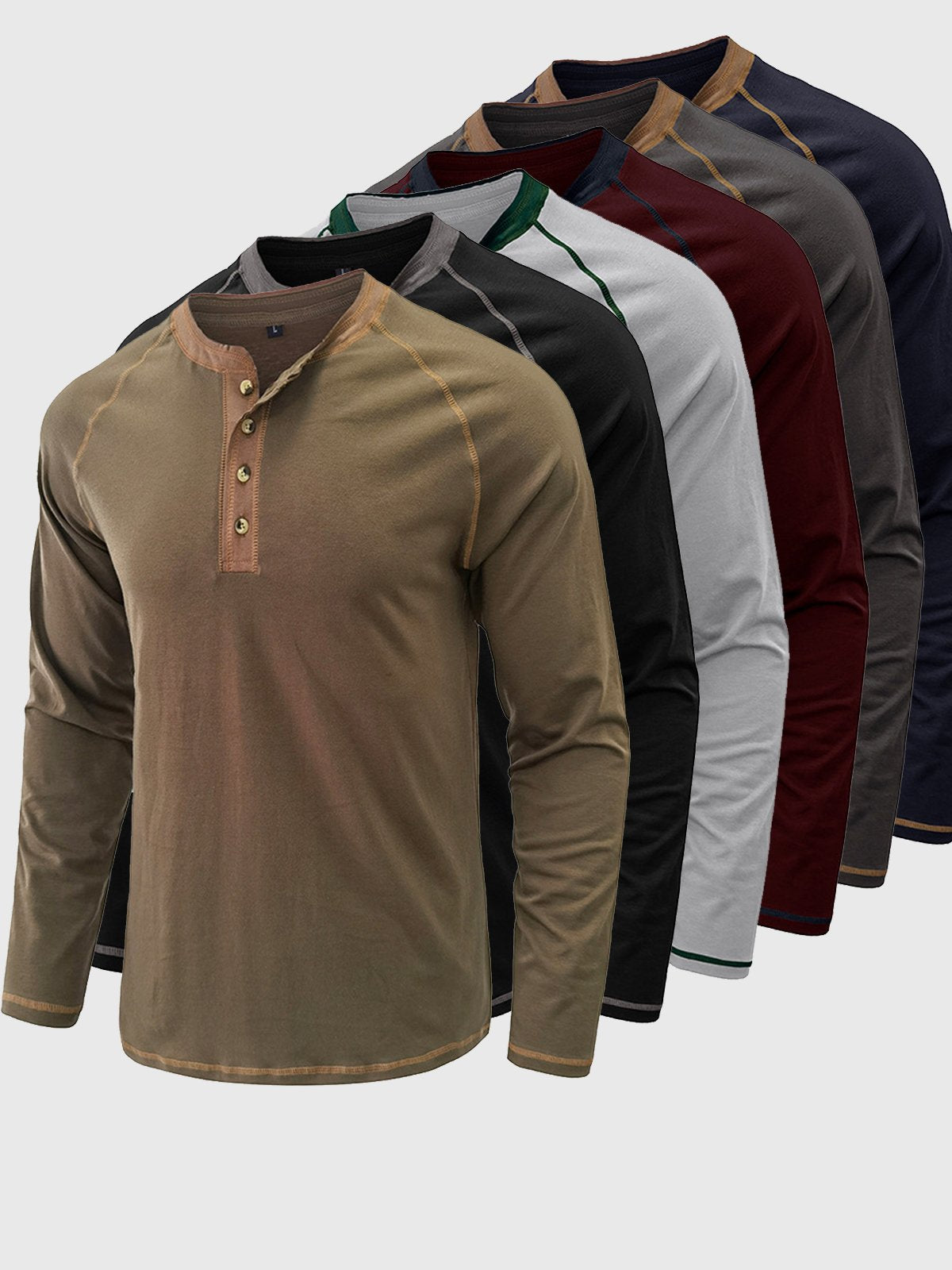 M's Raglan Long Sleeve Henley Shirt - Ahaselected