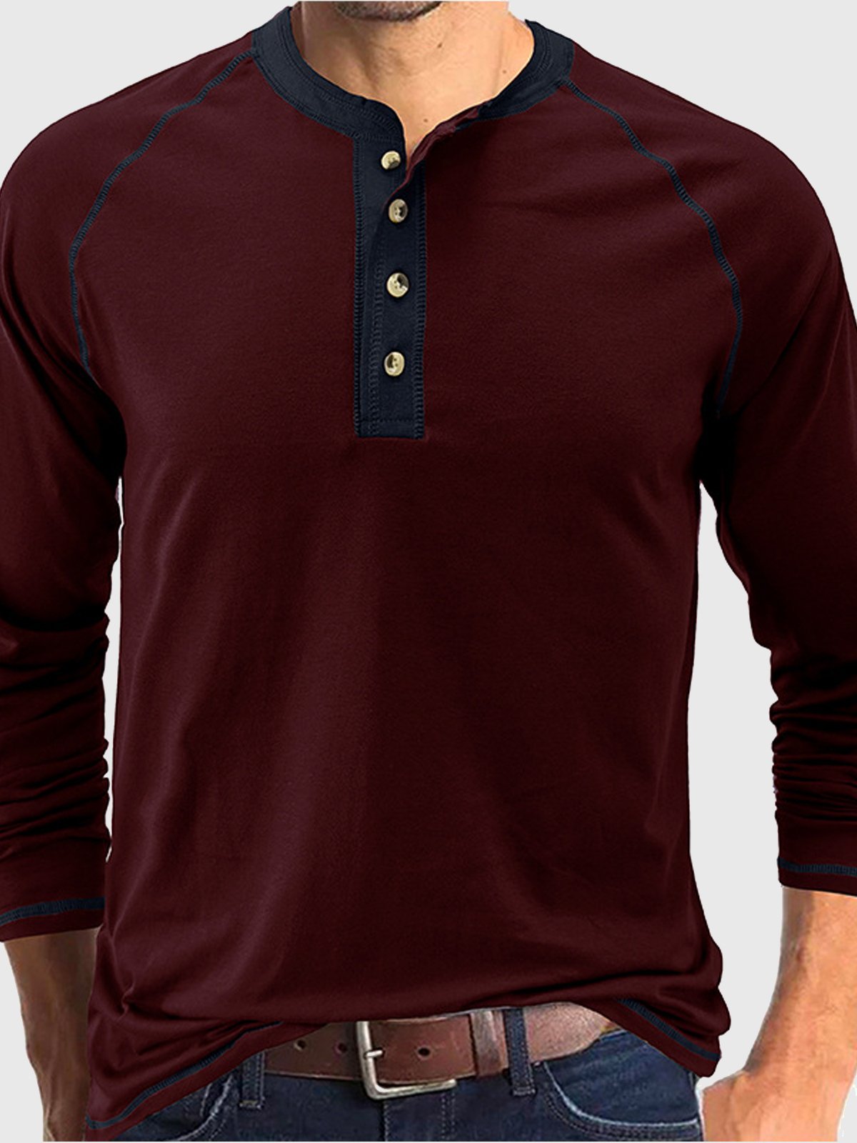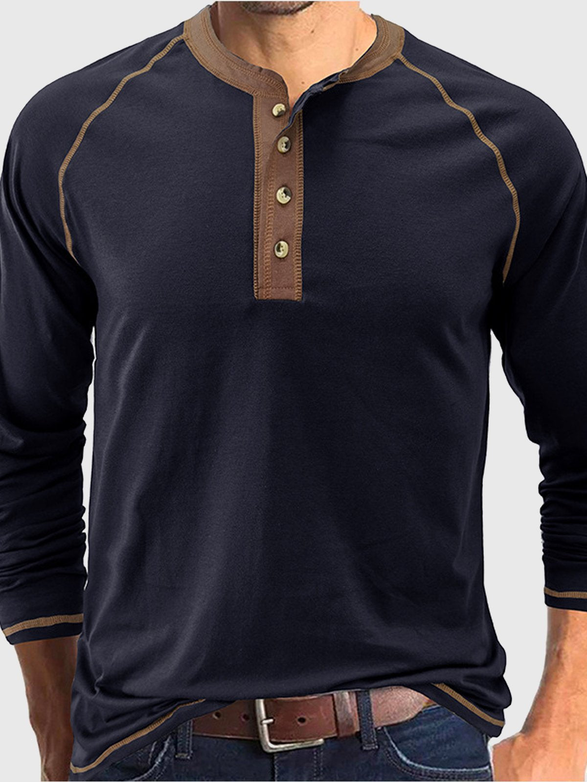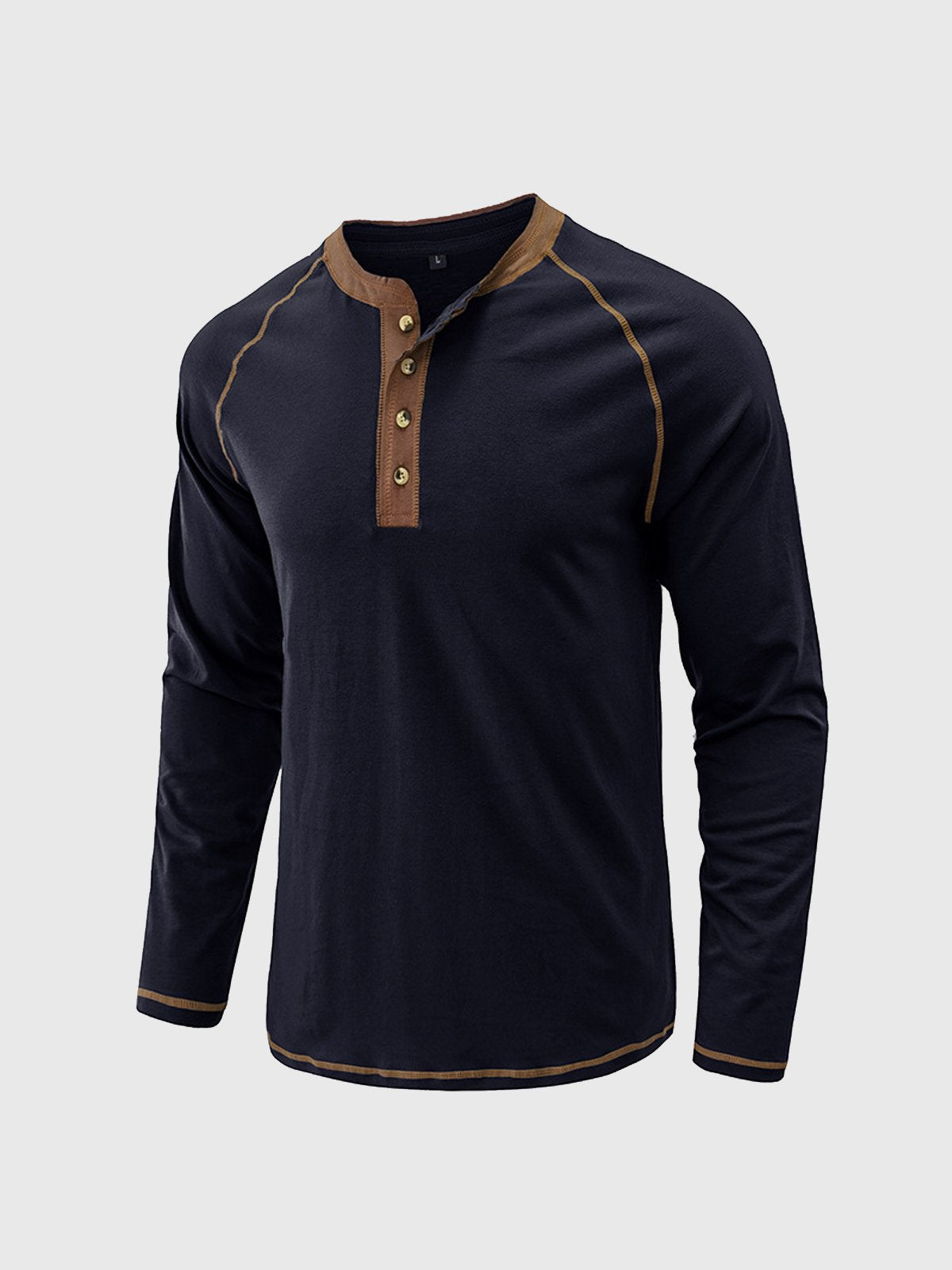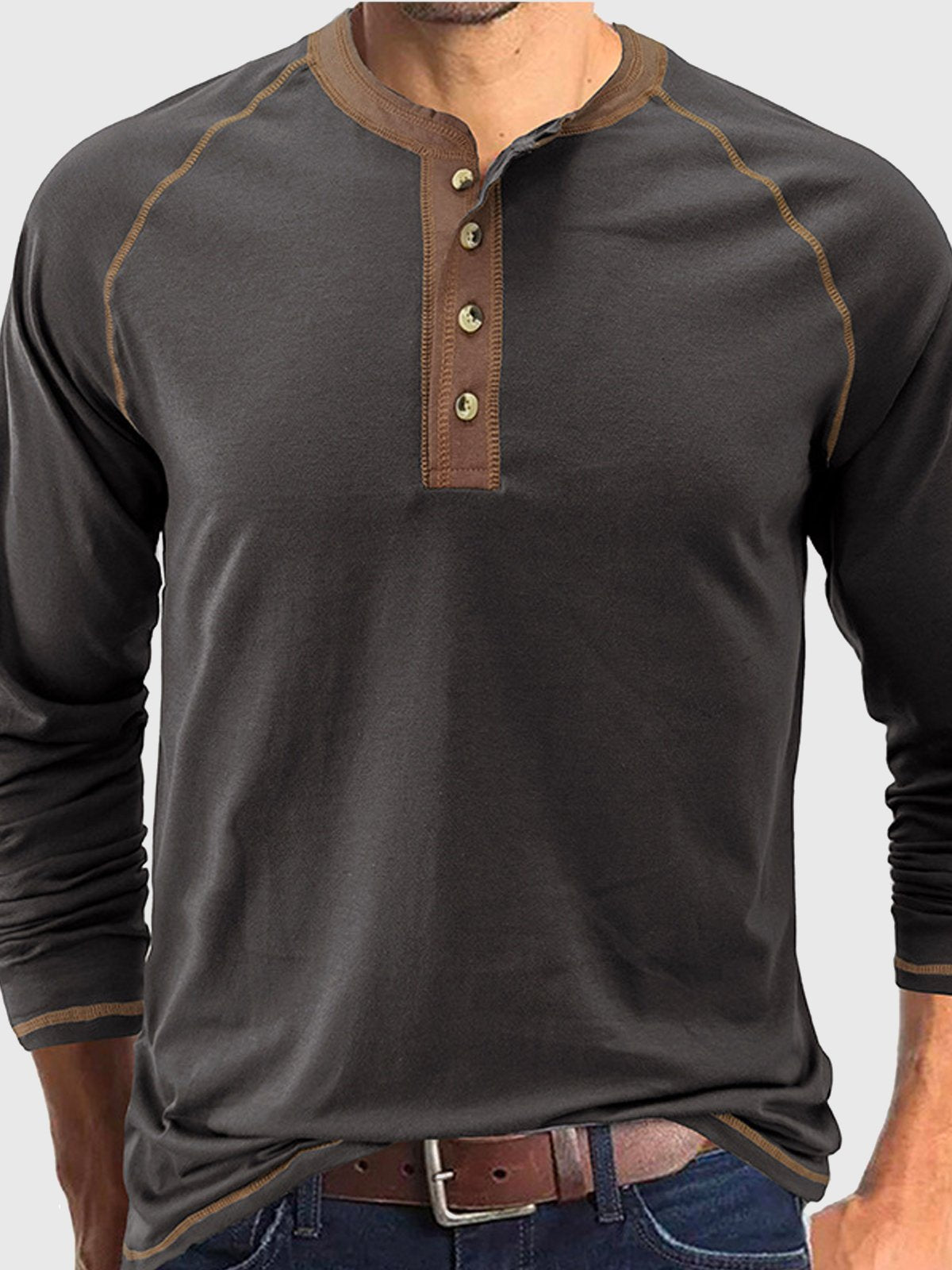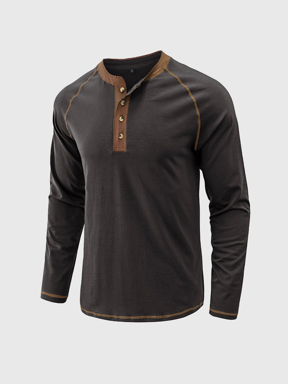 M's Raglan Long Sleeve Henley Shirt - Ahaselected