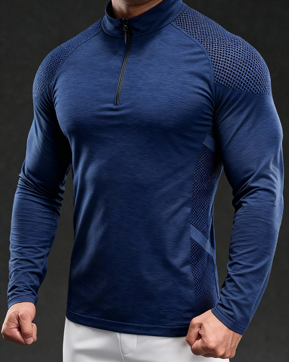 Slim Fit Long Sleeve Half-Zip Training Shirt with Textured Pattern