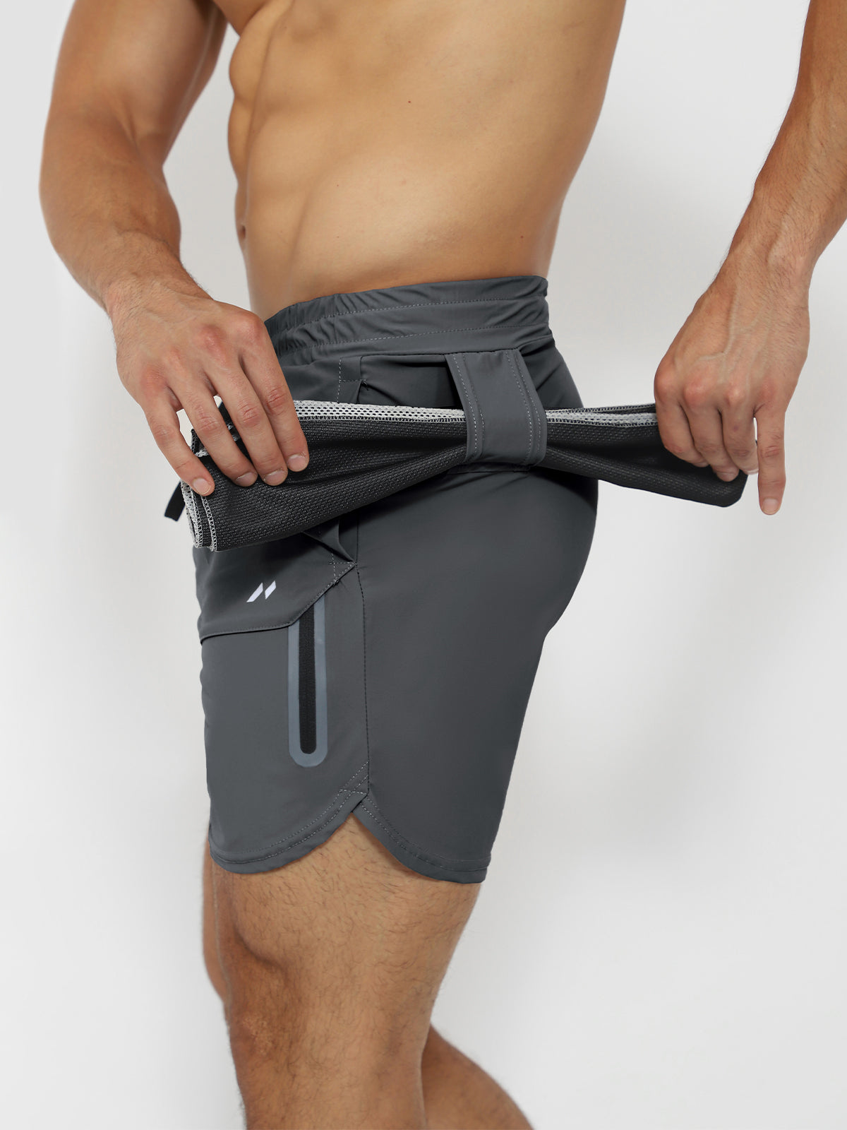 Make an athletic statement in these sleek 5 inch men's gym running workout shorts. The 4-way stretch fabric provides muscle support and accelerates recovery while the streamlined profile offers unrestricted mobility. Moisture-wicking technology keeps you cool and dry through intense training.