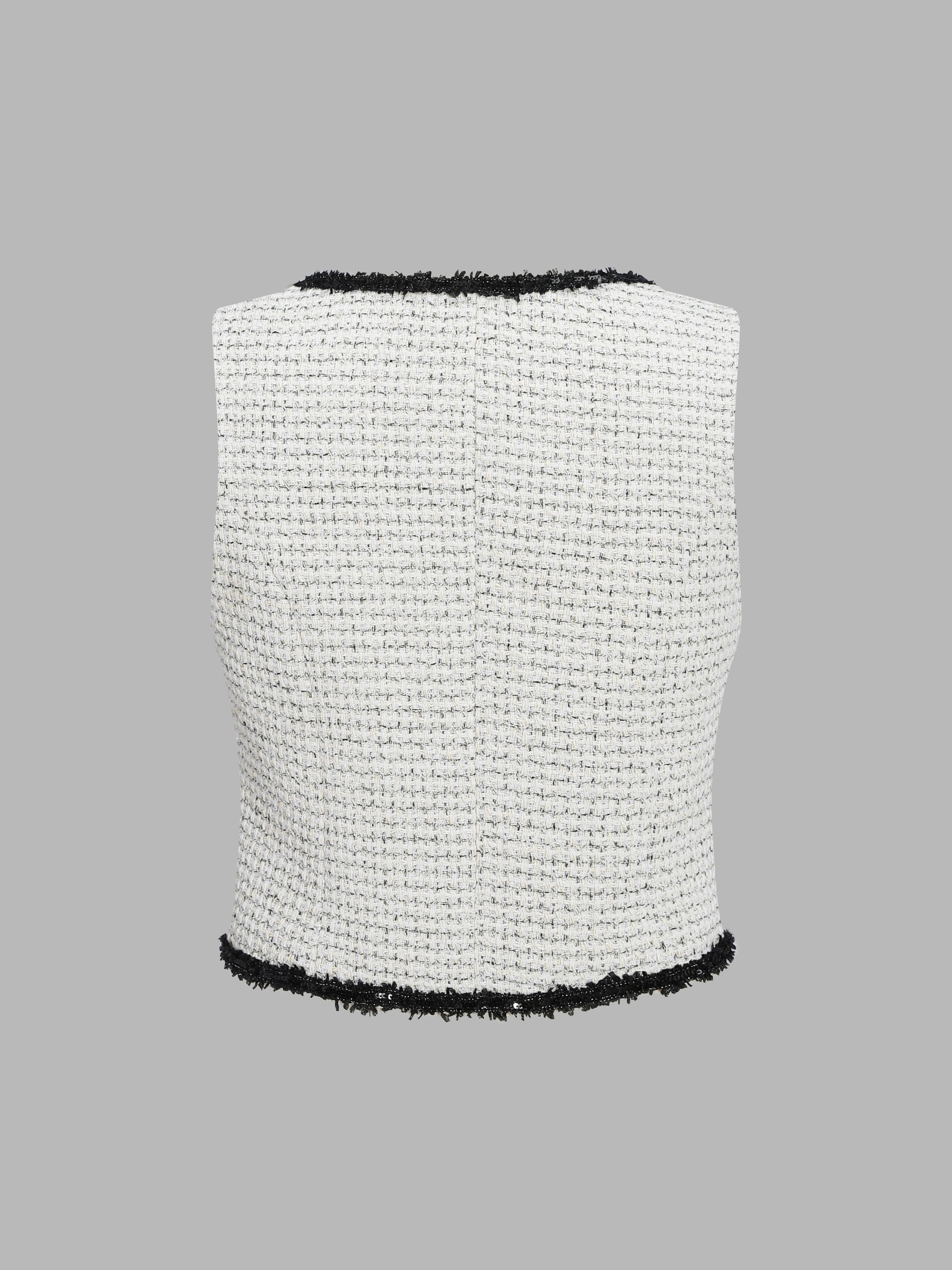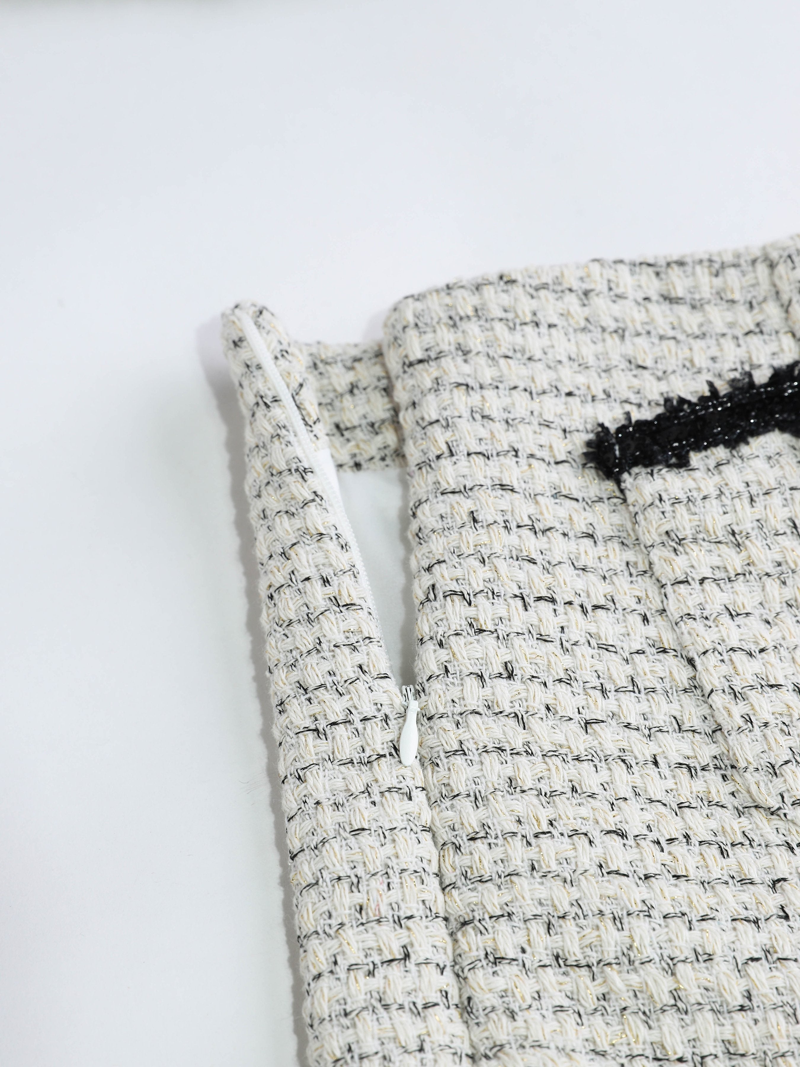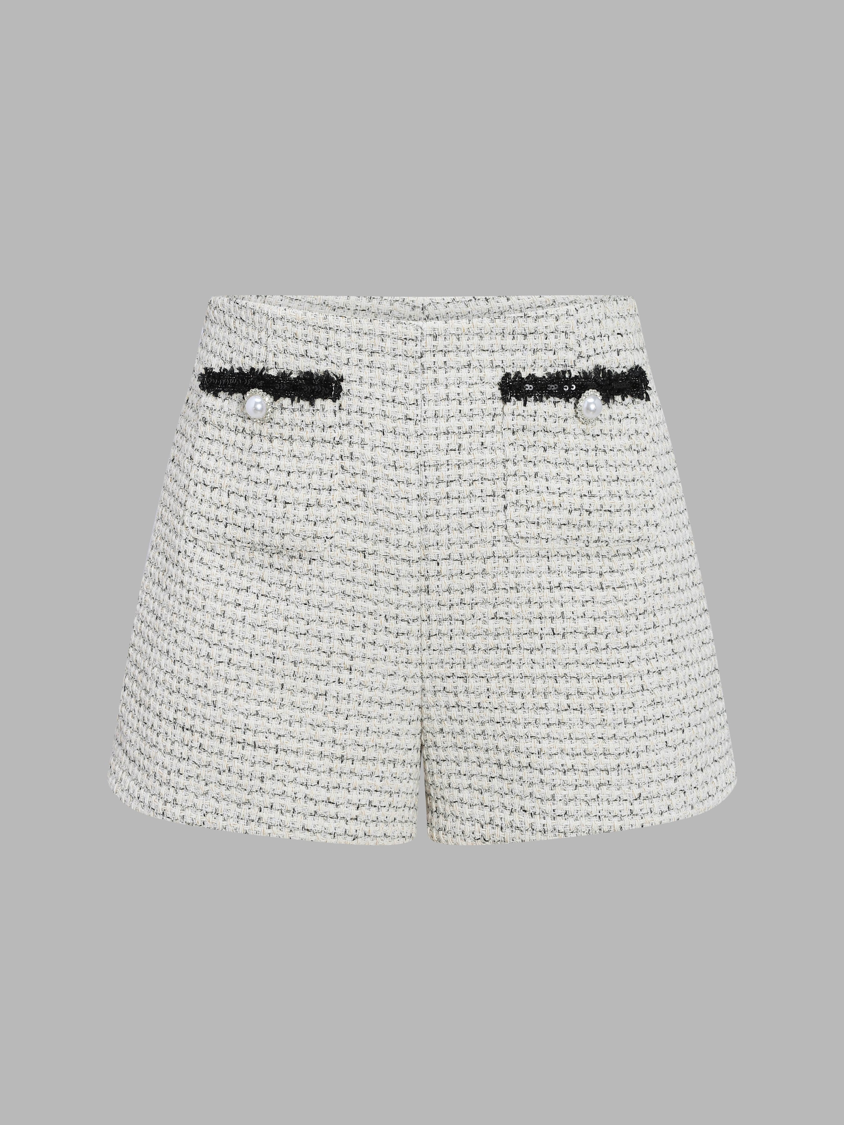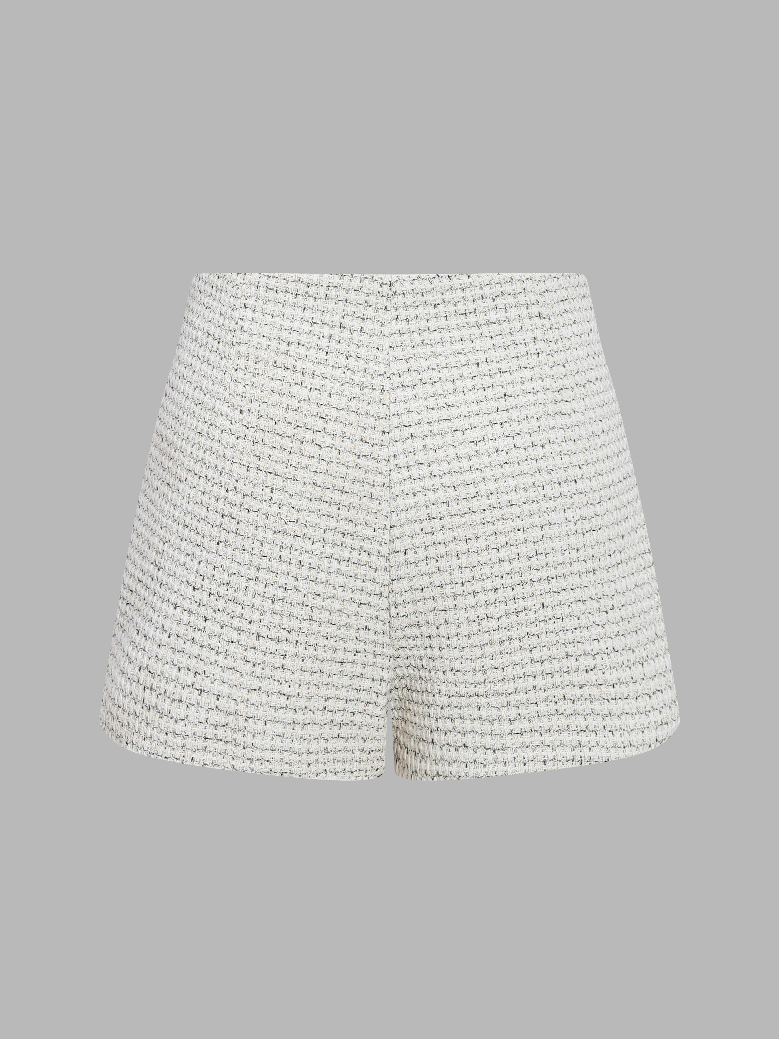 - The matching tweed shorts offer a tailored fit with concealed side zippers for a seamless silhouette.