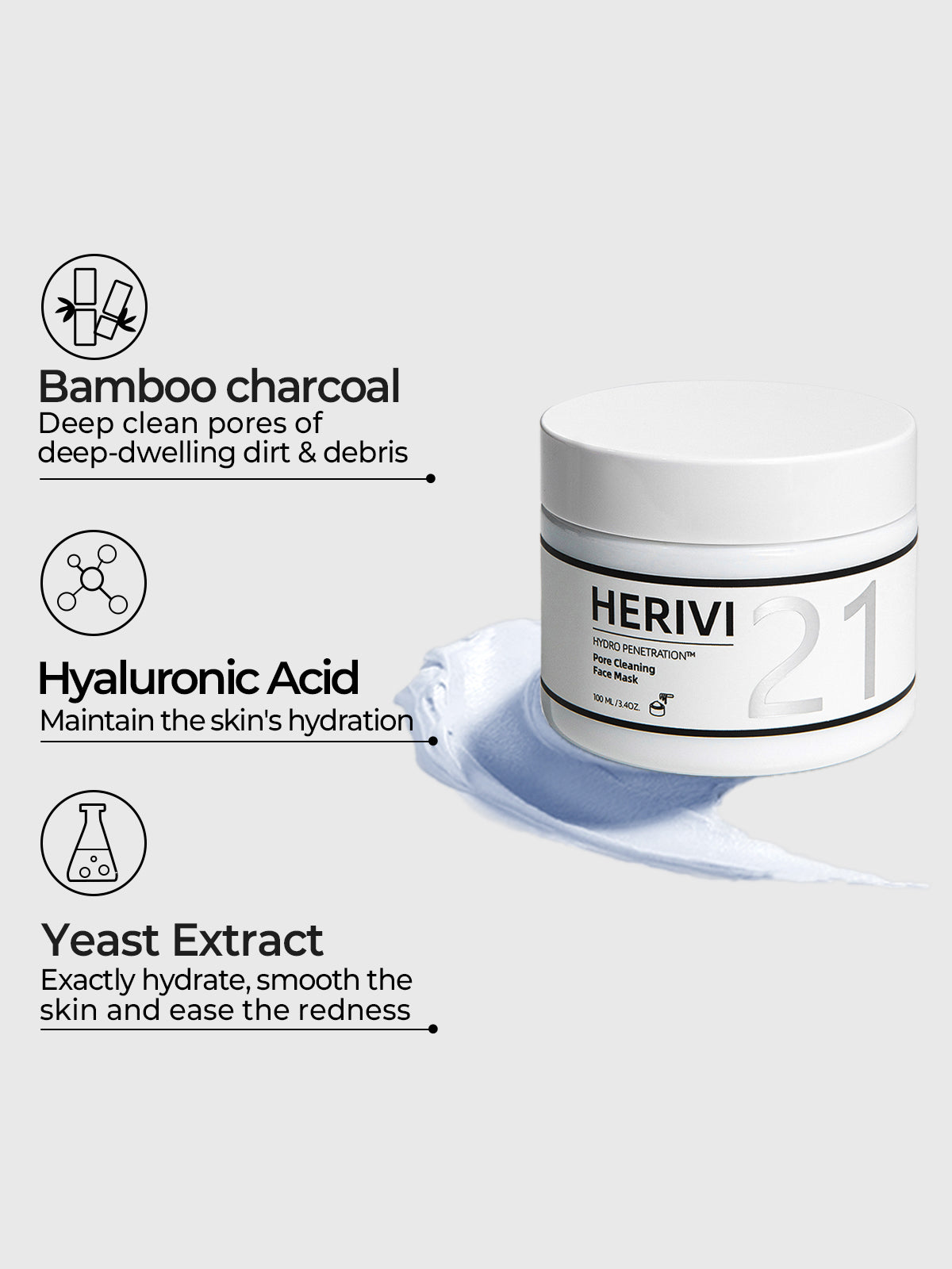 HERIVI Mascarilla de Arcilla Limpiadora Profunda de Poros 100 ml / 3.4 oz