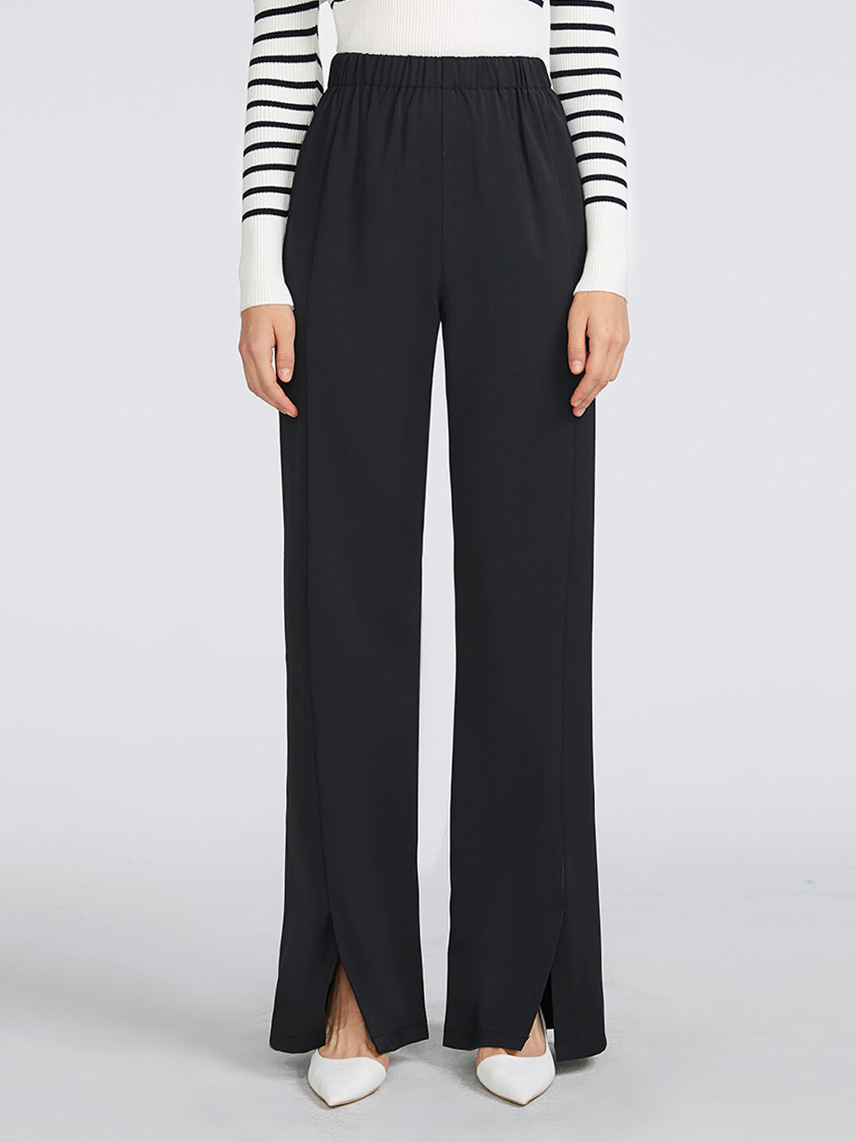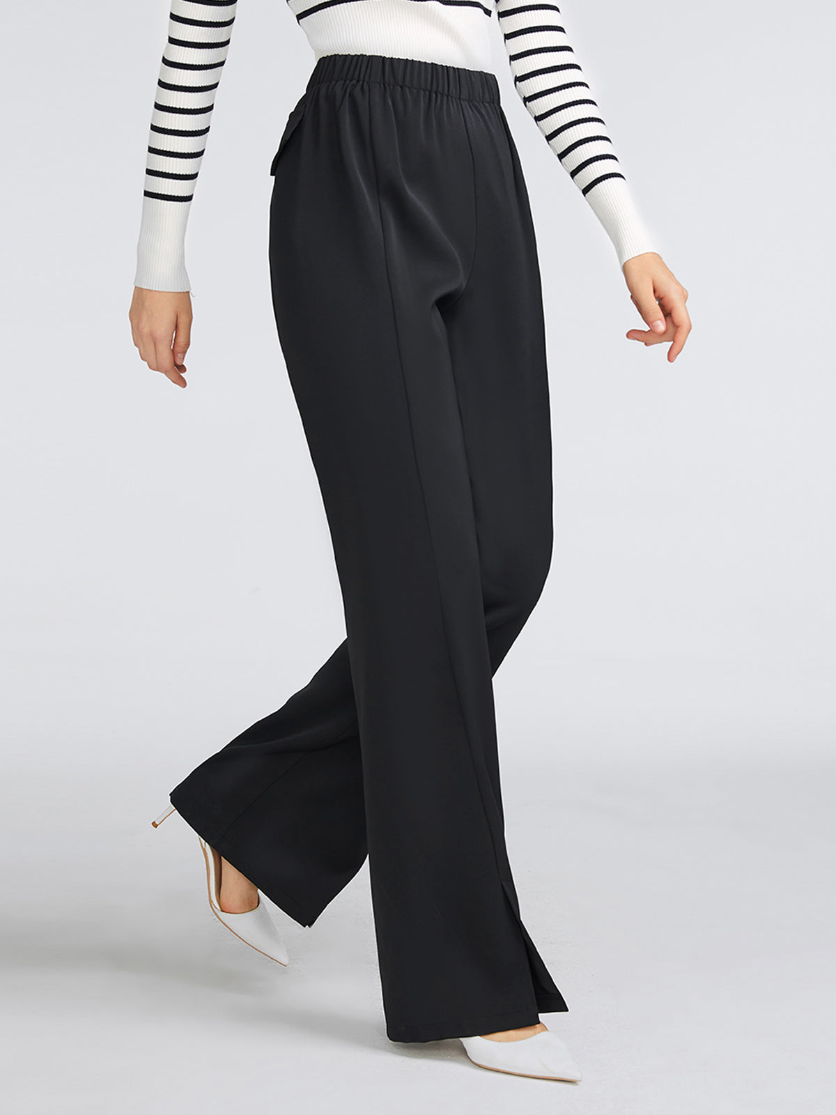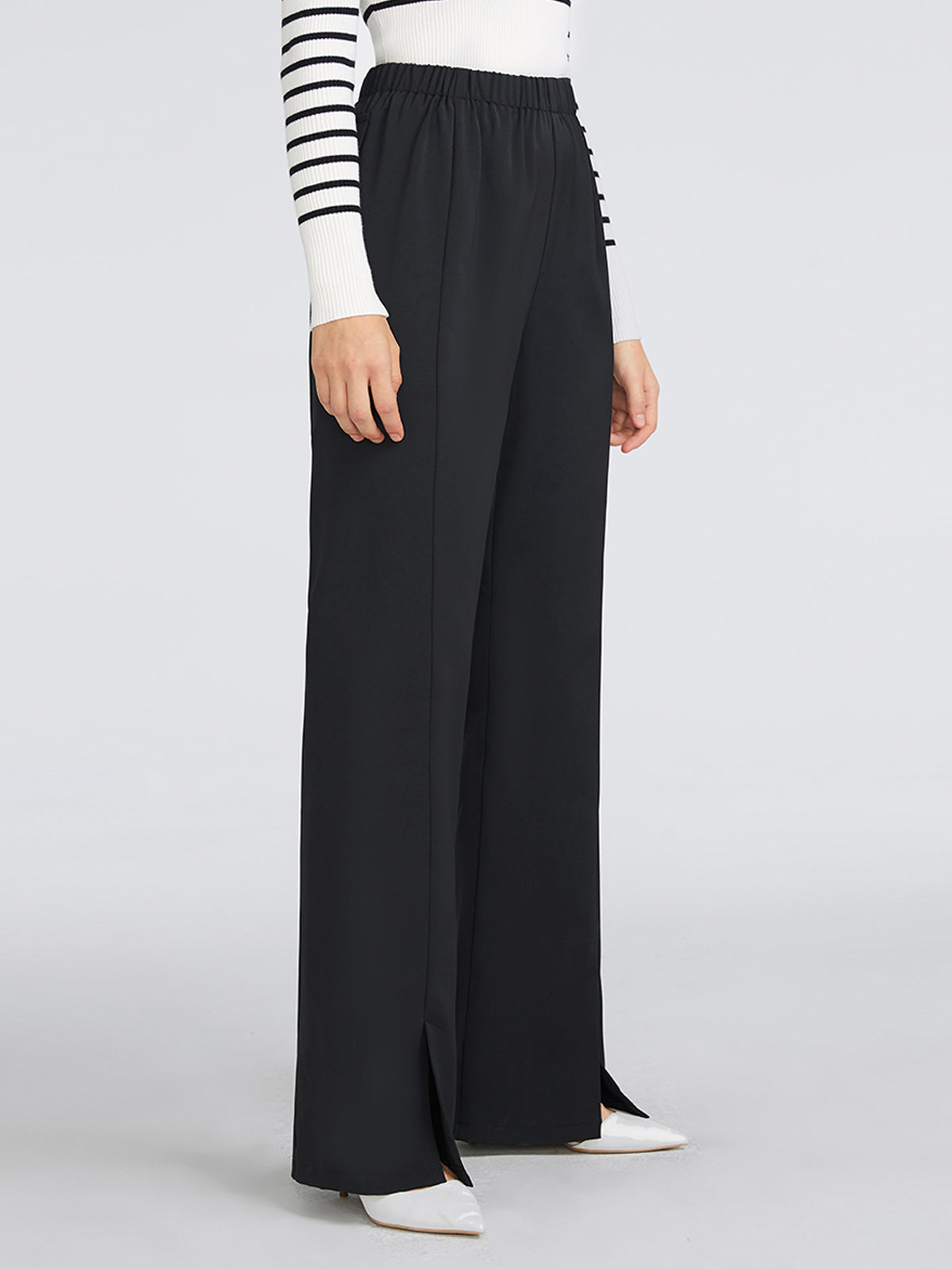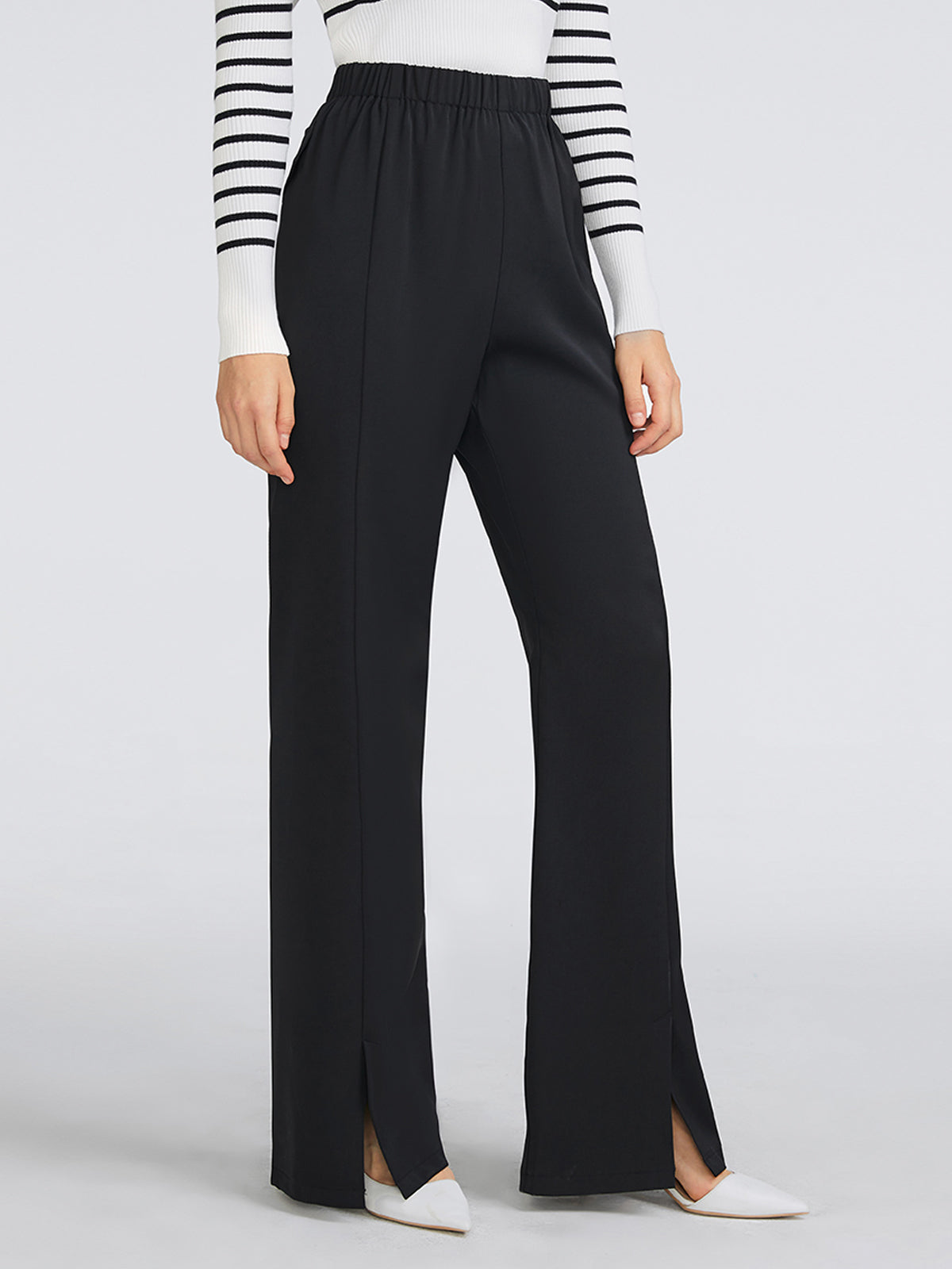 Pantalones negros con abertura y pierna ancha de cintura alta