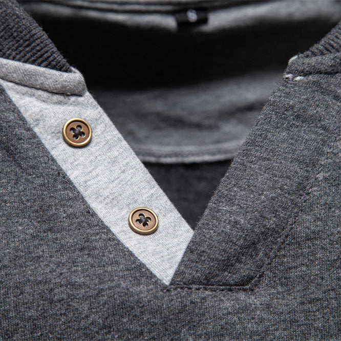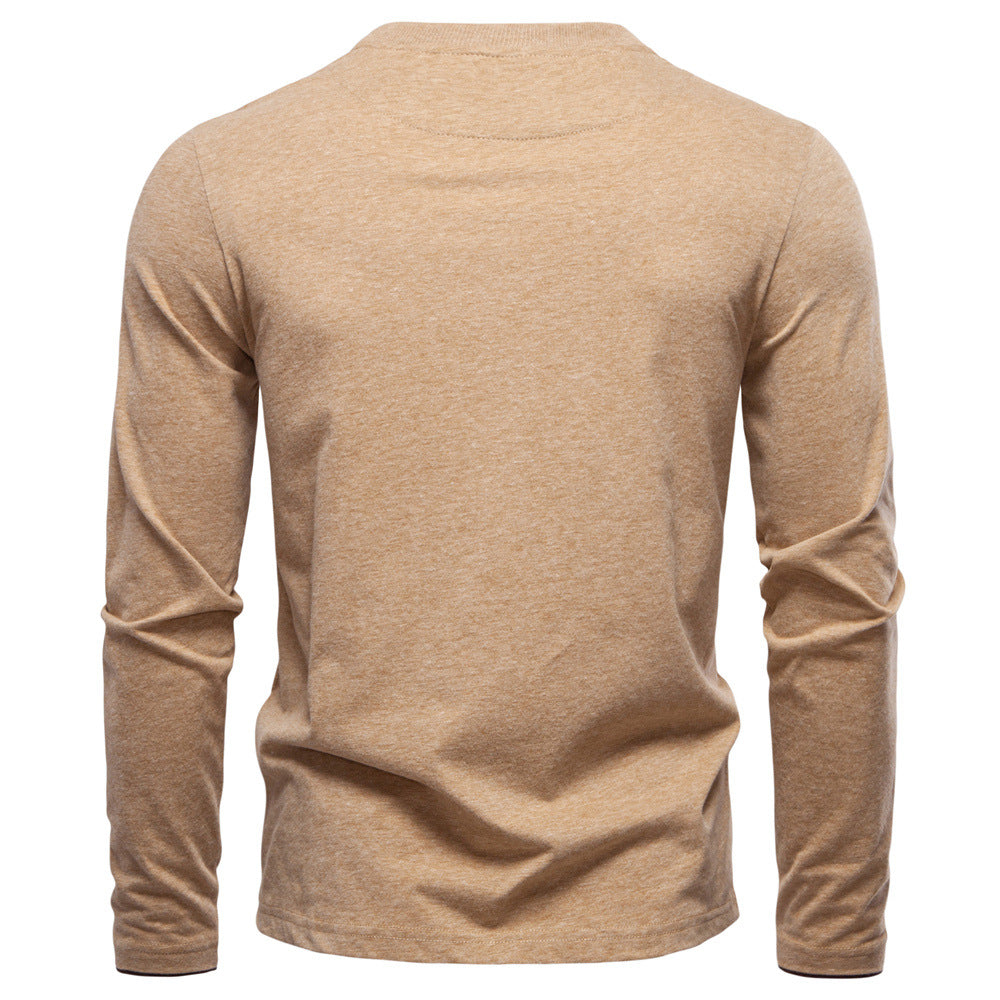 Camisa de algodón de manga larga con cuello en V estilo Henley para hombre
