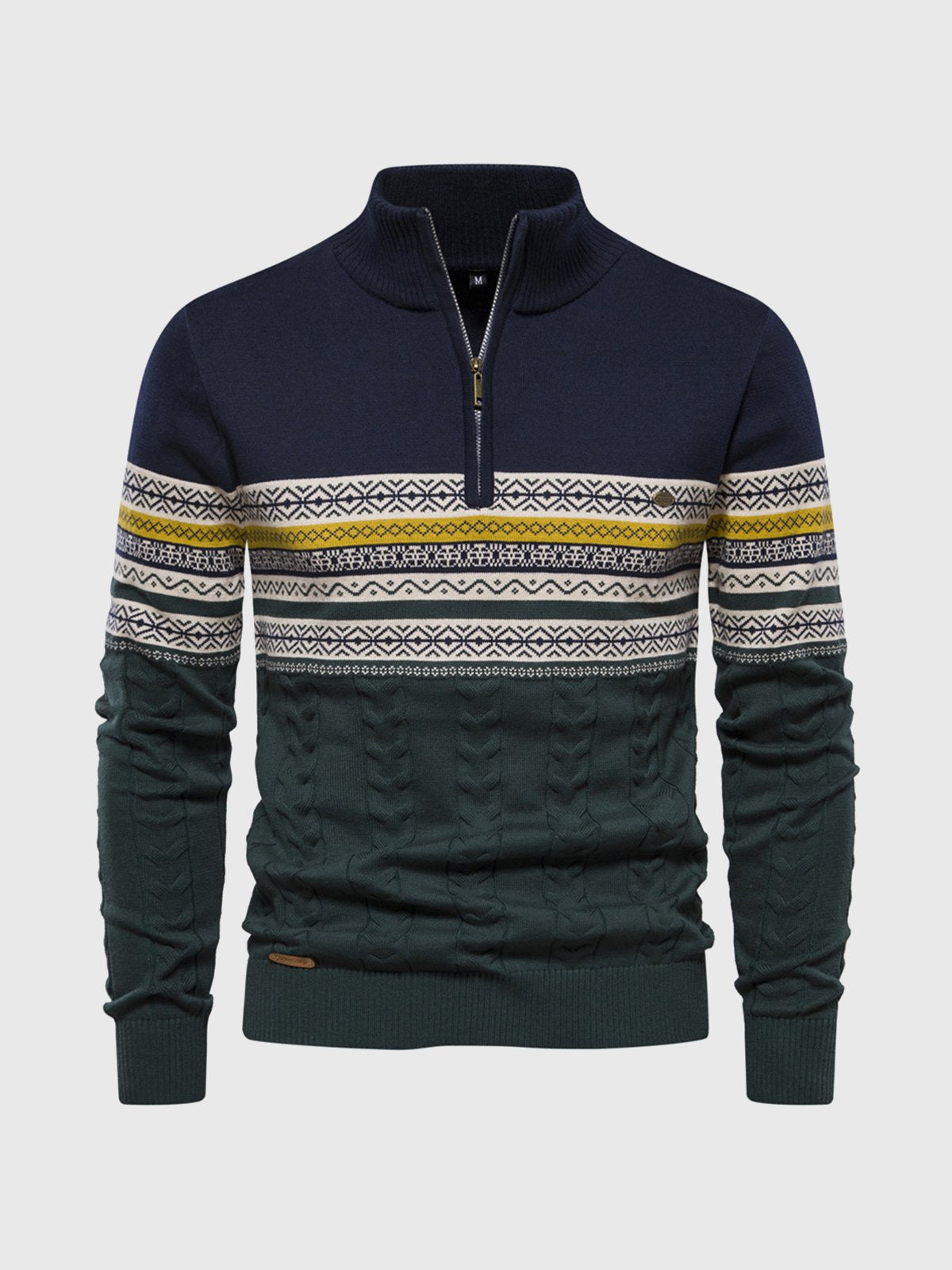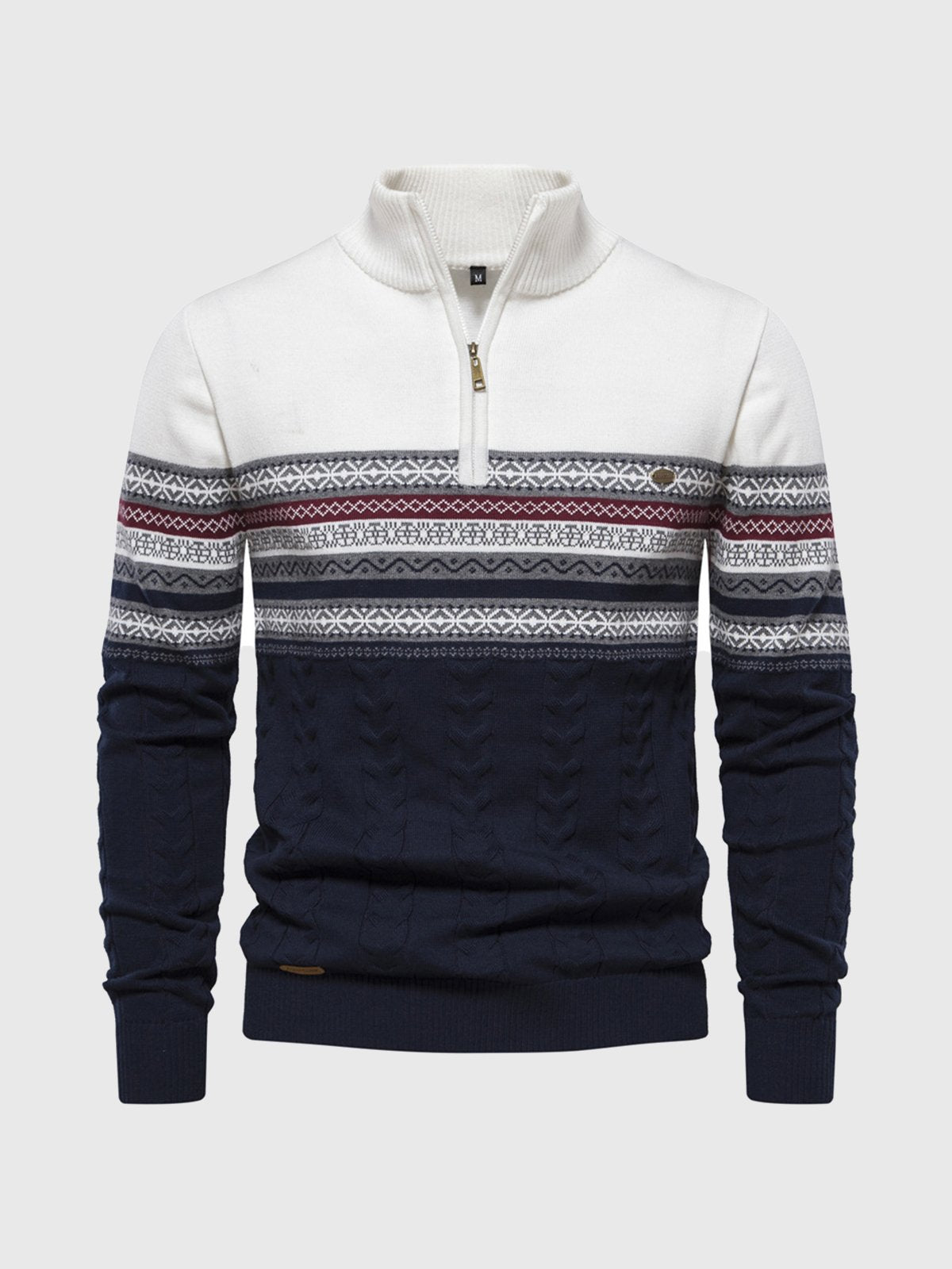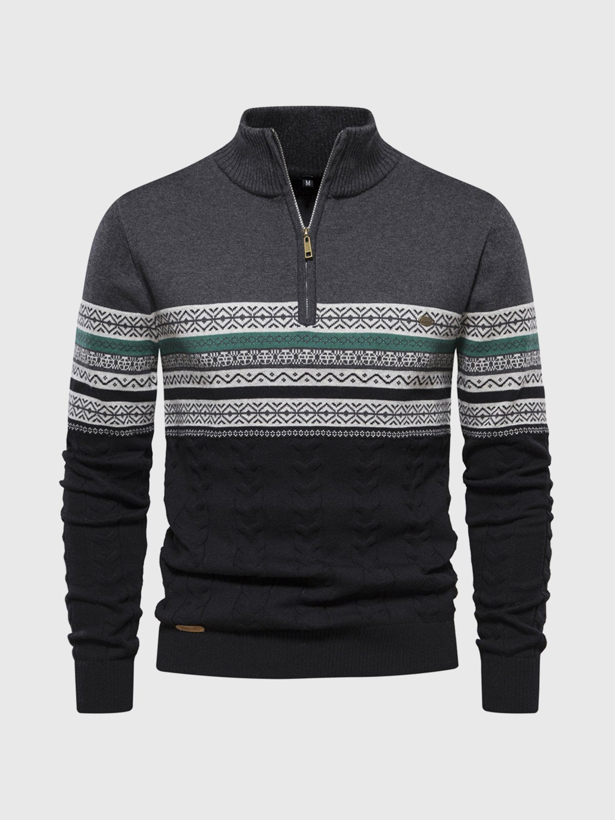 Este suave jersey para hombre con cremallera de un cuarto está confeccionado con un tejido de mezcla de algodón ultraelástico en negro, blanco, azul marino y gris, lo que garantiza una comodidad y durabilidad excepcionales. Los detalles estratégicos de punto acanalado brindan un ajuste acogedor y personalizado, mientras que la sencilla tapeta con cremallera de un cuarto permite un uso ajustable. Presenta un exquisito patrón de rayas con detalles de bloques de color para una versatilidad elegante. El objetivo era crear un jersey suave y elástico teniendo en cuenta tanto la comodidad como el estilo.