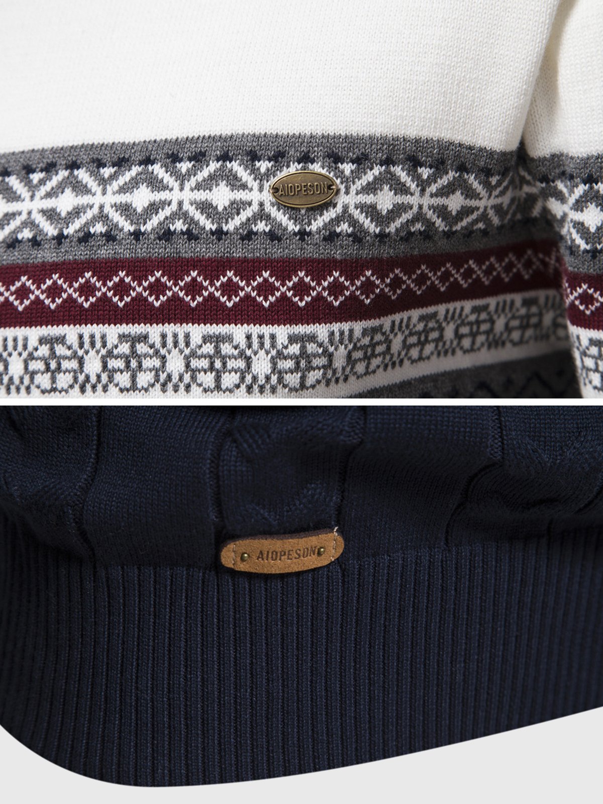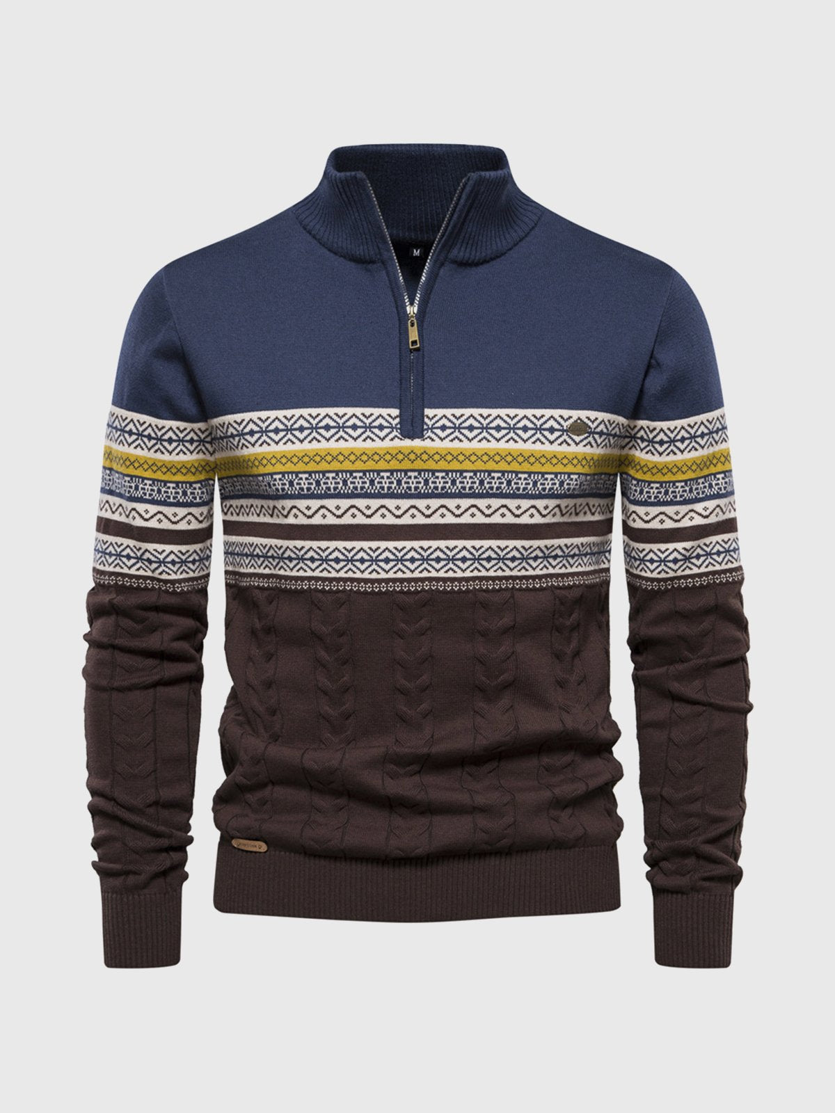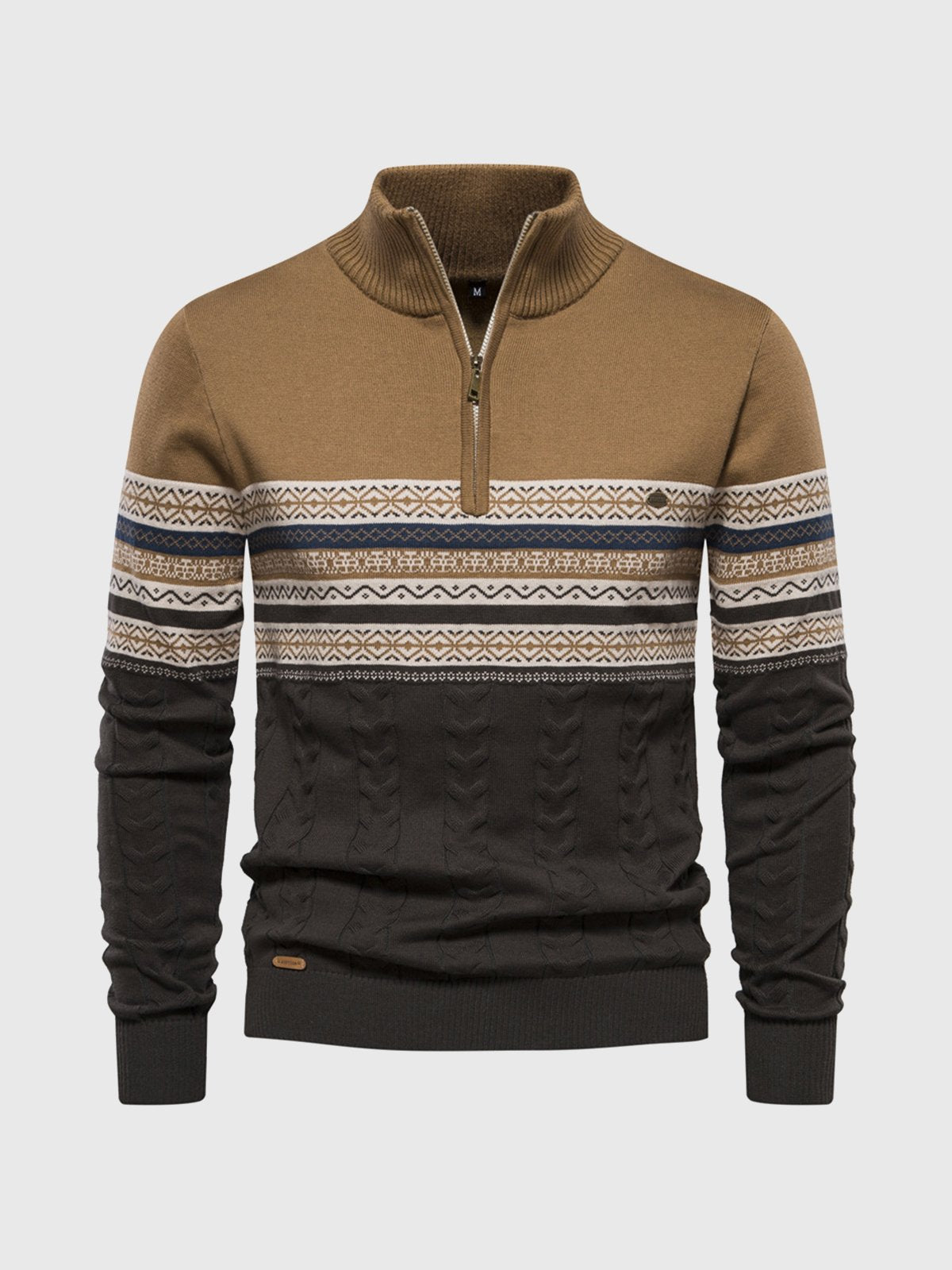 Este suave jersey para hombre con cremallera de un cuarto está confeccionado con un tejido de mezcla de algodón ultraelástico en negro, blanco, azul marino y gris, lo que garantiza una comodidad y durabilidad excepcionales. Los detalles estratégicos de punto acanalado brindan un ajuste acogedor y personalizado, mientras que la sencilla tapeta con cremallera de un cuarto permite un uso ajustable. Presenta un exquisito patrón de rayas con detalles de bloques de color para una versatilidad elegante. El objetivo era crear un jersey suave y elástico teniendo en cuenta tanto la comodidad como el estilo.