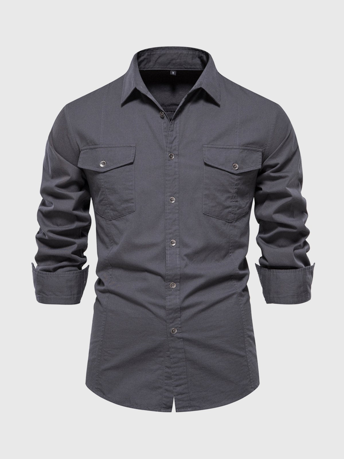 Cargo Long Sleeve Cotton Shirt - Ahaselected