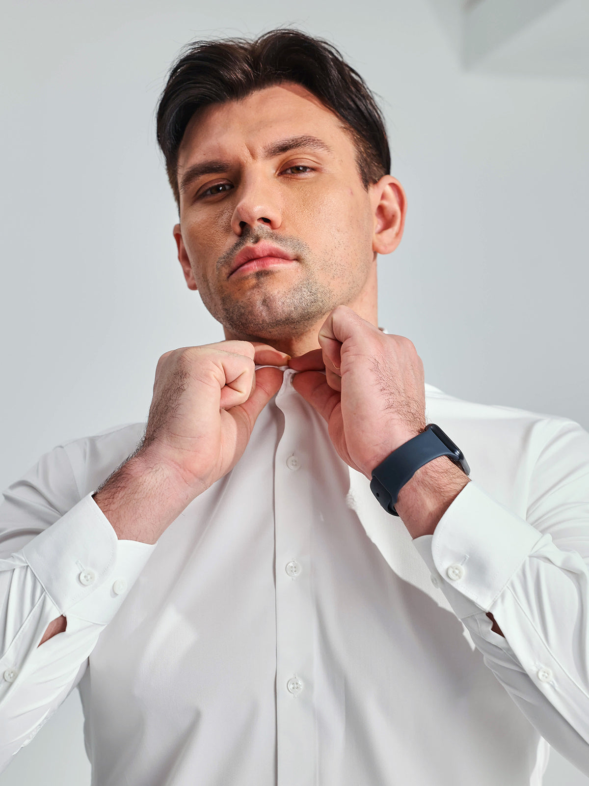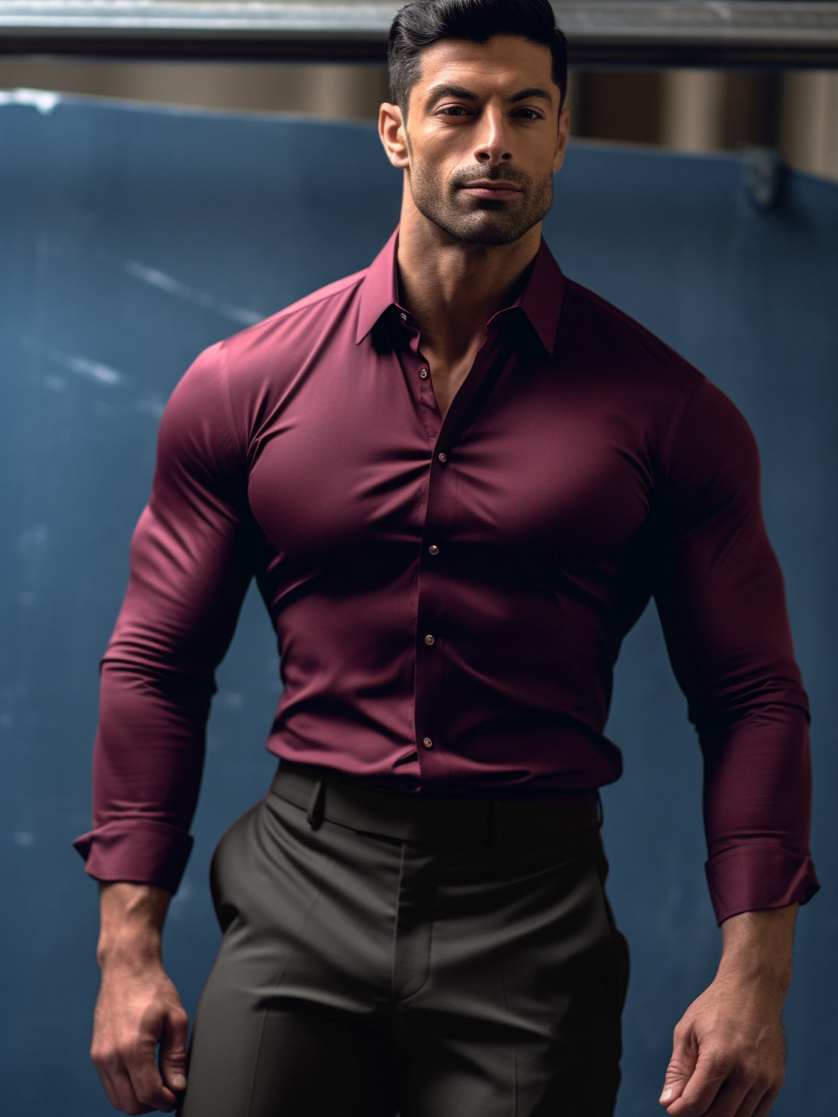 Camisa de botones de bambú elástica antiolor